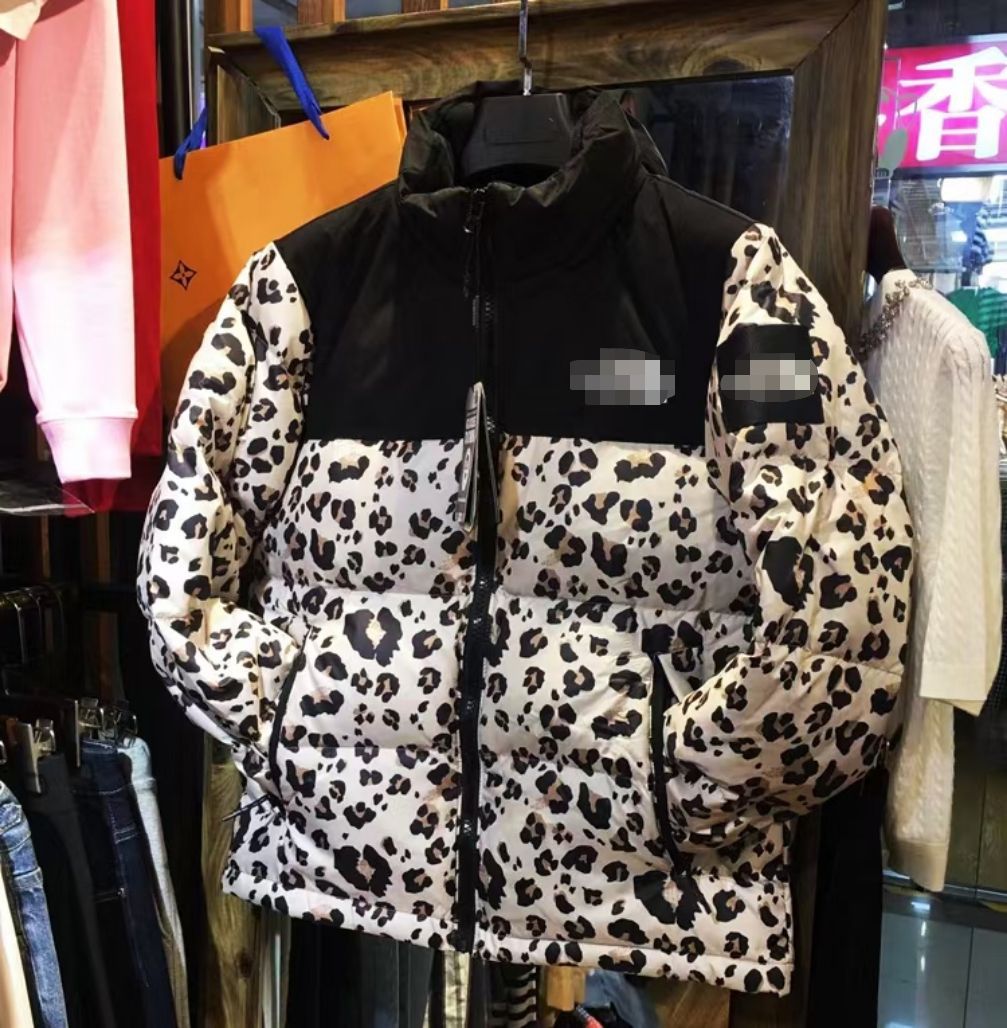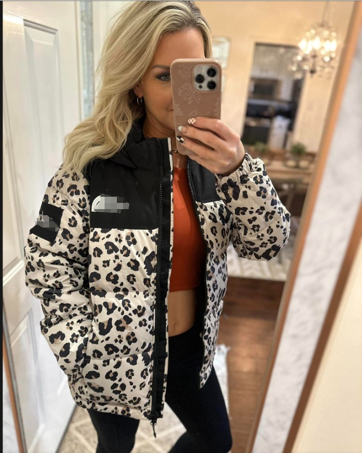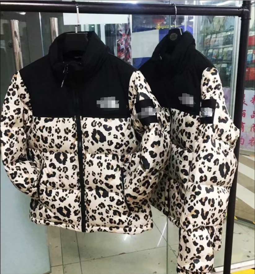 Chaqueta de plumón con estampado de leopardo para comercio exterior europeo y americano, abrigo grueso hecho a medida para parejas, chaqueta corta de estilo coreano con plumón de pato blanco.