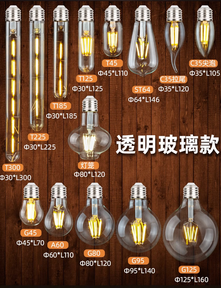 Edison bombilla led lámpara de filamento lámpara de tungsteno de la vendimia E27 bombilla de tornillo grande Lámpara decorativa Americana iluminación de ahorro de energía