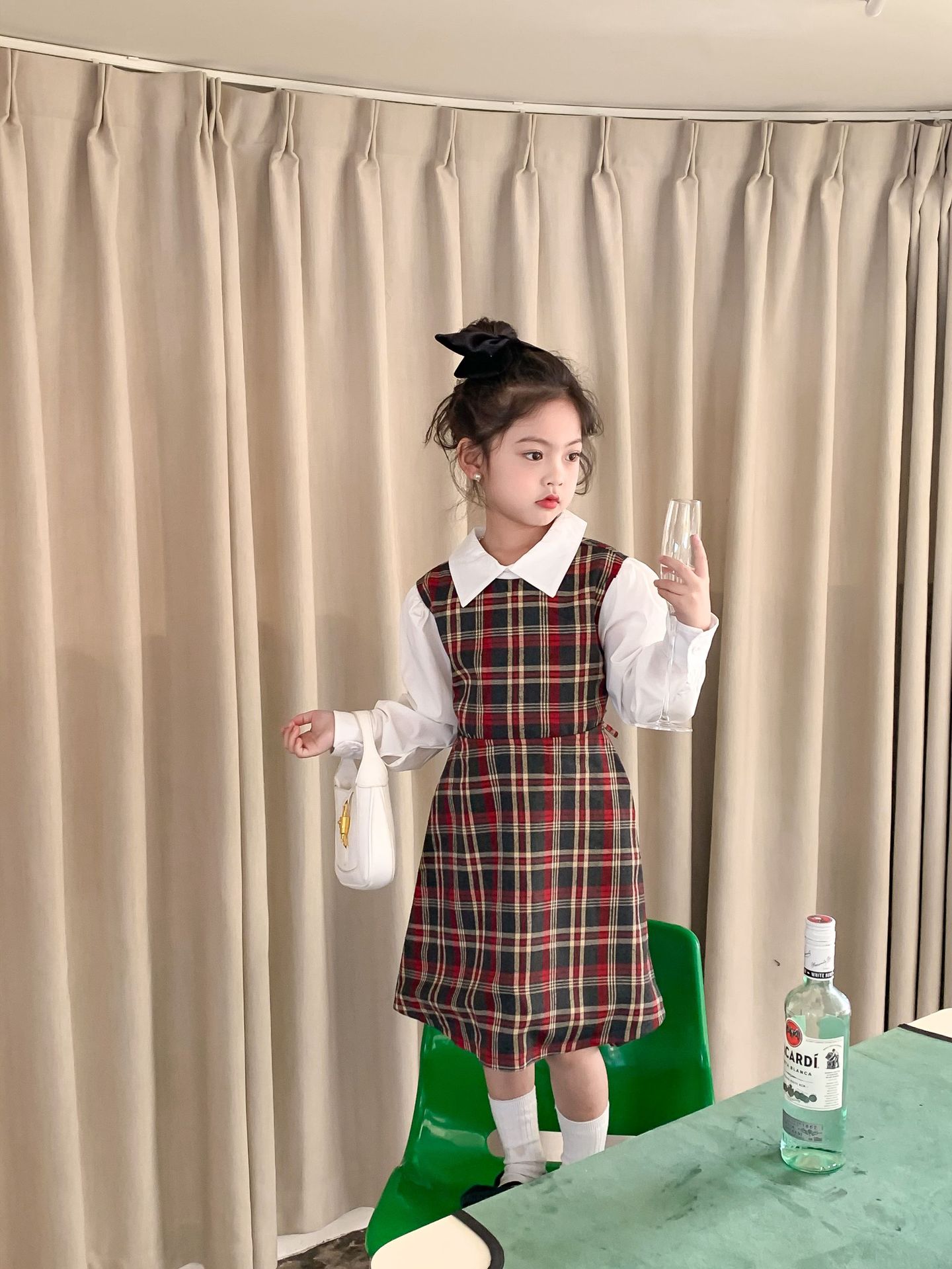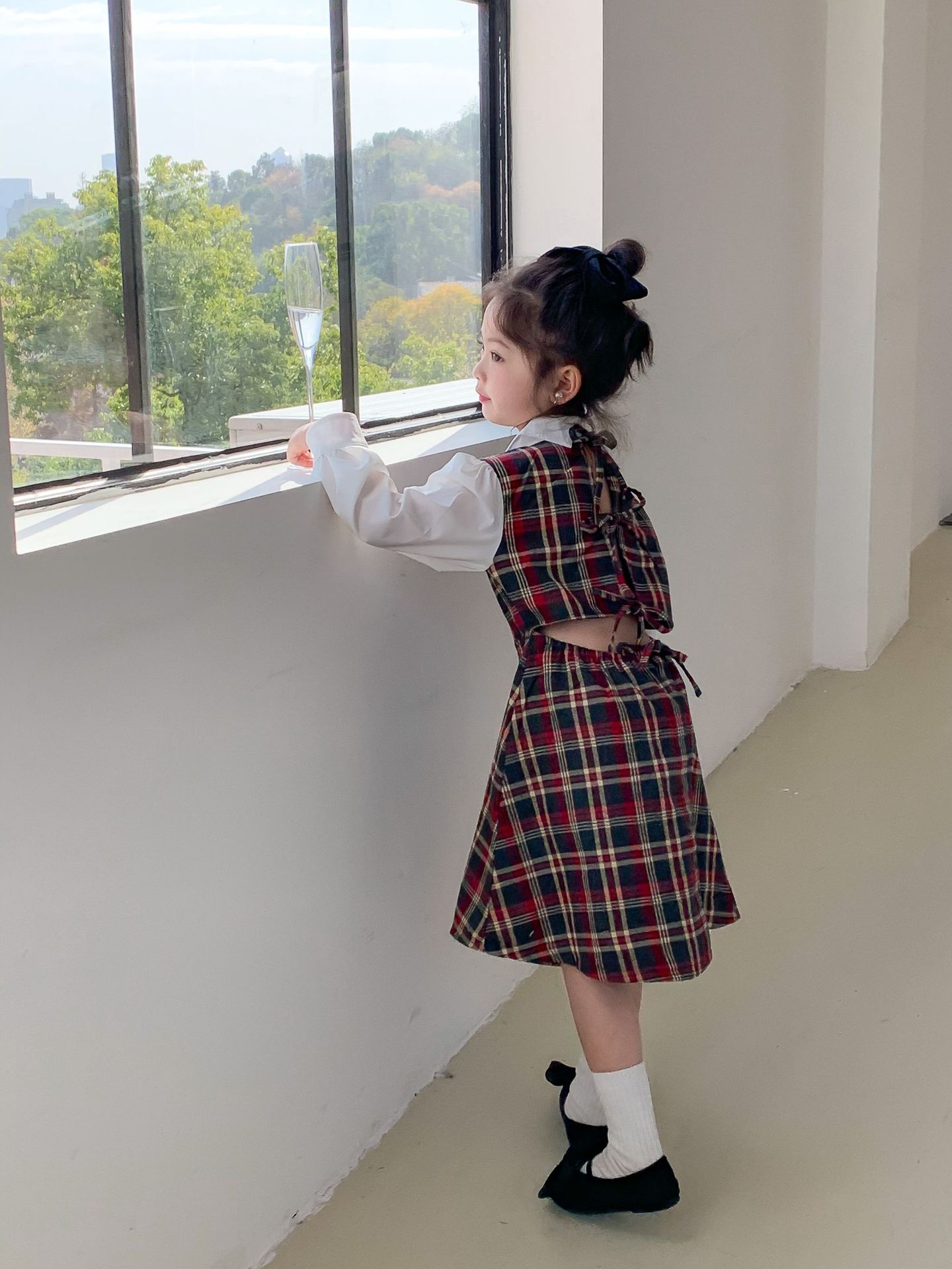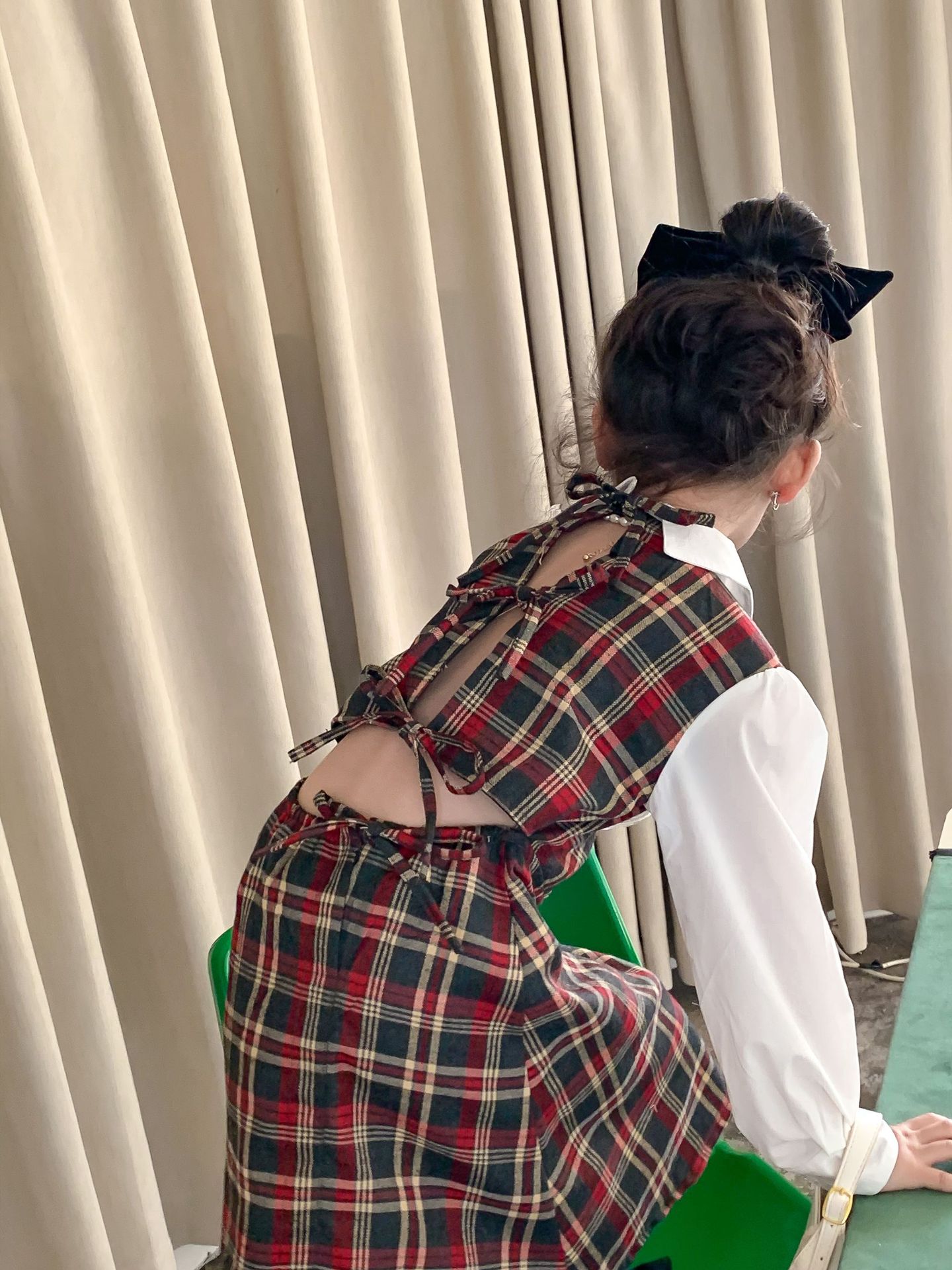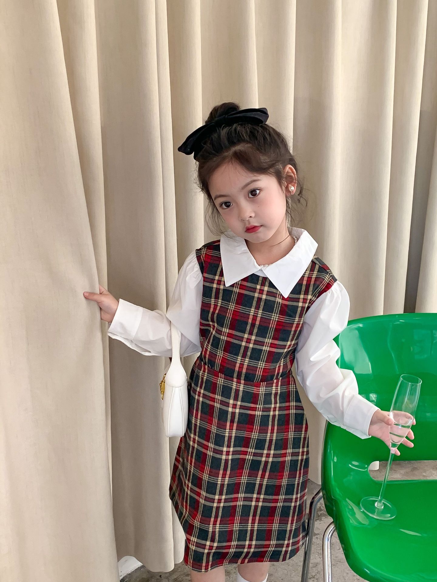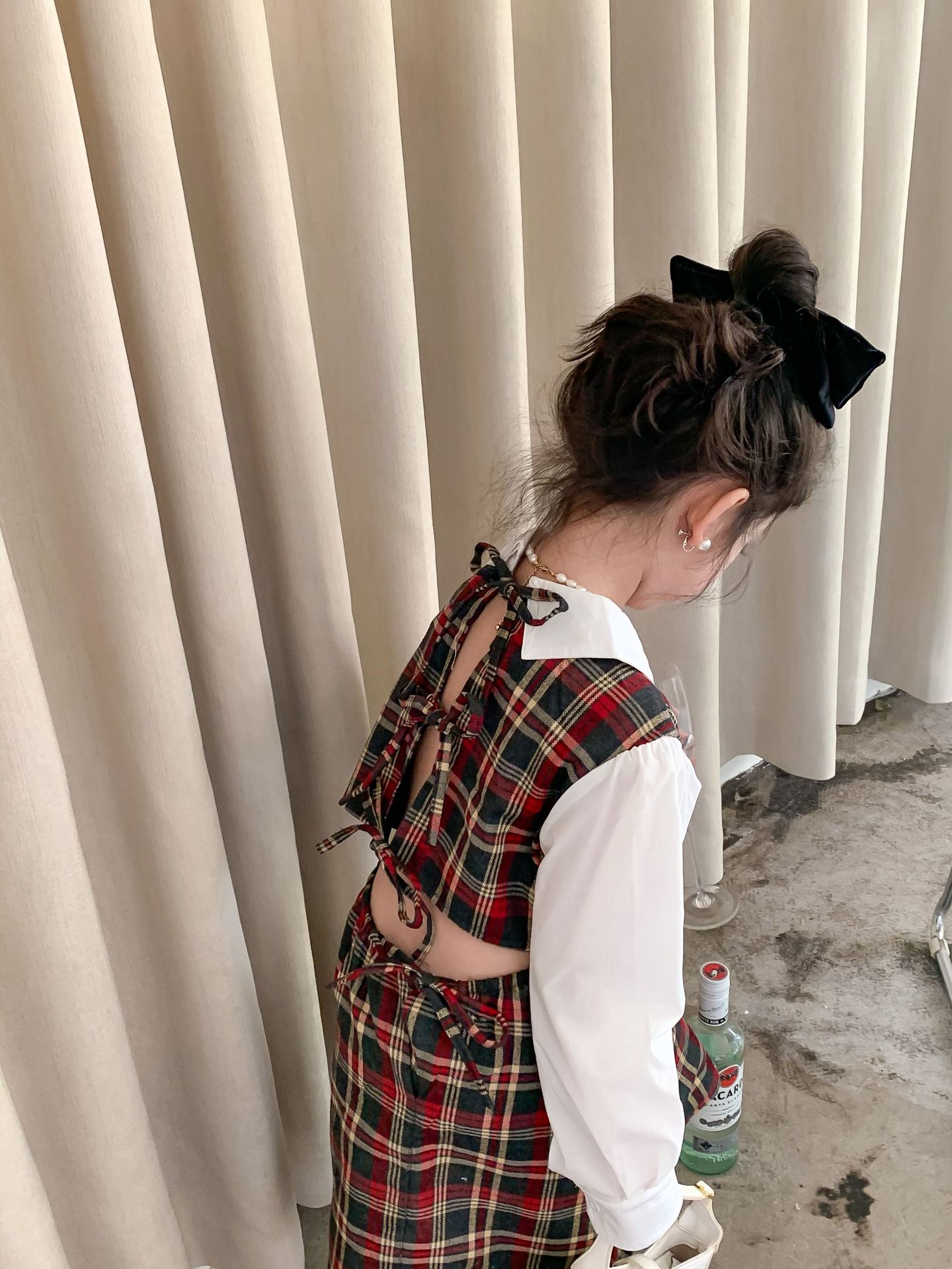 Vestido DE LOS NIÑOS 2024 primavera nuevas niñas vestido de camisa a cuadros sin espalda Medio y grandes niños niñas estilo universitario vestido falda