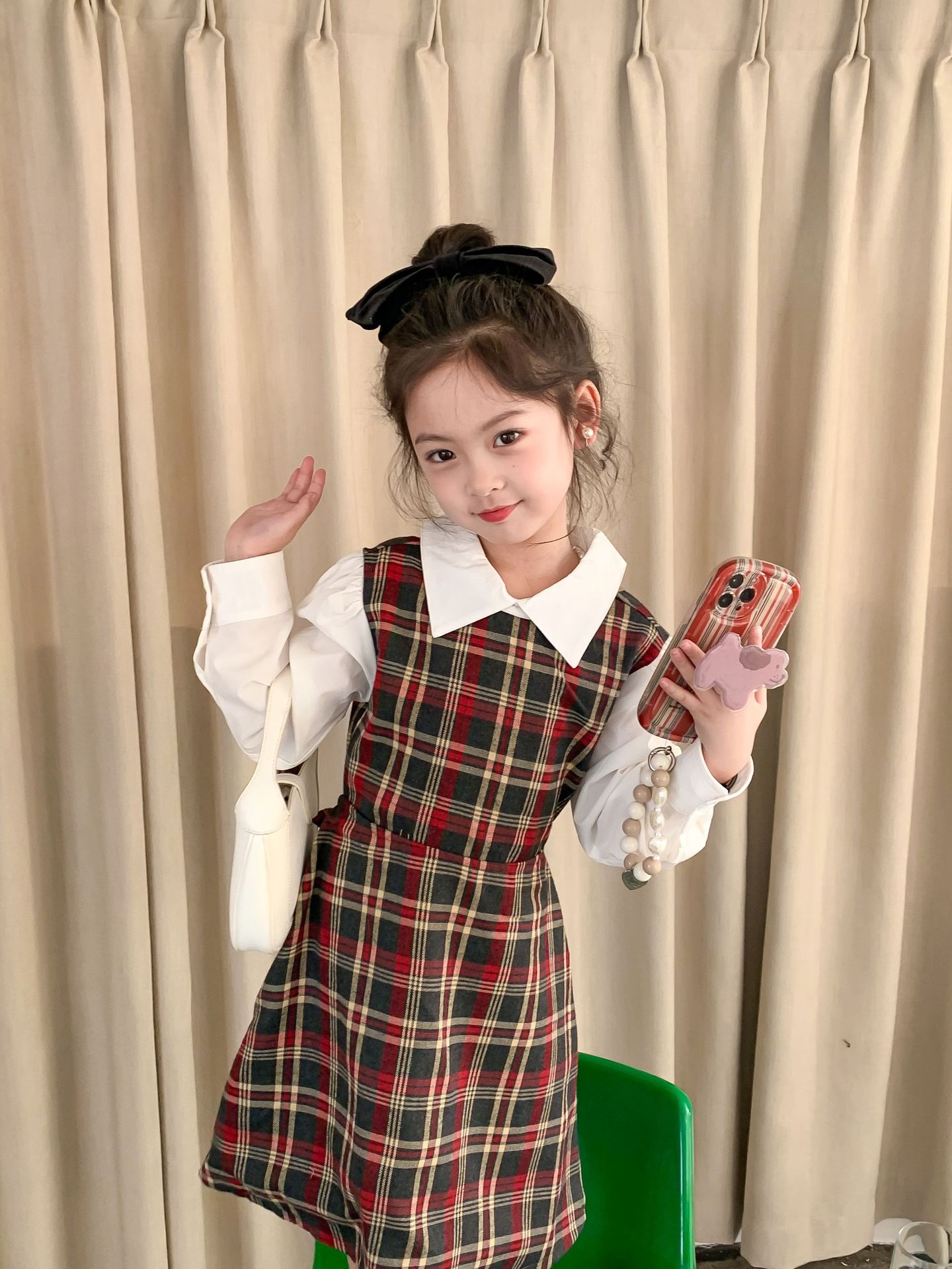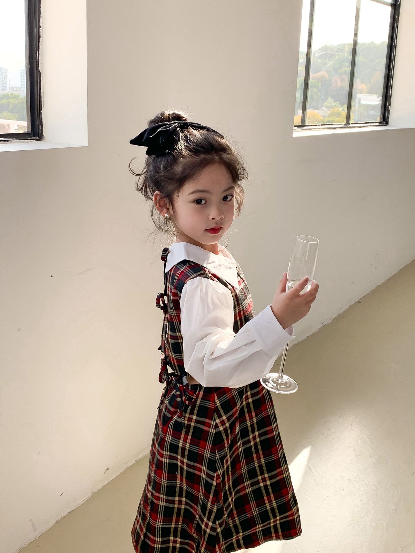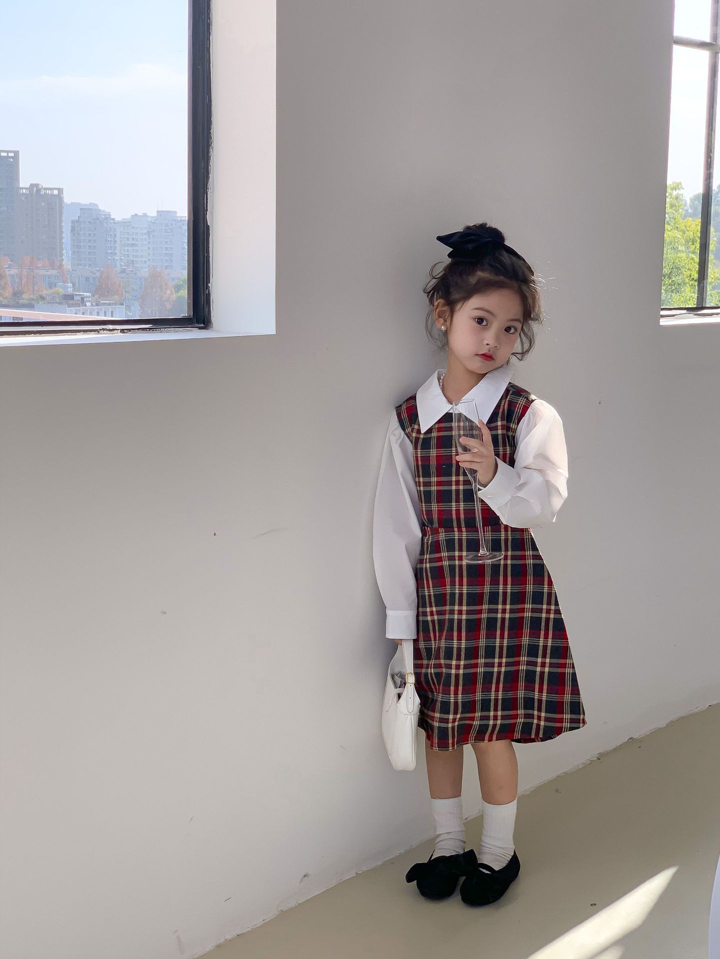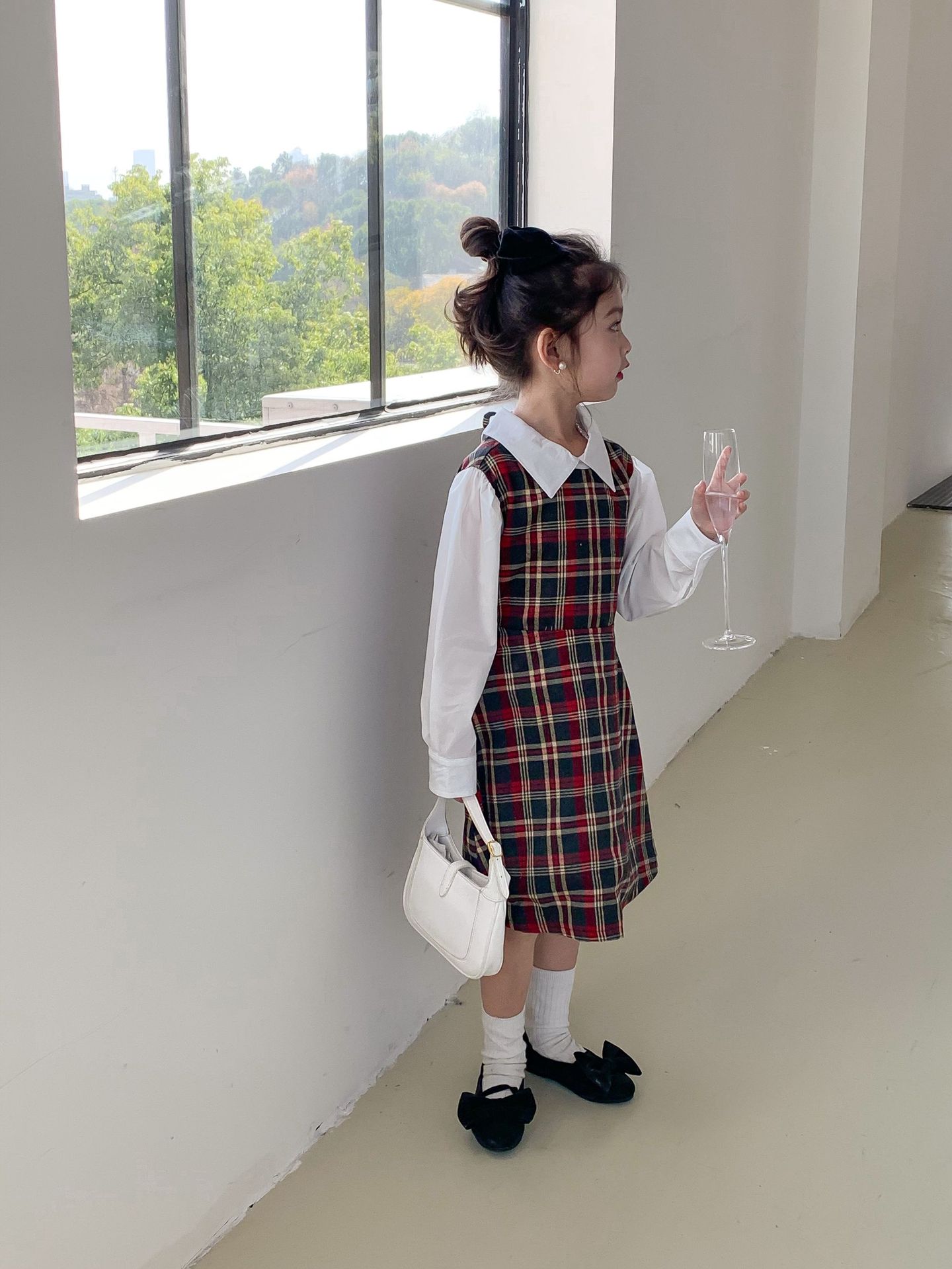 Vestido DE LOS NIÑOS 2024 primavera nuevas niñas vestido de camisa a cuadros sin espalda Medio y grandes niños niñas estilo universitario vestido falda