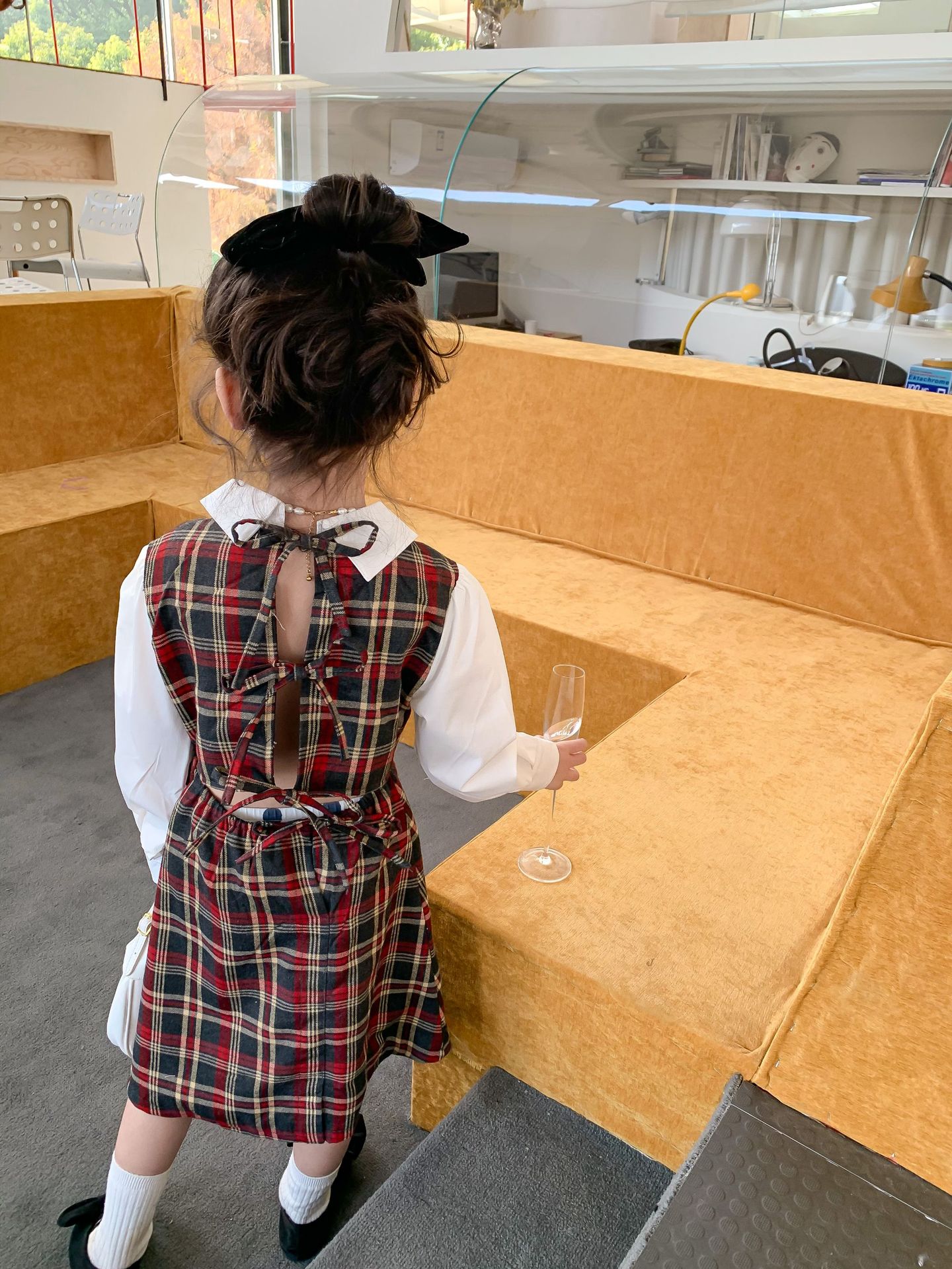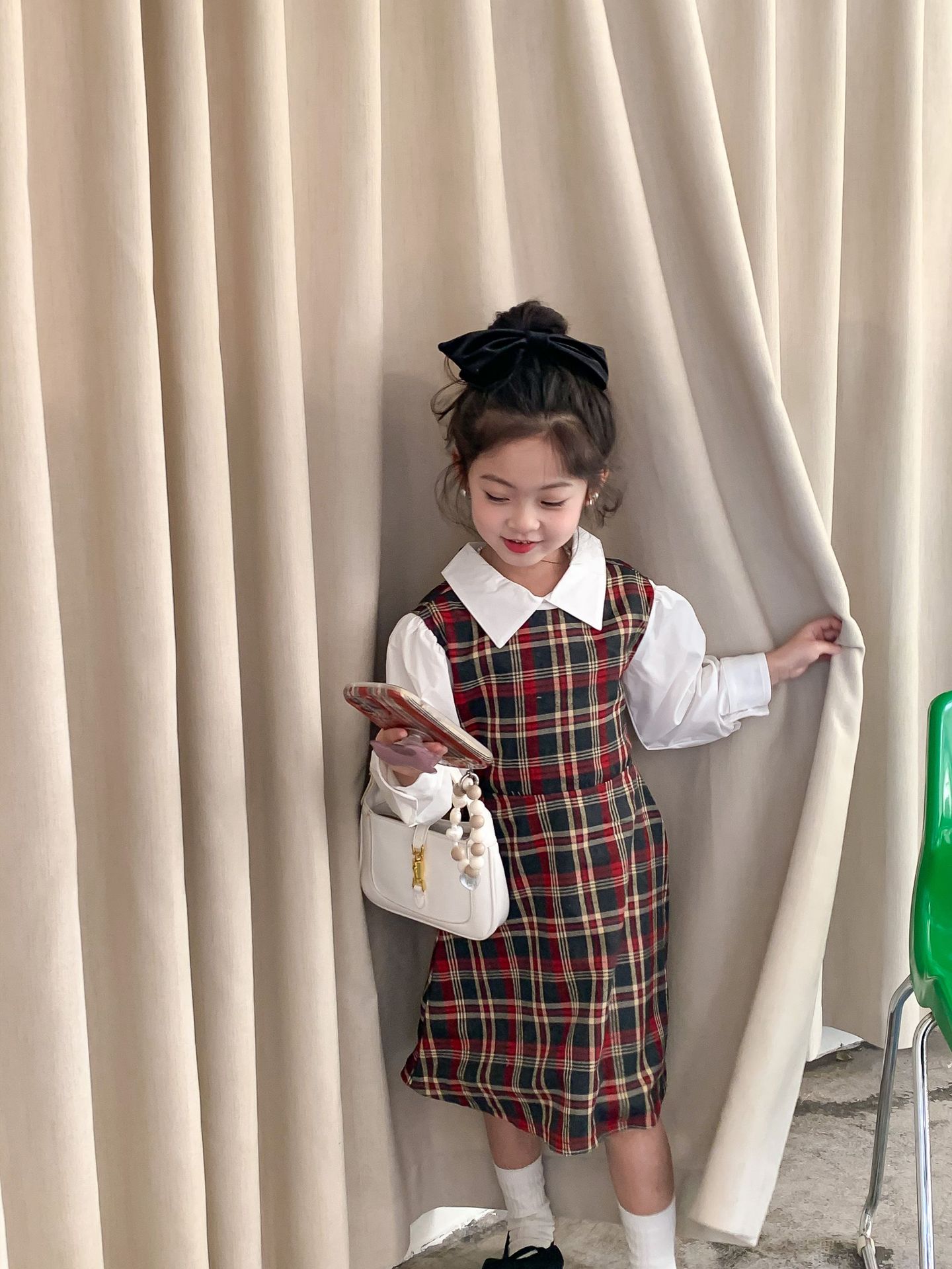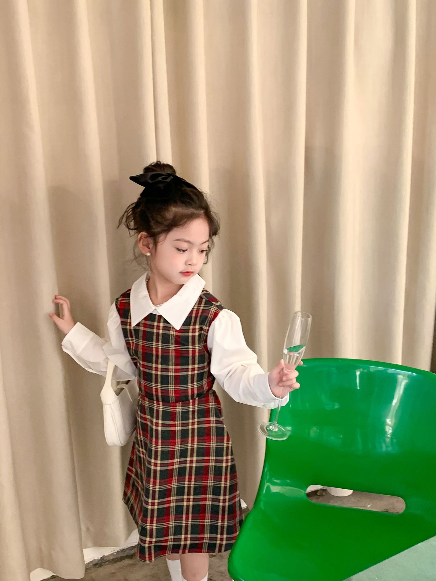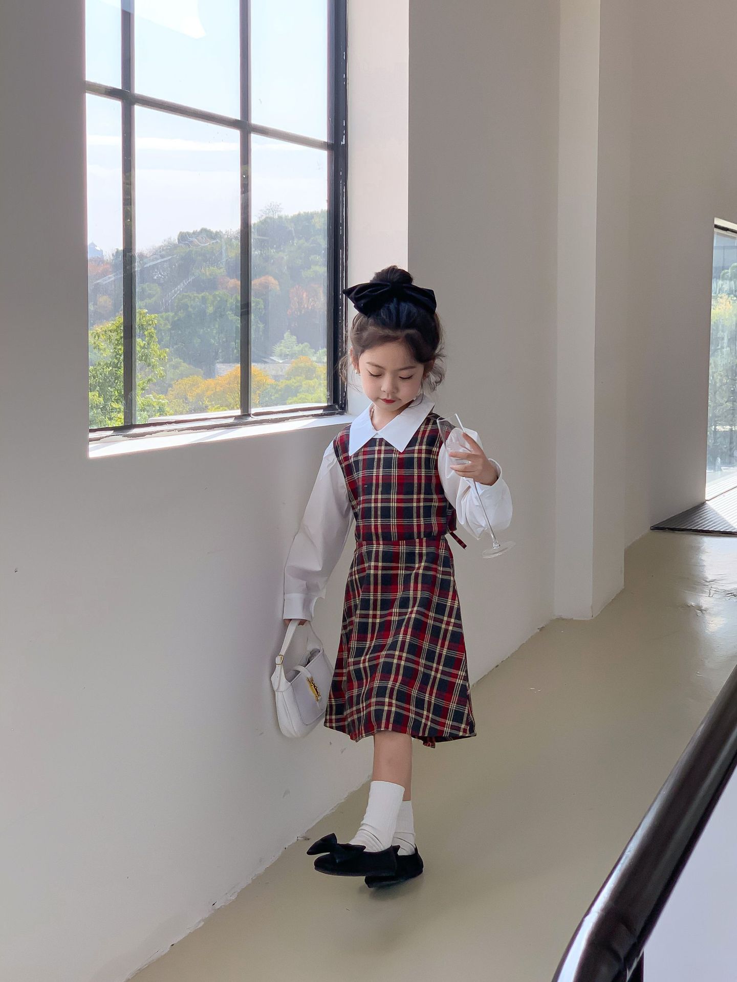 Vestido DE LOS NIÑOS 2024 primavera nuevas niñas vestido de camisa a cuadros sin espalda Medio y grandes niños niñas estilo universitario vestido falda