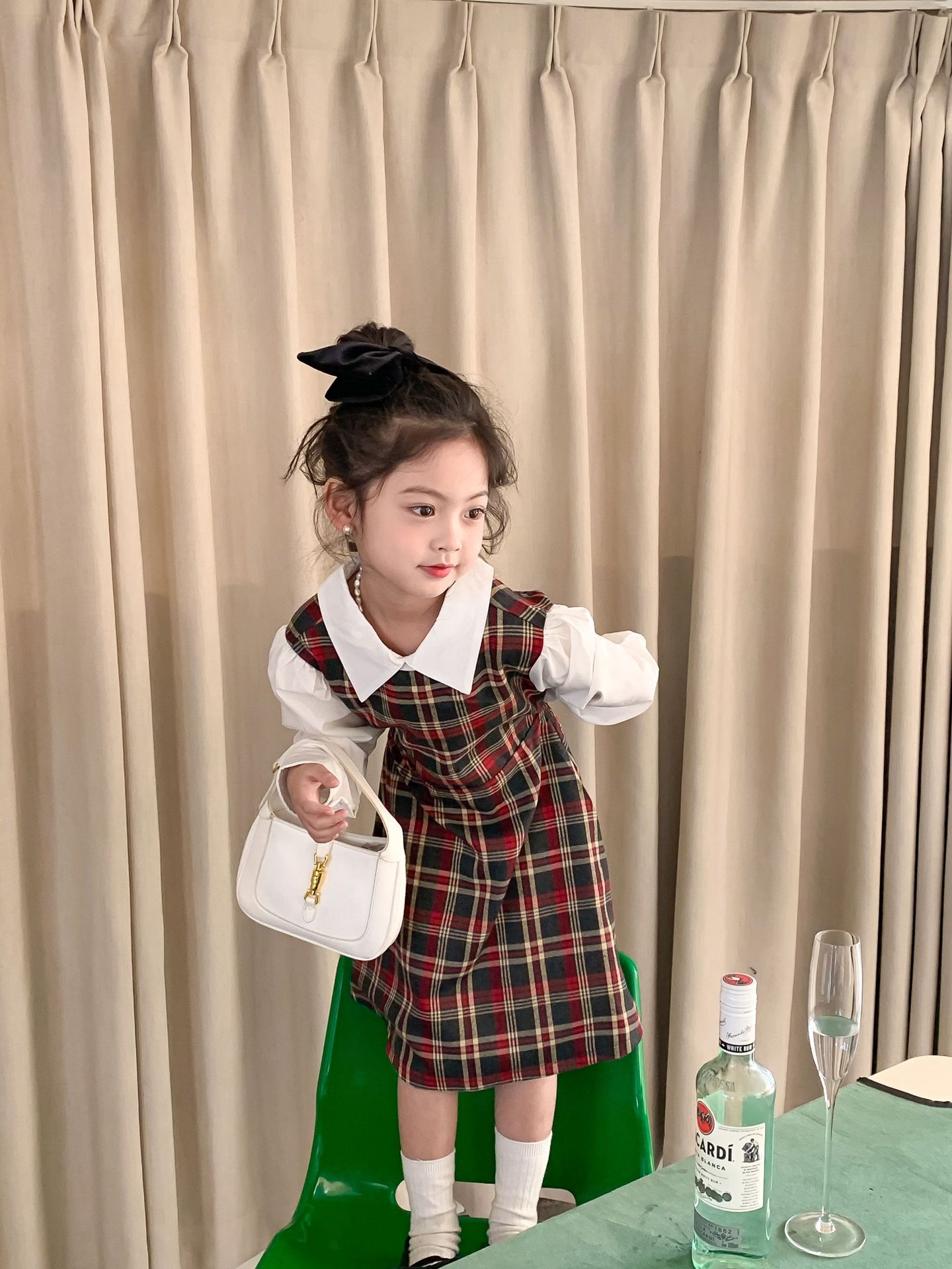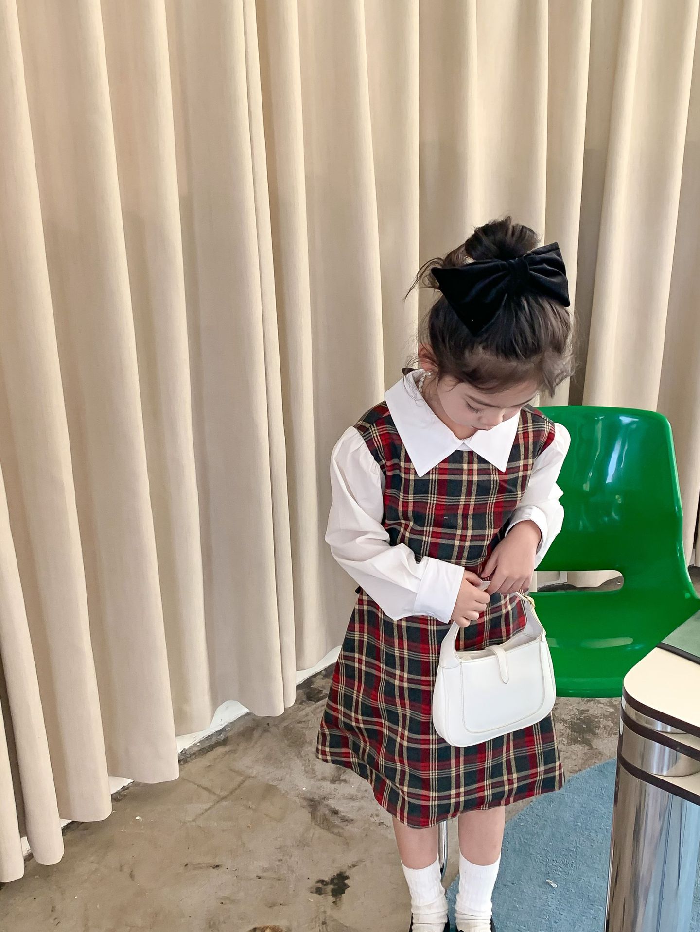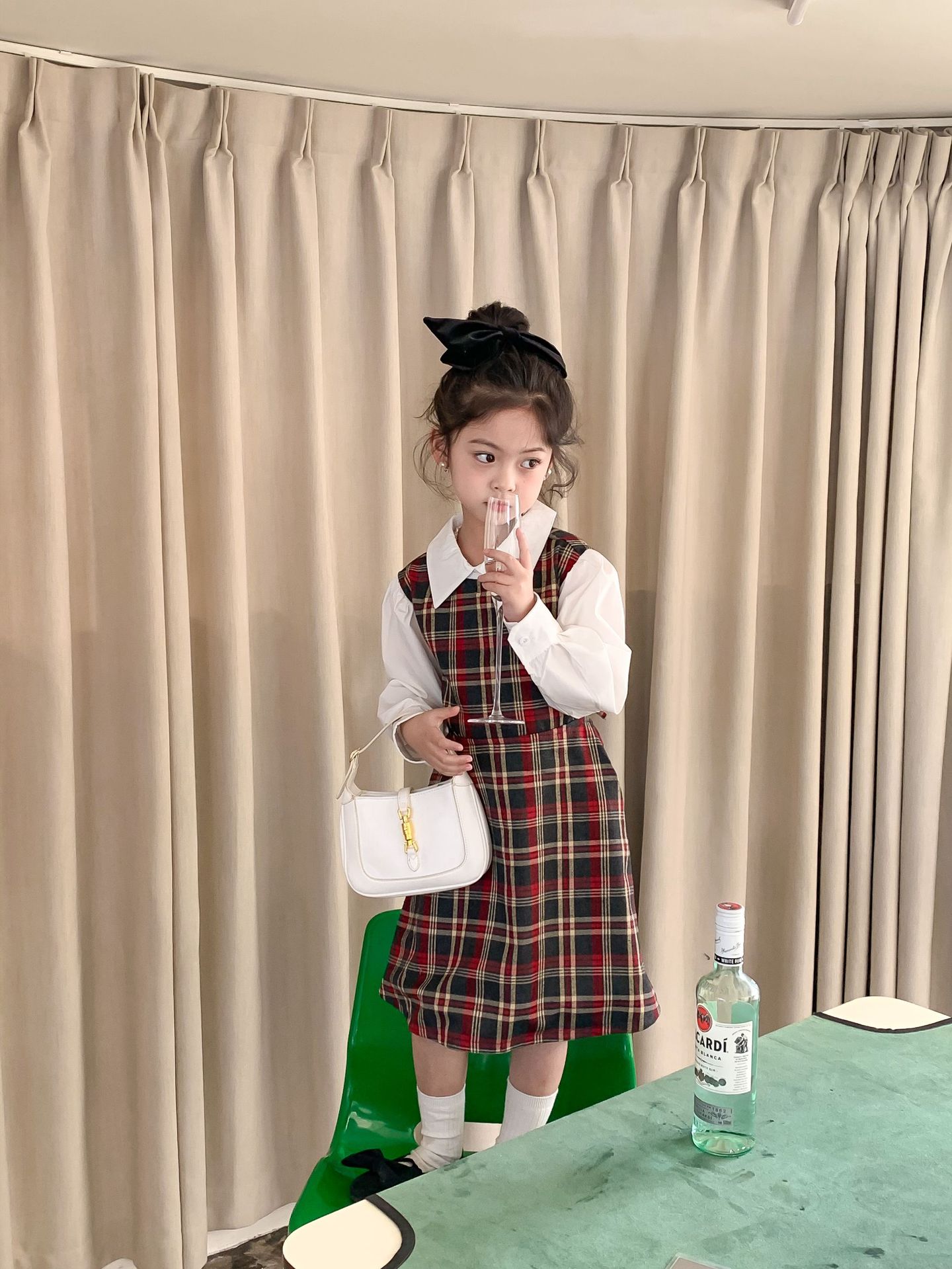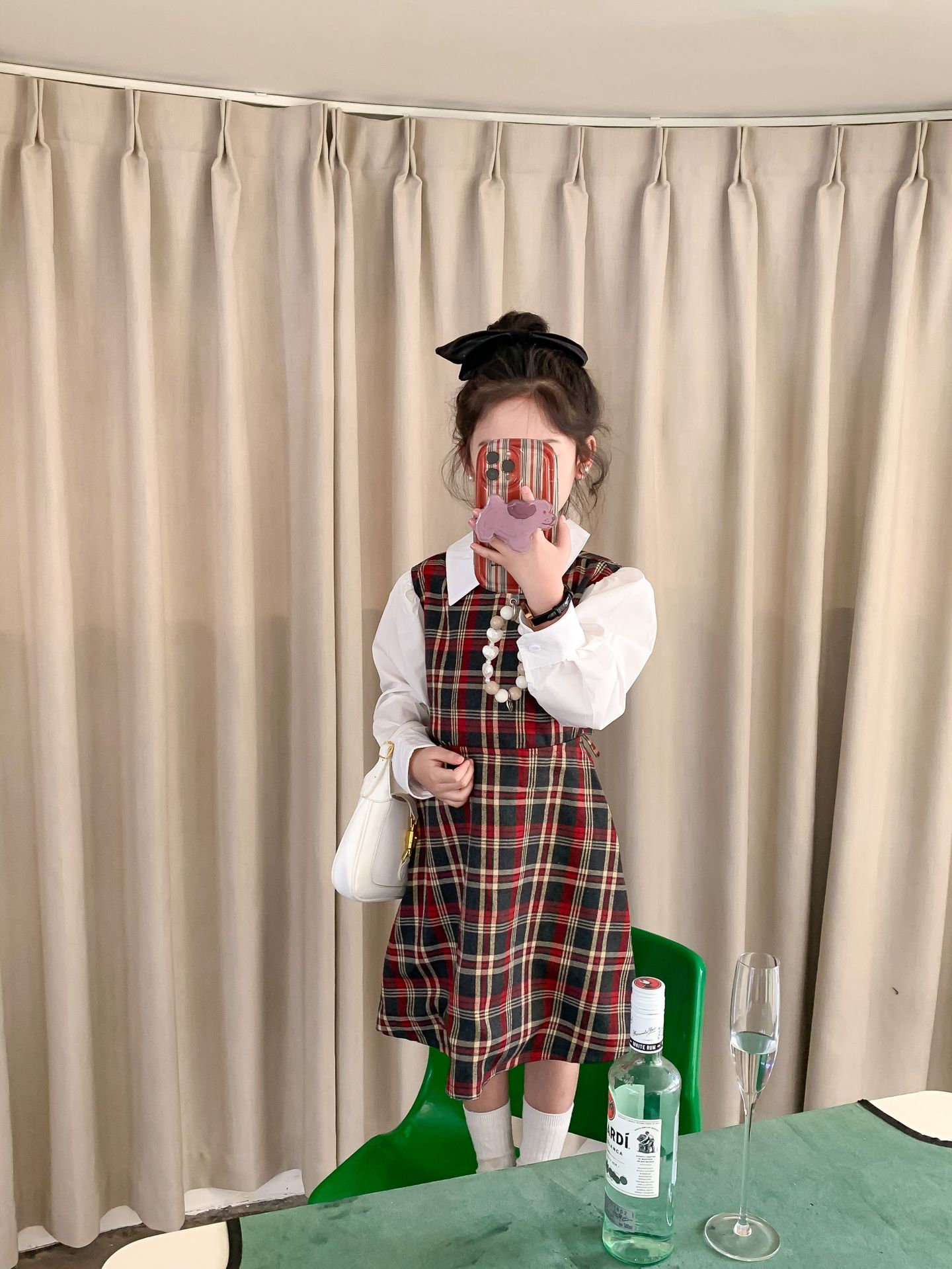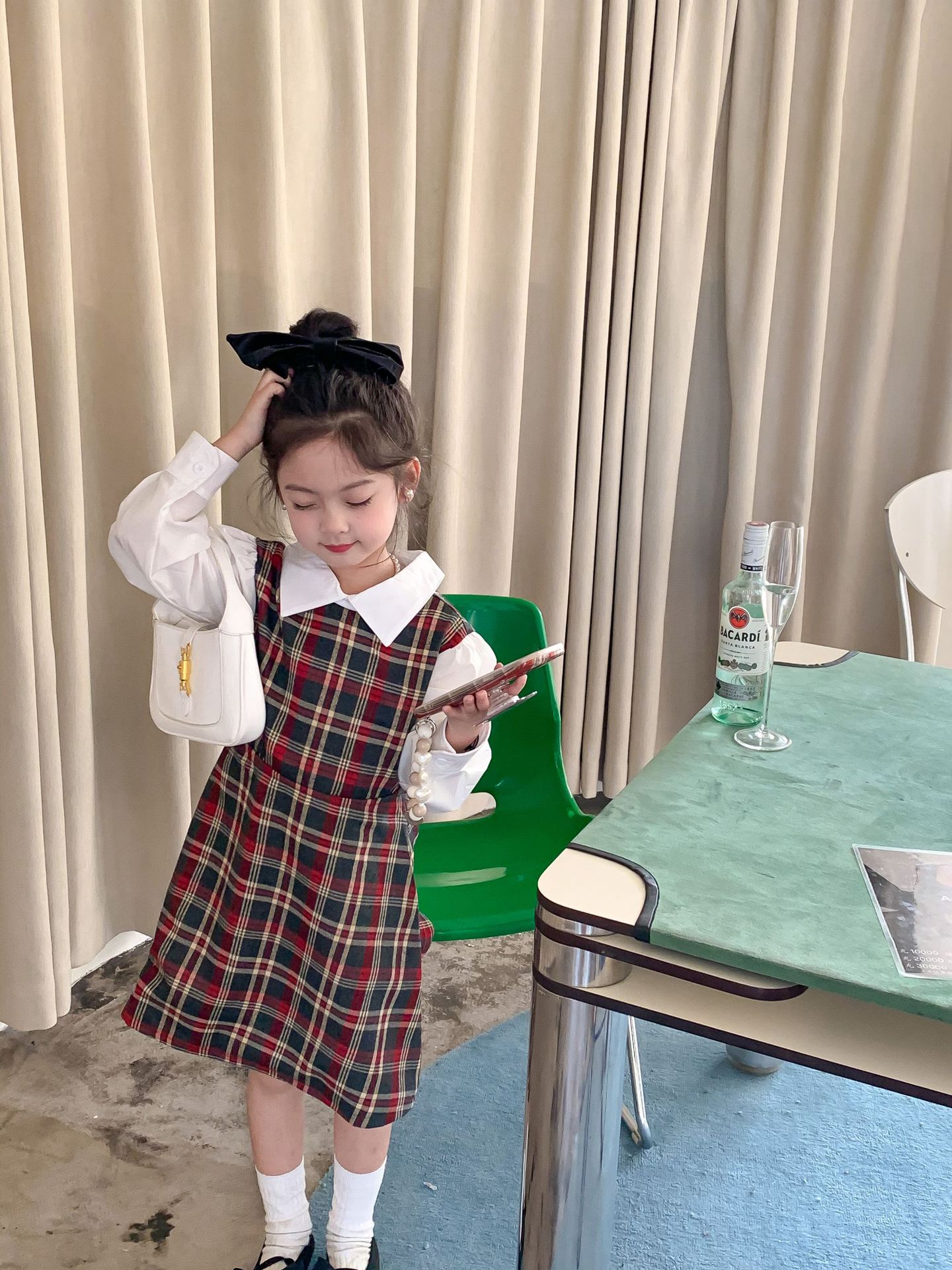Vestido DE LOS NIÑOS 2024 primavera nuevas niñas vestido de camisa a cuadros sin espalda Medio y grandes niños niñas estilo universitario vestido falda