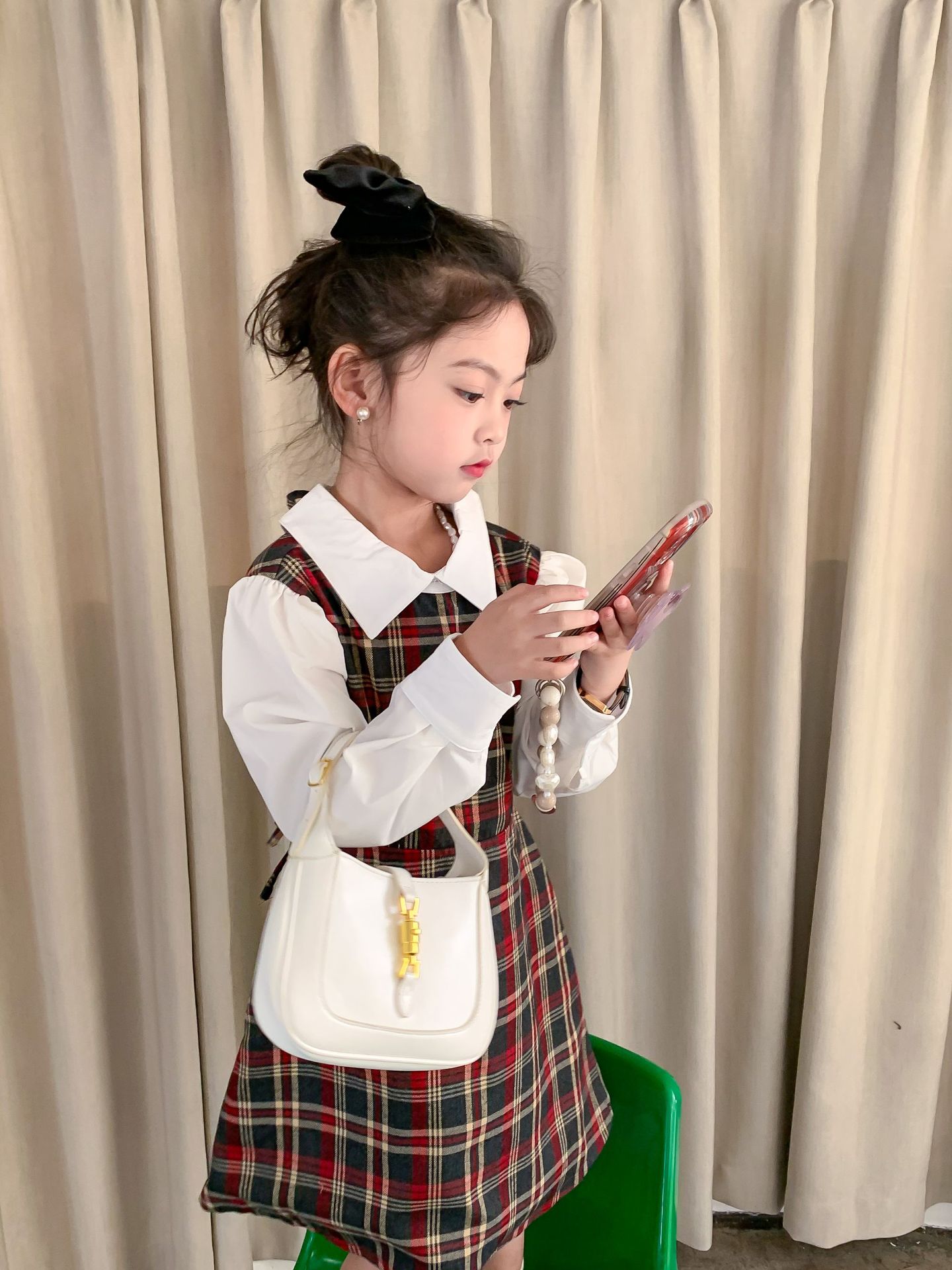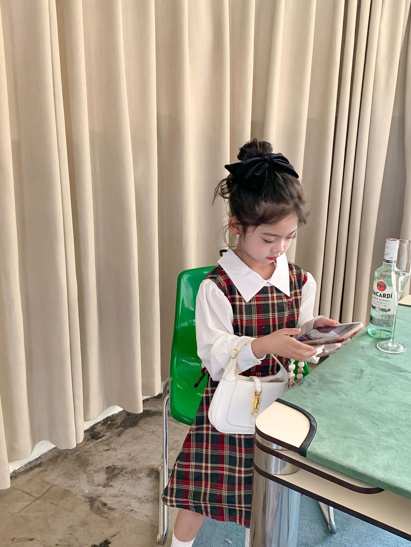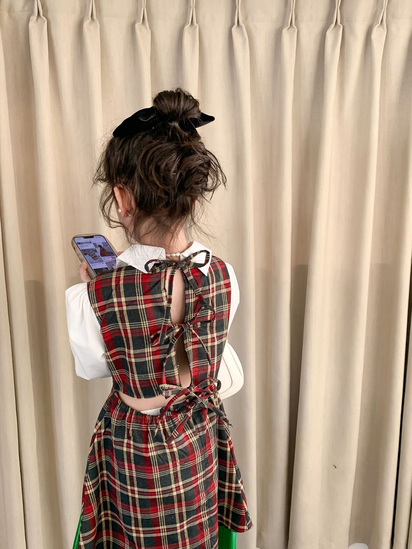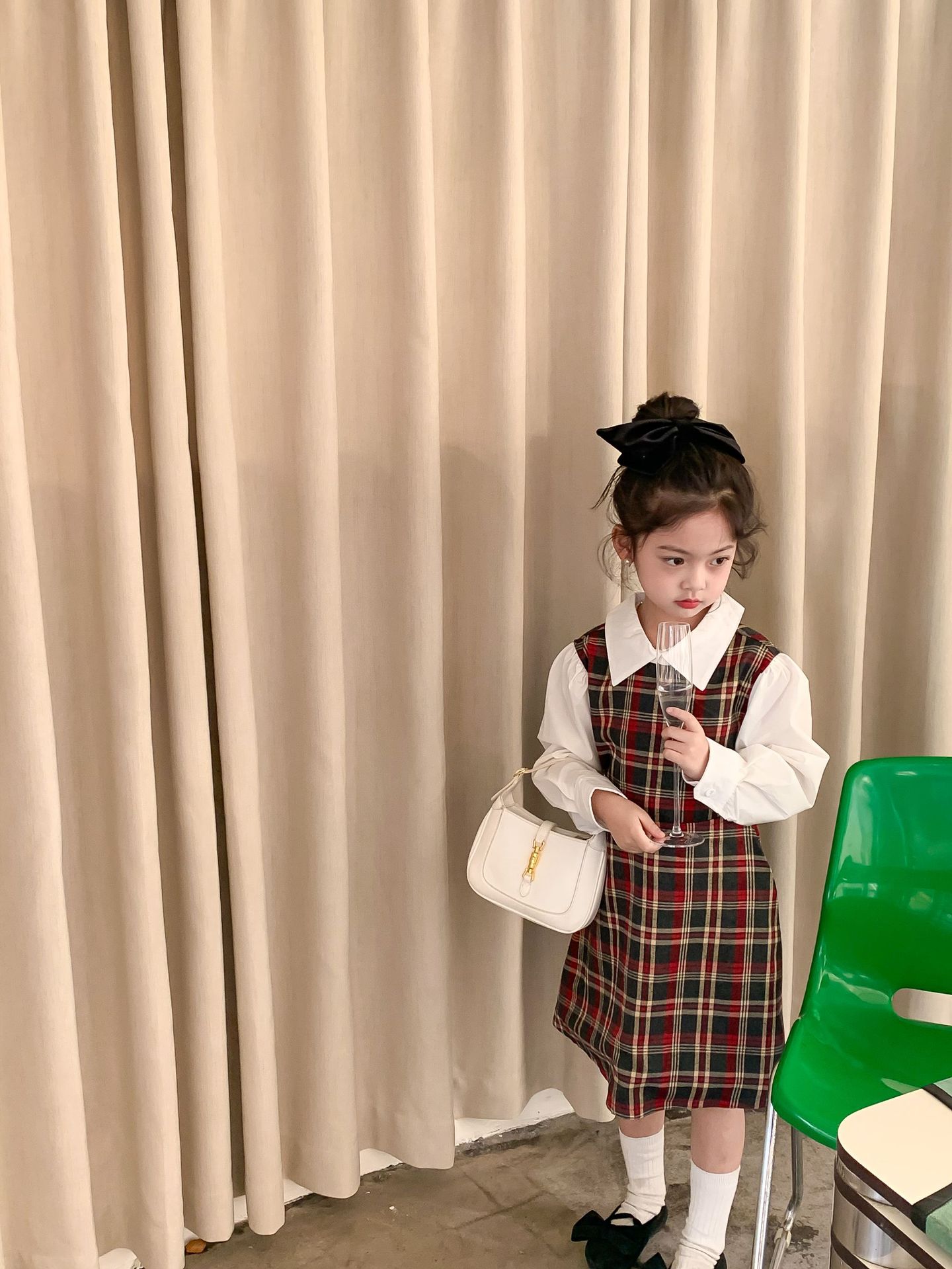 Vestido DE LOS NIÑOS 2024 primavera nuevas niñas vestido de camisa a cuadros sin espalda Medio y grandes niños niñas estilo universitario vestido falda