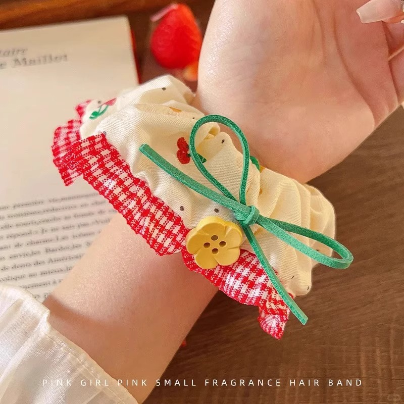 Bonito oso conejo de encaje a cuadrícula anillo de cabello de intestino grande de la niña corazón arco tela cabello correa cuerda de cabeza