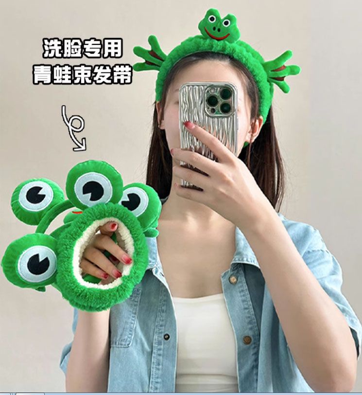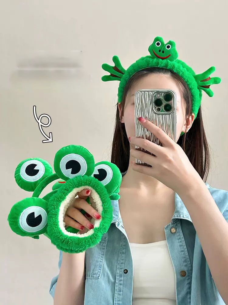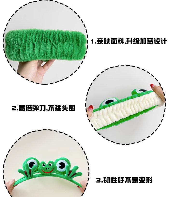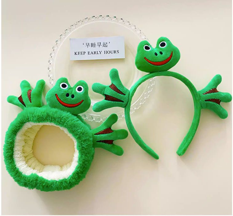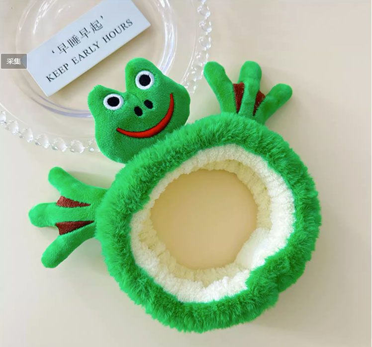 Banda de cabello de ranas lindas bandas de dibujos animados para lavar la cara de mujeres maquillaje especial banda de cabello máscara de lavado pelusa nueva tarjeta de cabello