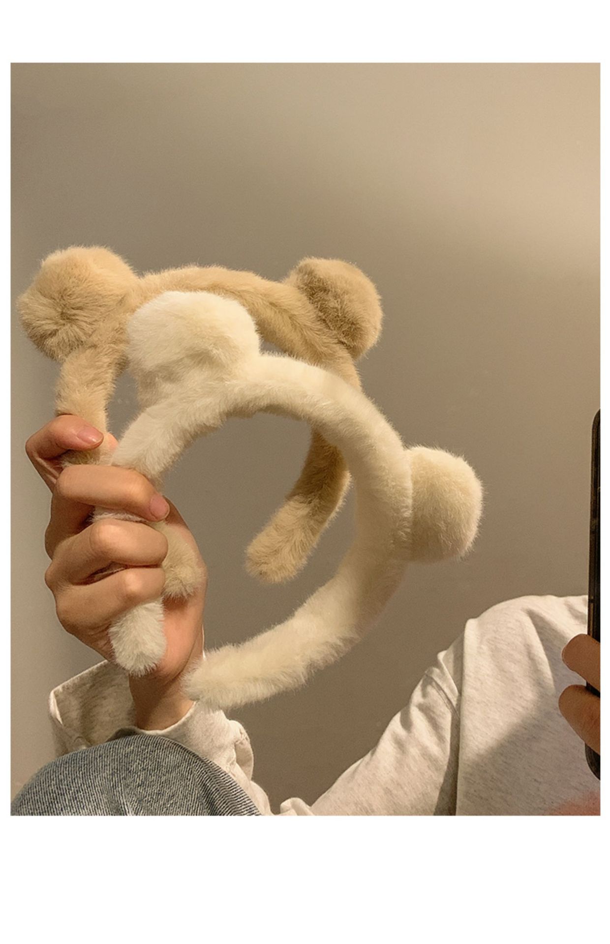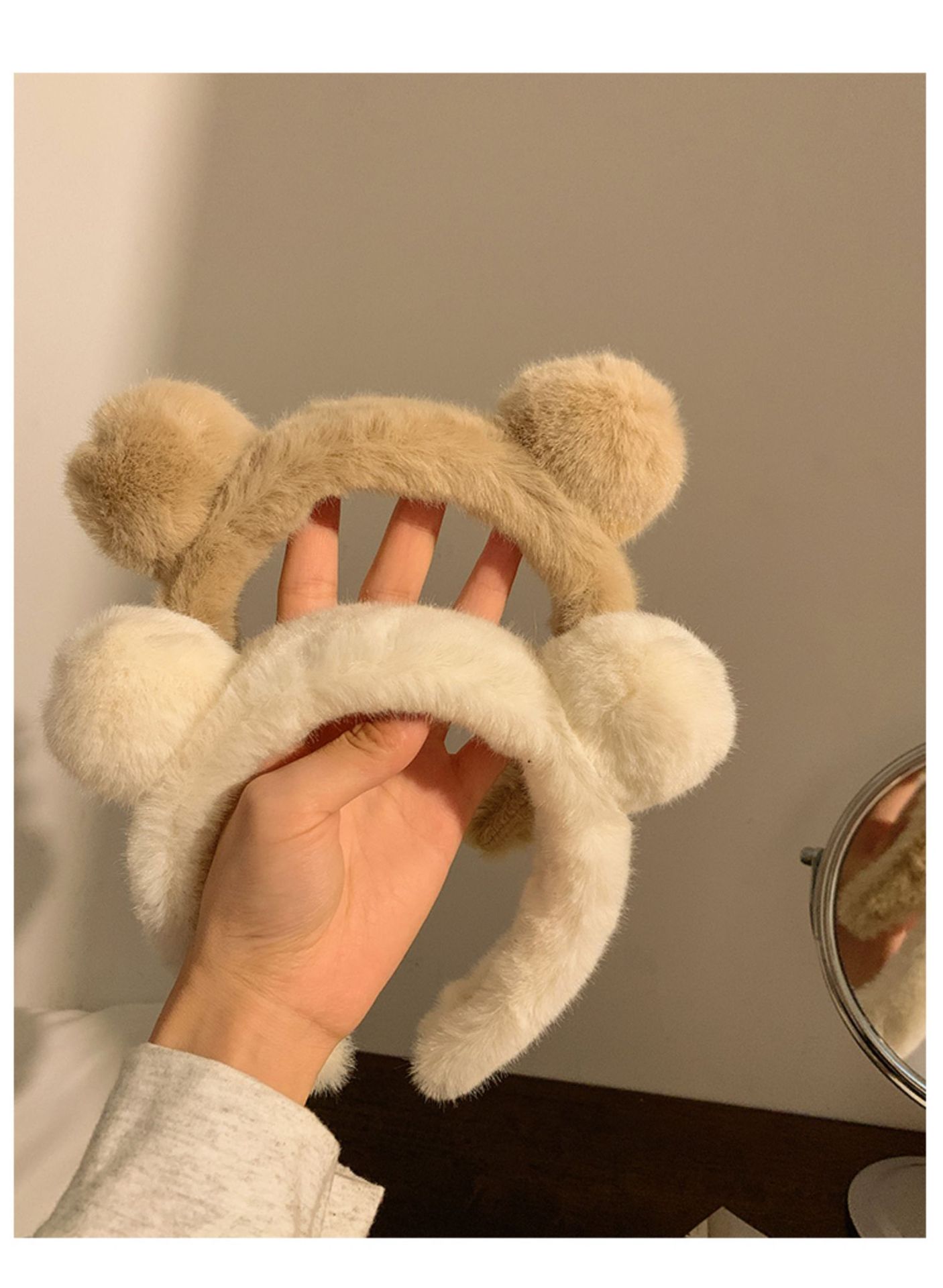 Otoño y invierno lindos osos de peluche orejas cabello de dibujos animados para mujeres cabello roto lavar la cara aplicación de máscara especial cabello de cabello banda de cabeza tocado