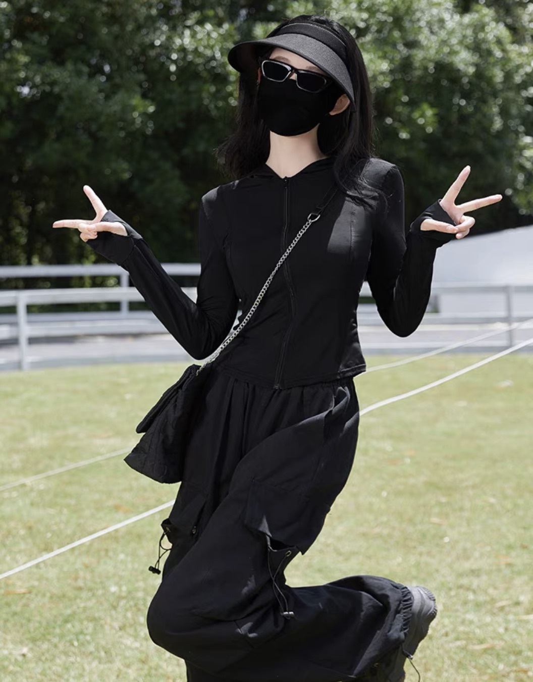 Verano nuevo Ono y el mismo tipo de ropa de protección solar delgada yoga ropa de protección solar con capuchón anti-UV hielo