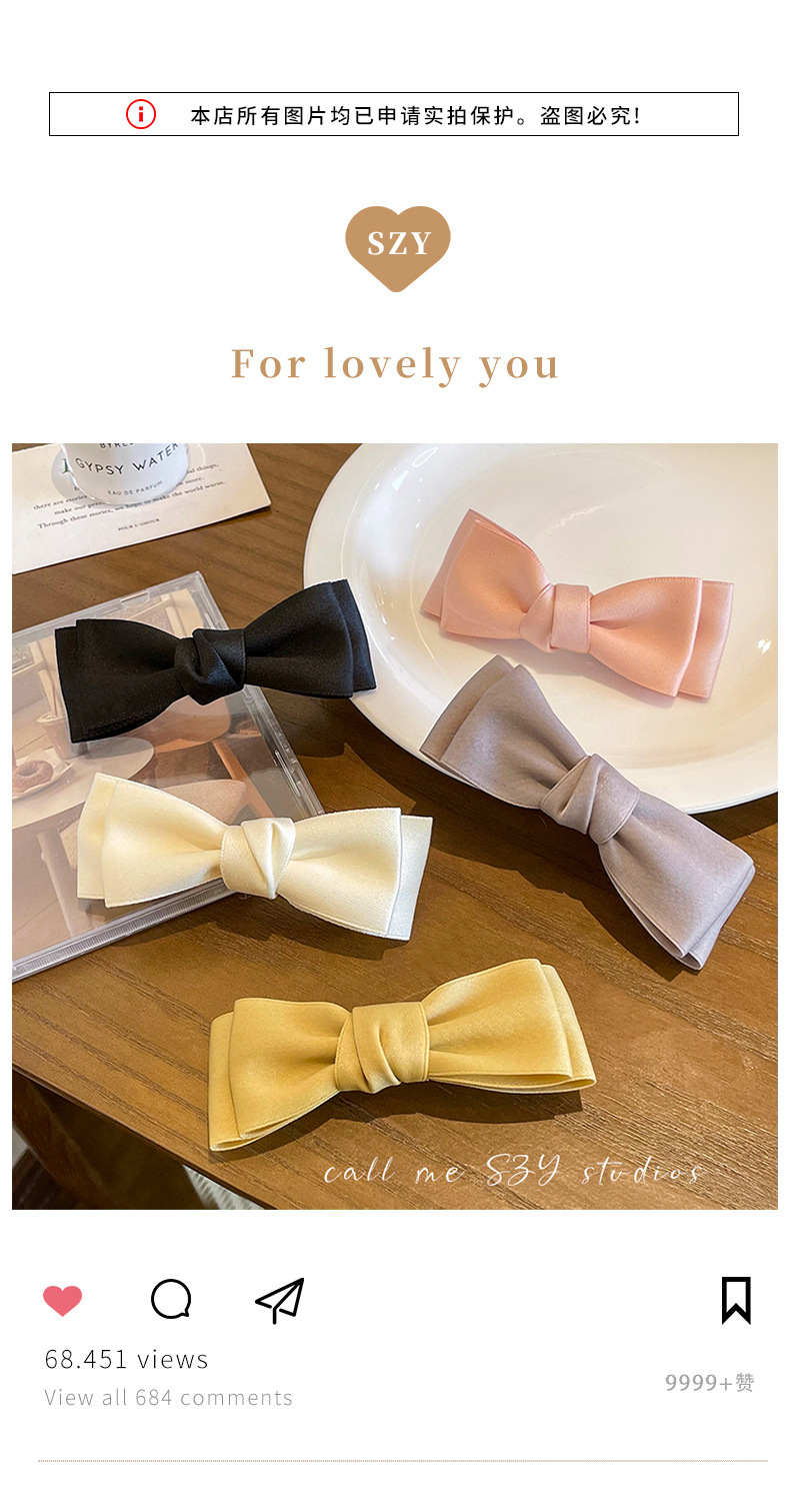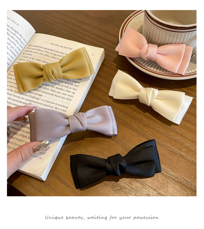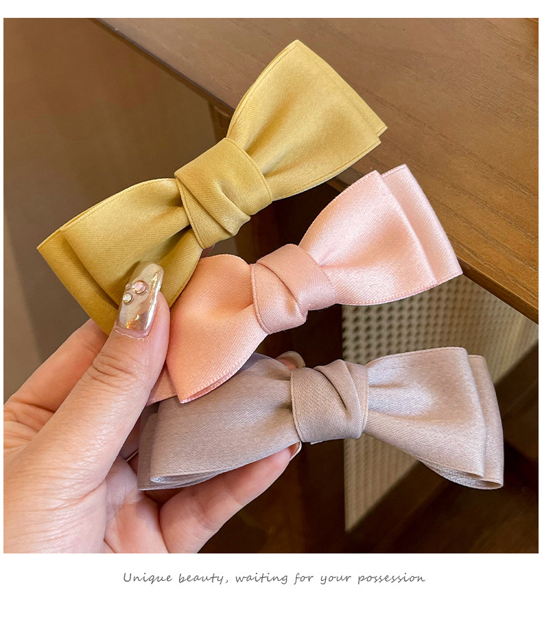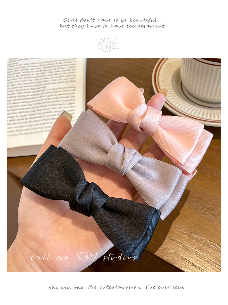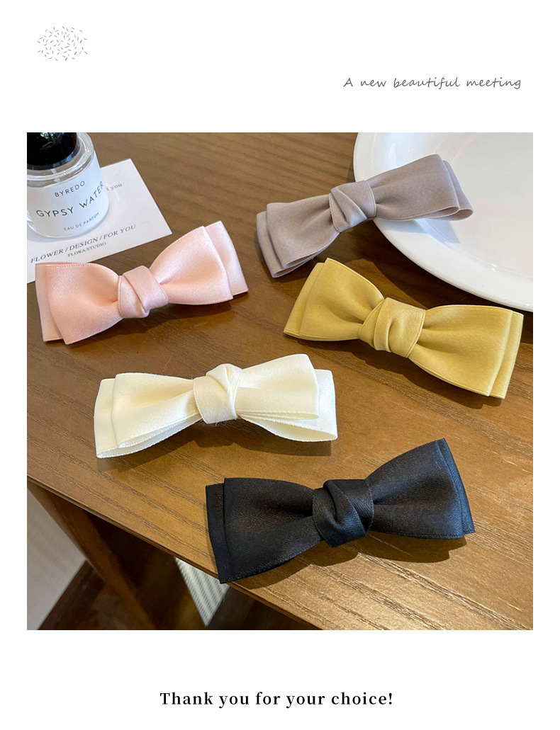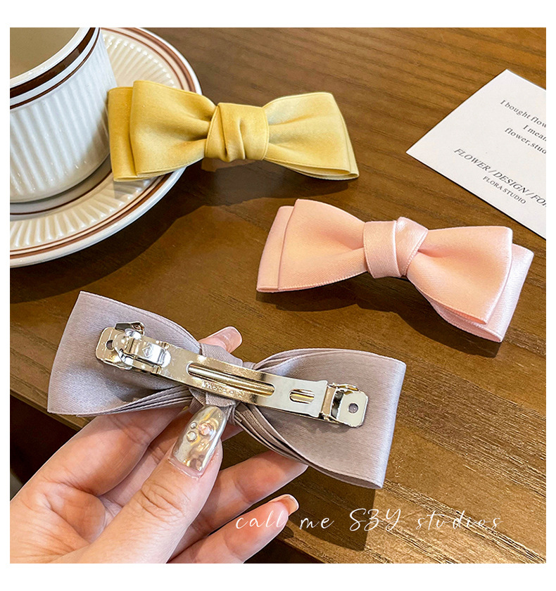 Arco pequeño clip para el cabello de mujer cabeza trasera resorte clip de cabello de alta sensación clip de cabello de satén clip de cabello tocado