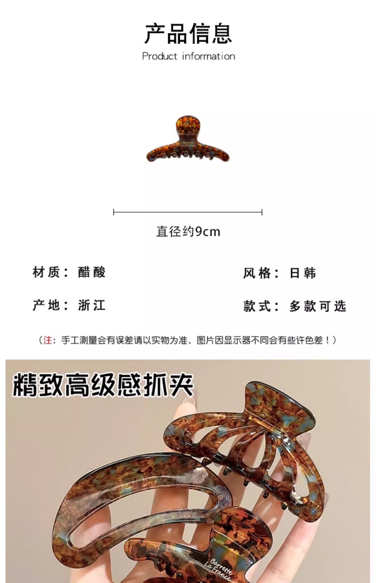 Gran clip de agarre de ácido acético retrógrado francés, clip de pescado, clip de cabello sofisticado, clip de cabello de alta calidad, pinza de cabello para el cabello.