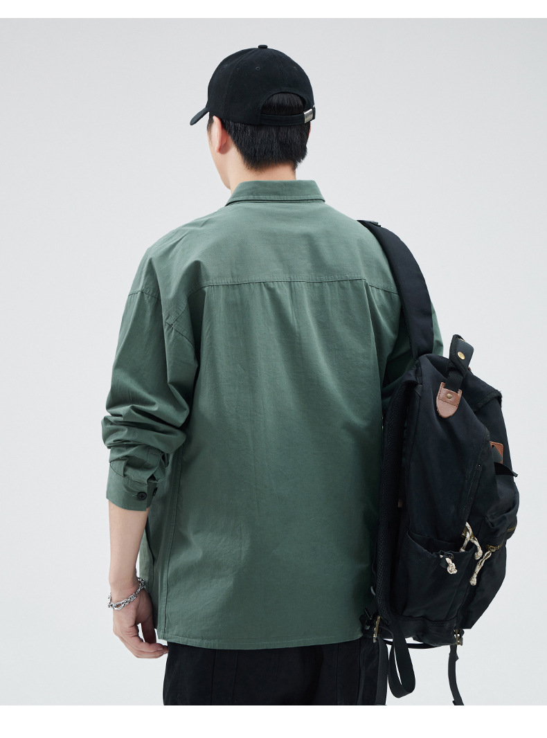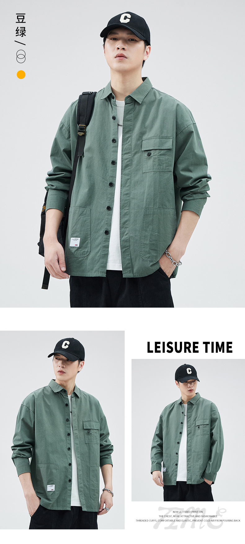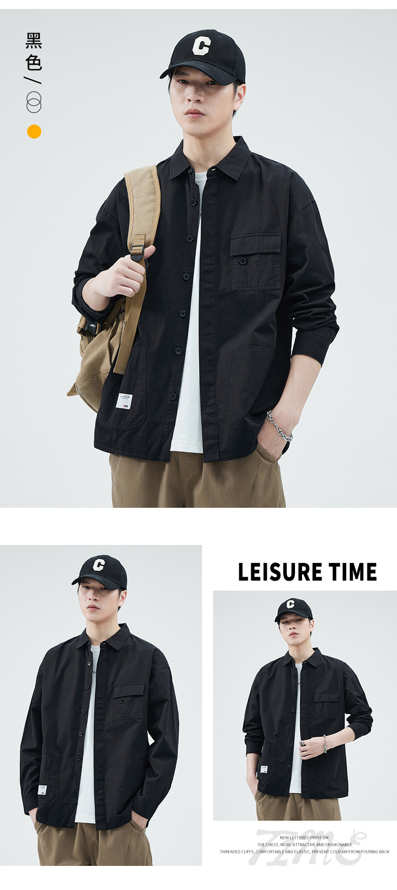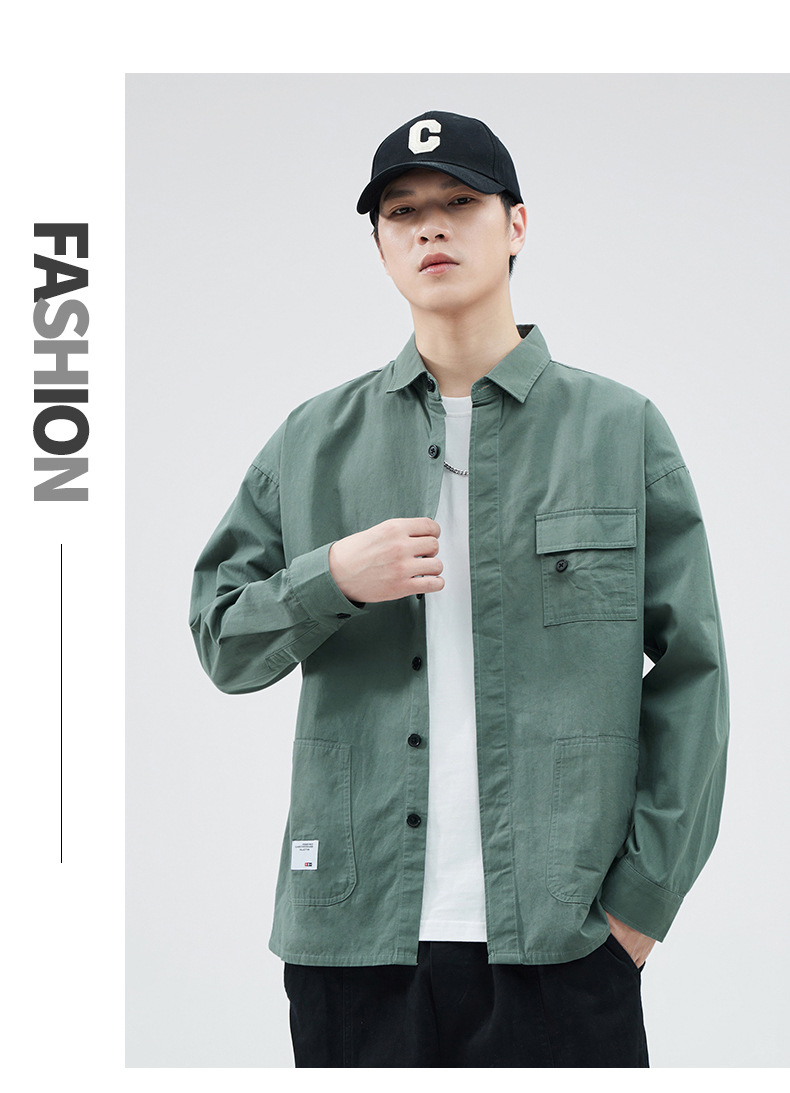 Camisas personalizadas de primavera y verano masculinas, ropa suelta, algodón coreano casual simple, bolsillo único, fresco, japonés