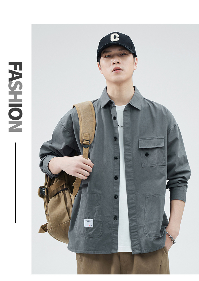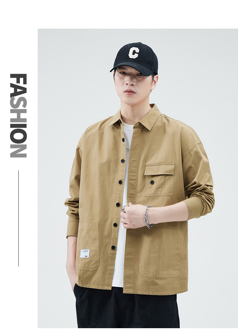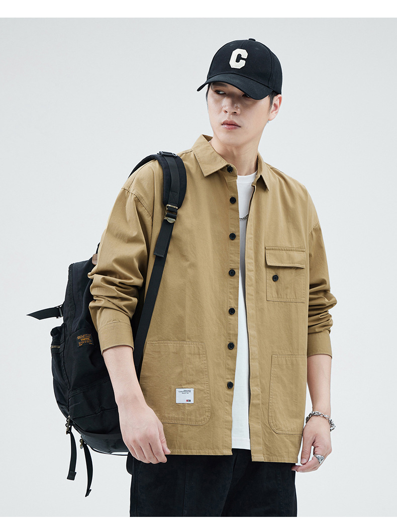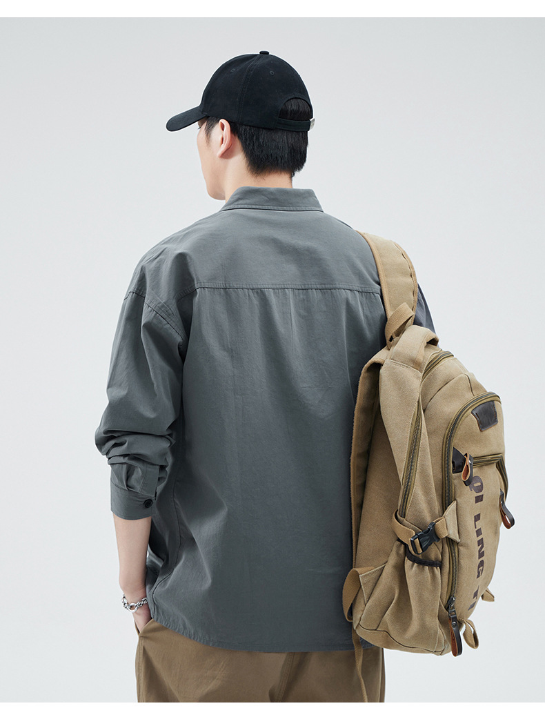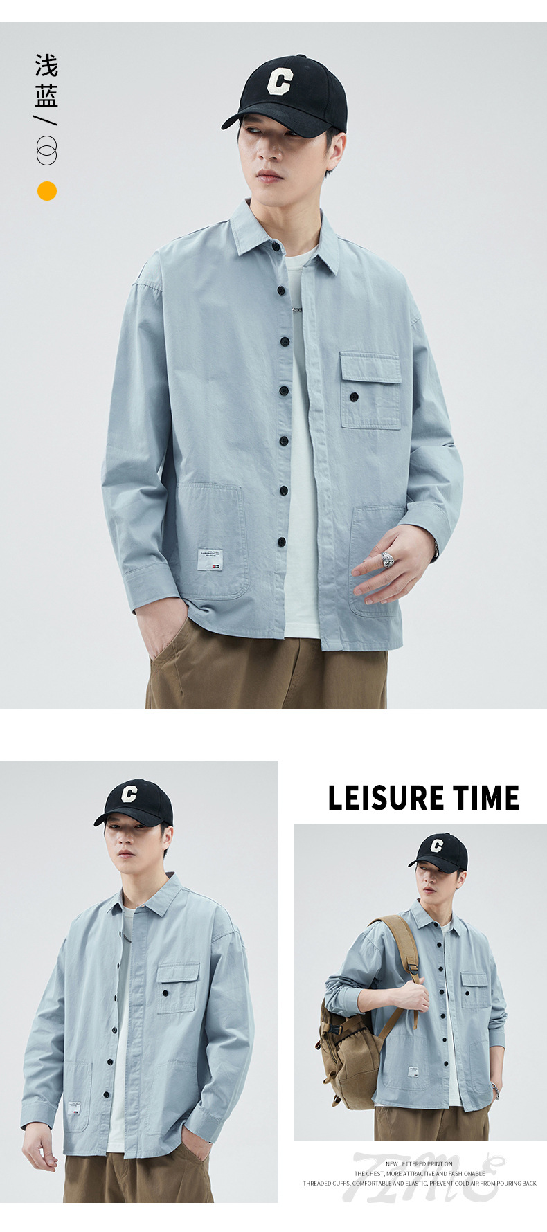 Camisas personalizadas de primavera y verano masculinas, ropa suelta, algodón coreano casual simple, bolsillo único, fresco, japonés