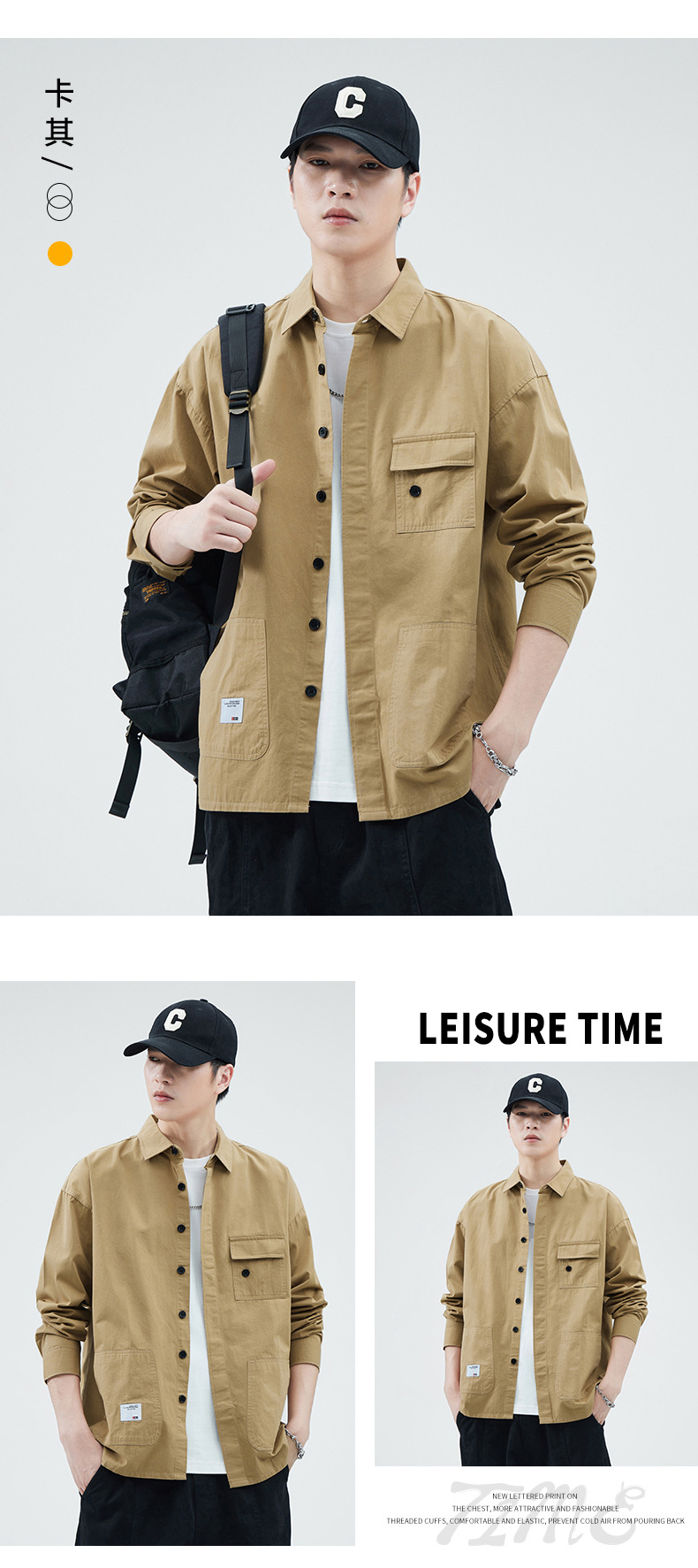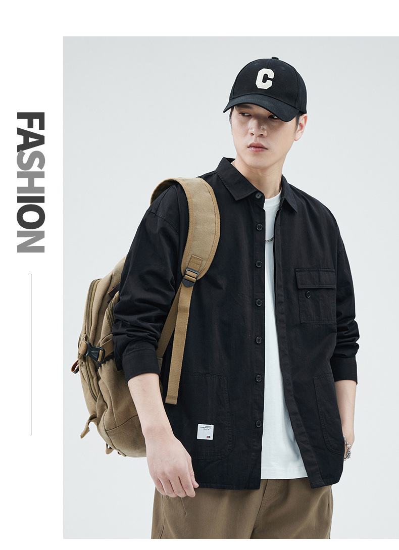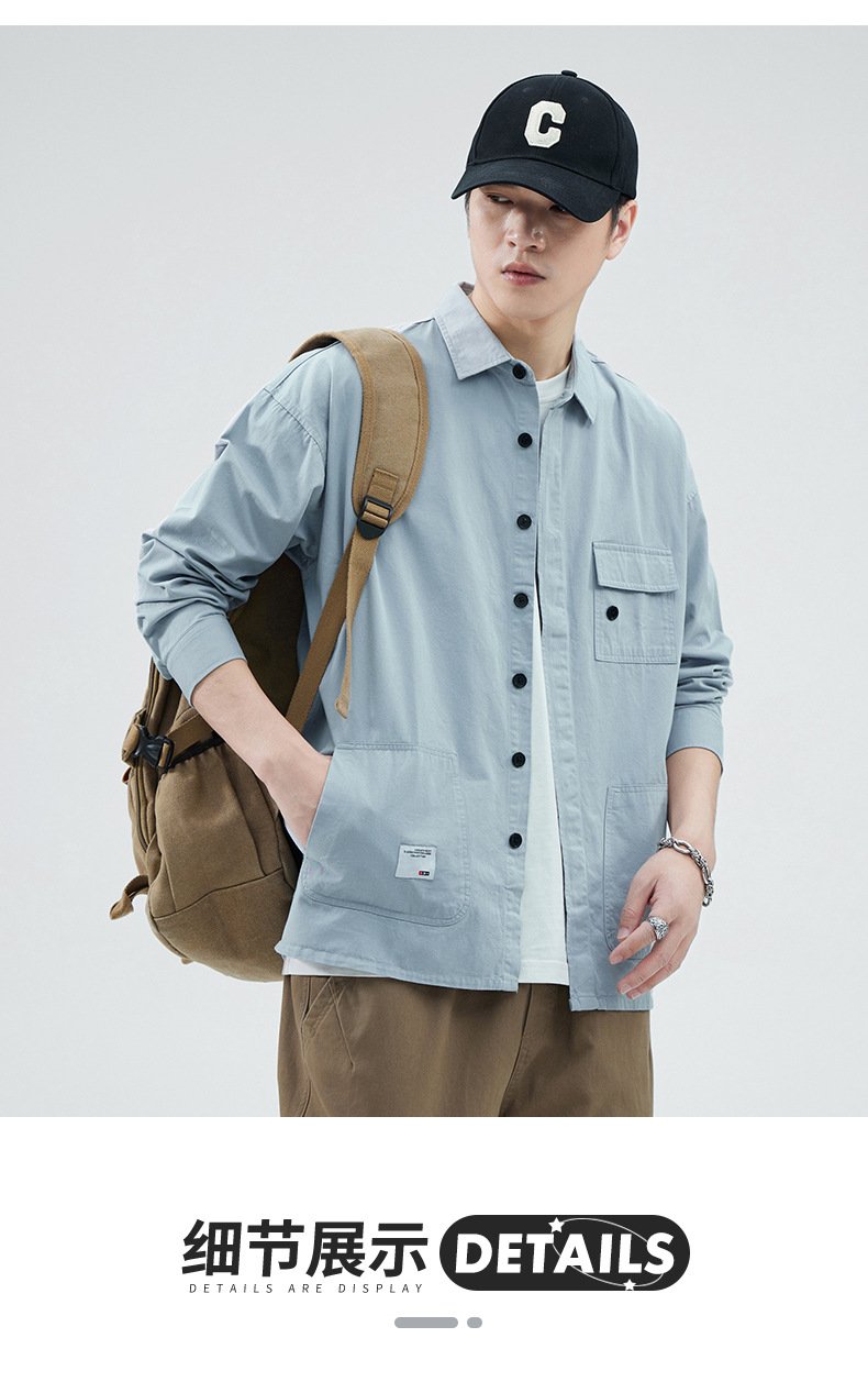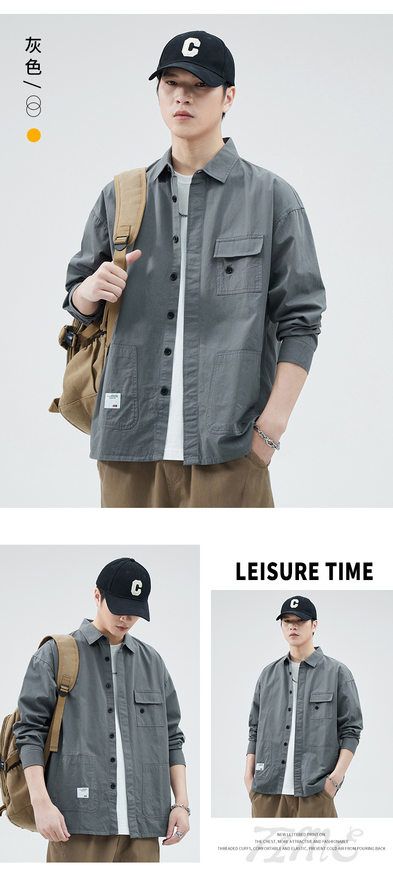 Camisas personalizadas de primavera y verano masculinas, ropa suelta, algodón coreano casual simple, bolsillo único, fresco, japonés