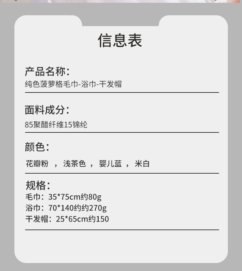Sombrero de pelo seco + toalla + toalla de baño