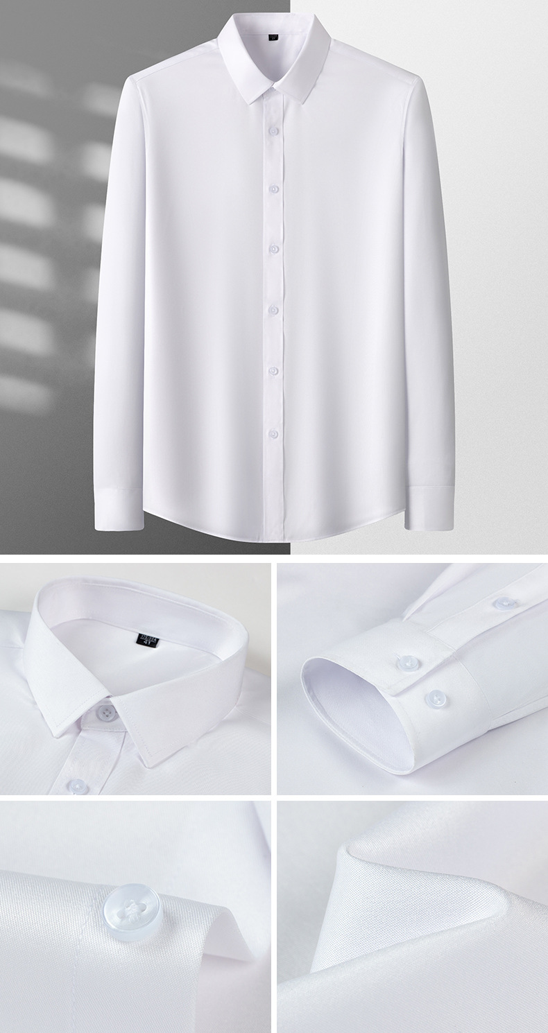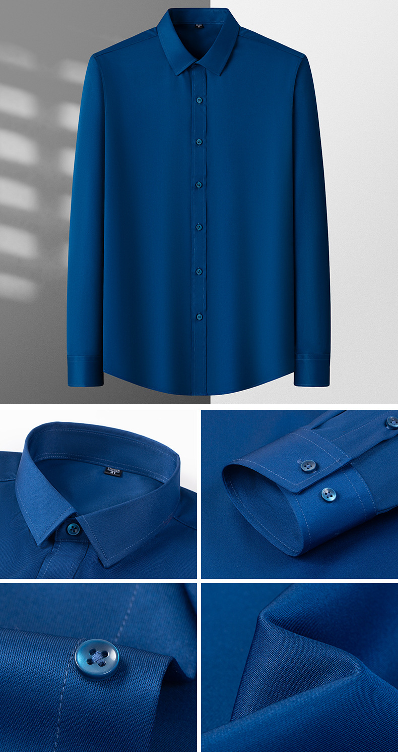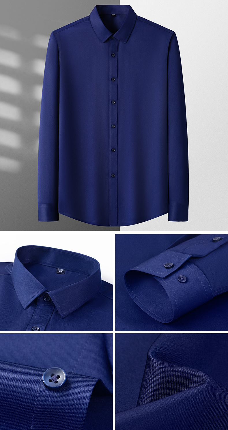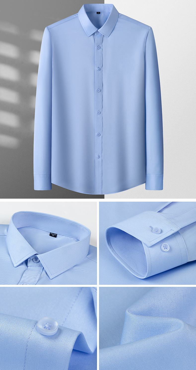 Camisas masculinas primavera y otoño camisa de manga larga elástica sin quemar fibra de bambú para hombres de negocios de alta gama