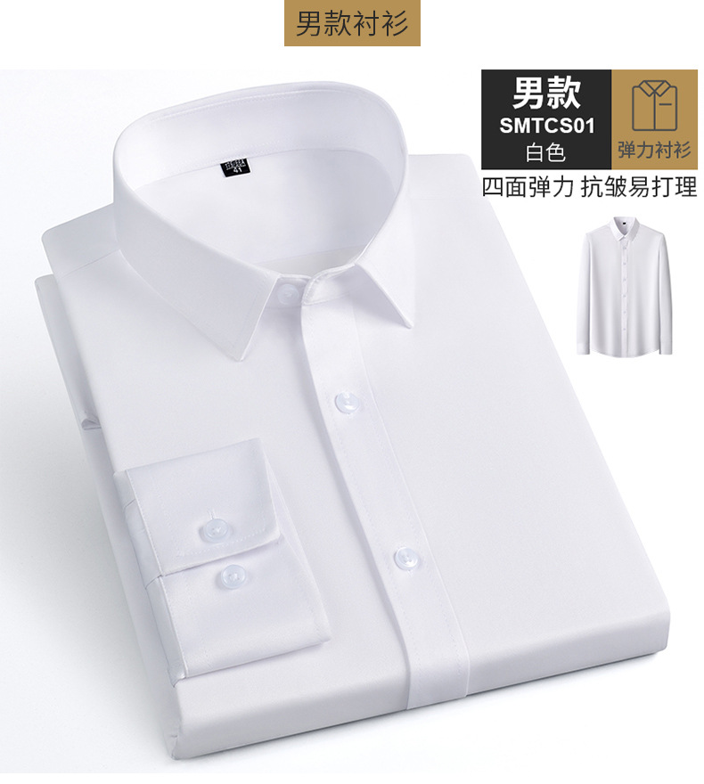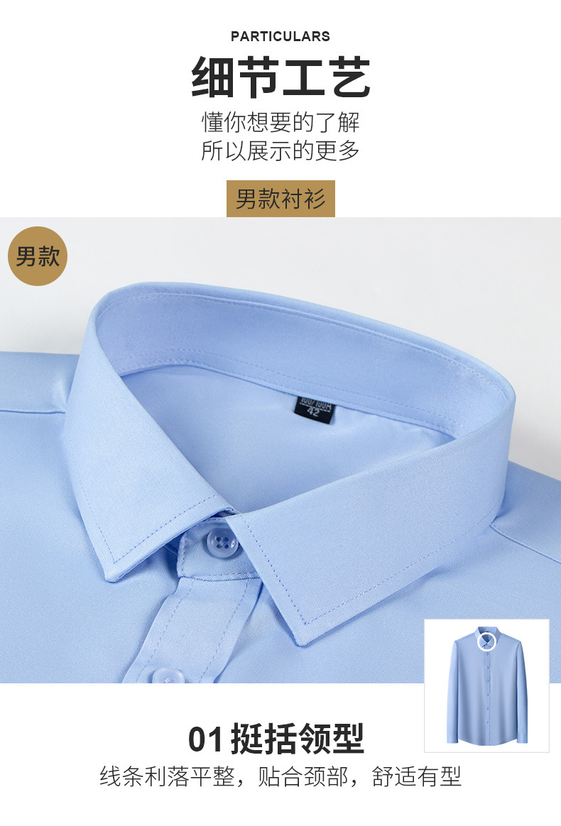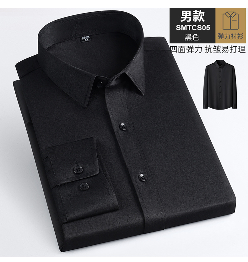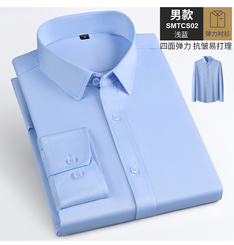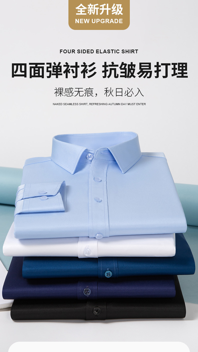 Camisas masculinas primavera y otoño camisa de manga larga elástica sin quemar fibra de bambú para hombres de negocios de alta gama
