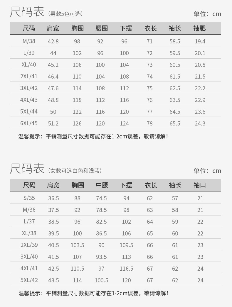 | Color | Blanco (masculino), azul claro (masculino), azul lago (masculino), azul tibetano (masculino), negro (masculino), blanco (femenino), azul claro (femenino) |