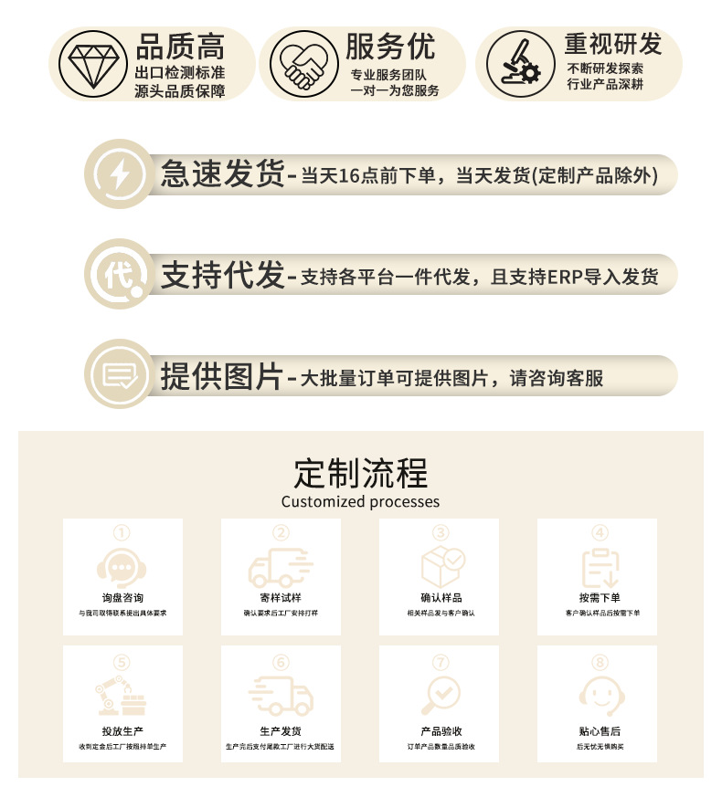 La cantidad indicada corresponde al pedido mínimo requerido por la fábrica; si necesitas ajustar la cantidad del producto, después de enviar el presupuesto, un gerente de compras hispanohablante se pondrá en contacto contigo para discutir los detalles del producto.