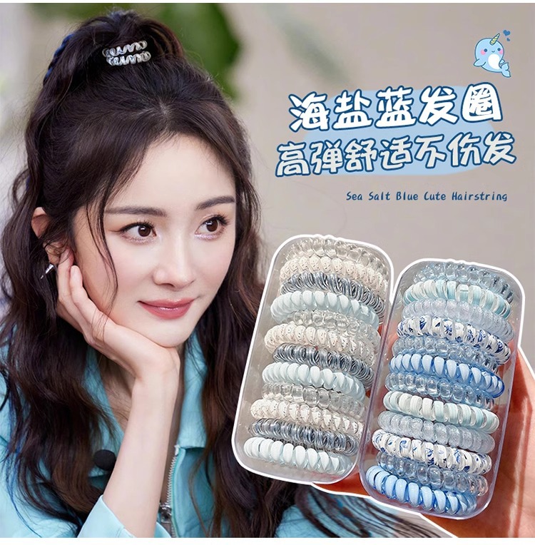 Sal marina azul línea telefónica anillo de cabello para mujeres 2025 nuevo estilo de alto valor facial de cabello de cola de caballo alta atado cabello correa de cuero cuerdas de cabeza