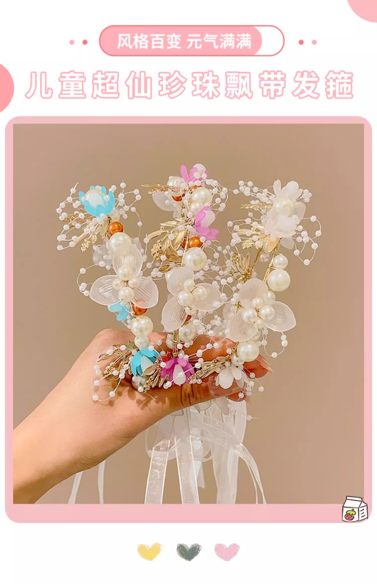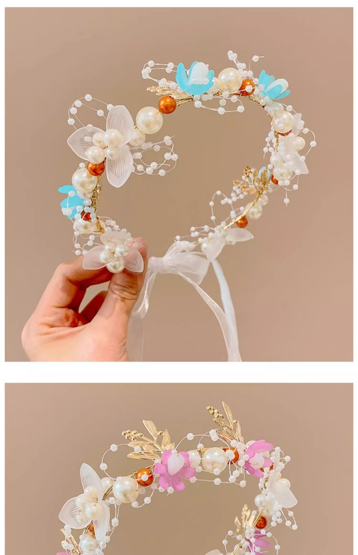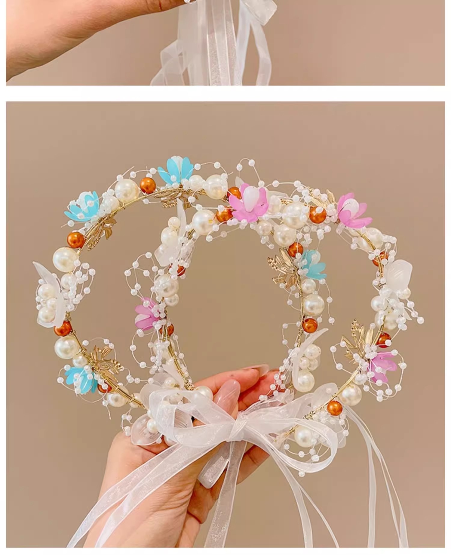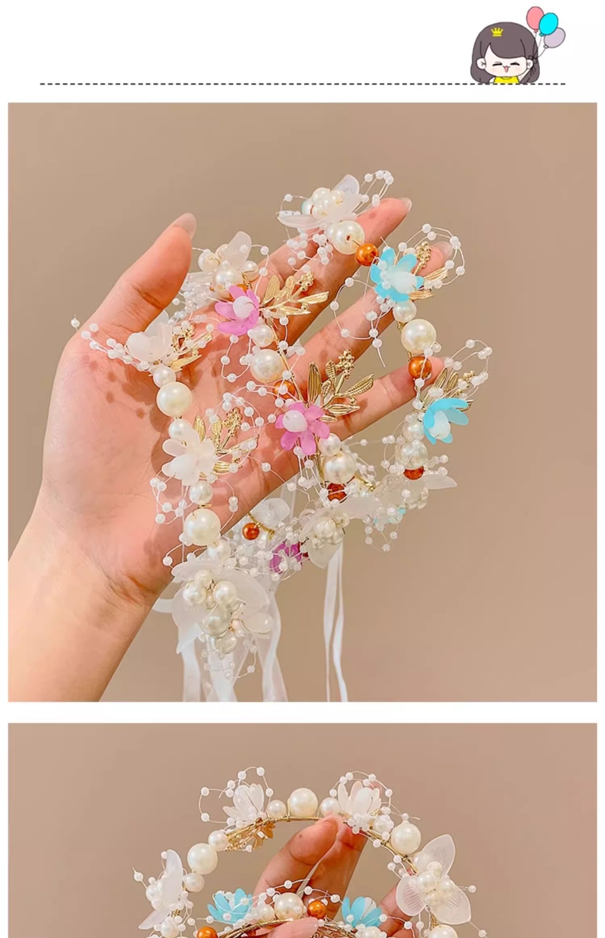 Guirnaldas de niños princesa joyeros de cabello super niña flores perlas flotantes tocado dulce mariposa banda de cabello roja
