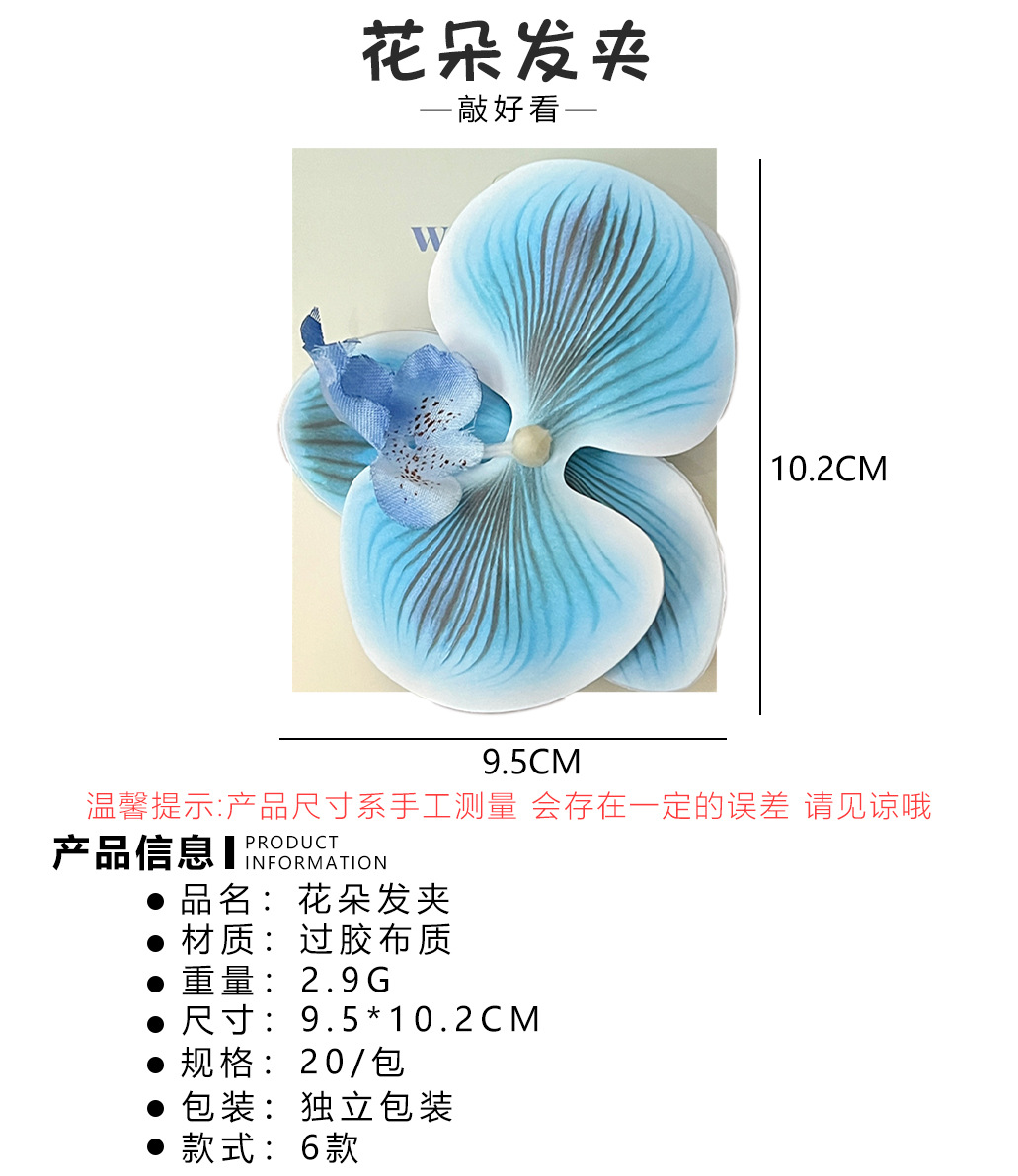 Orquídea mariposa de alto valor de cara brocas de cabello de flores de niña de estilo de flor flor de cabello de vibración brocas de borde