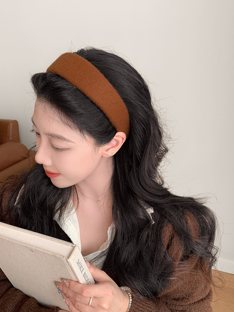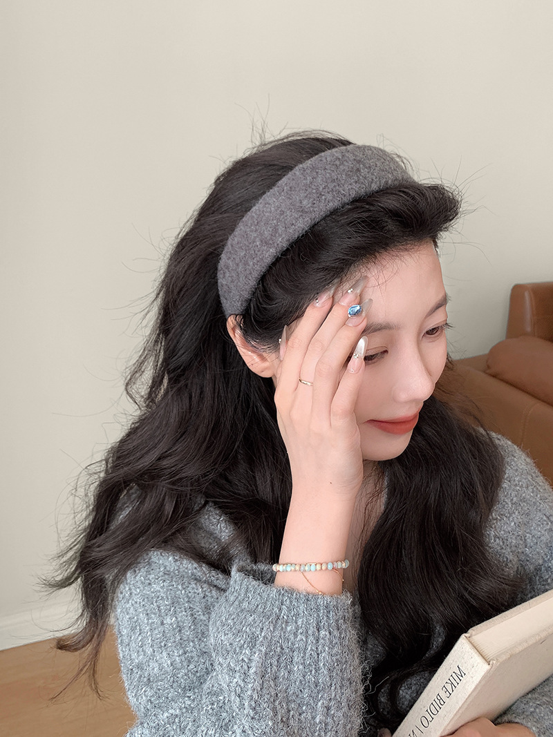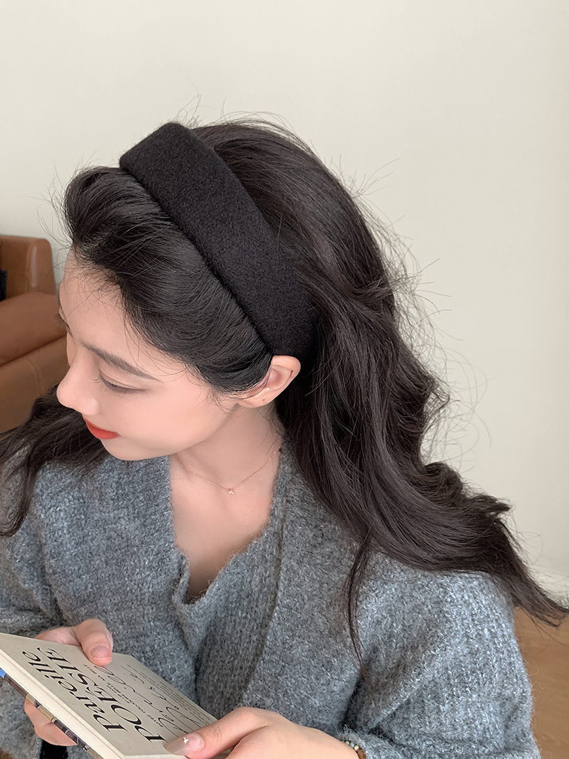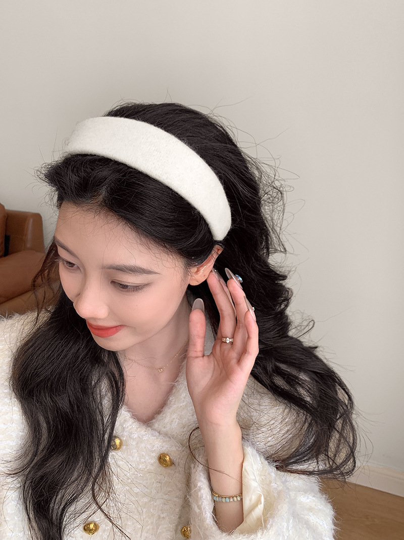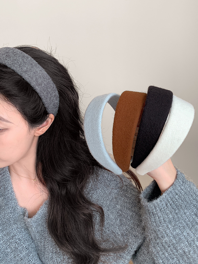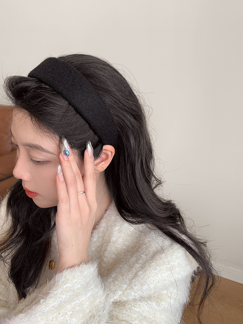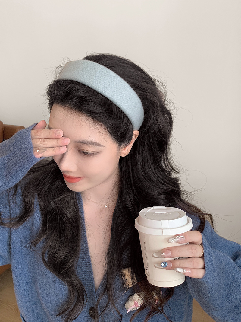Peludo de color sólido, banda ancha para el cabello, mujer coreana, toque de cabello alto, lavado de cara, banda de cabello de presión, toque de cabello de moda universal.