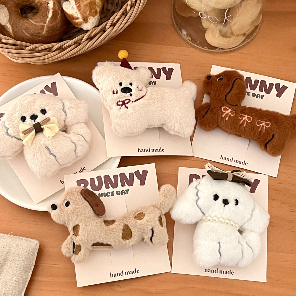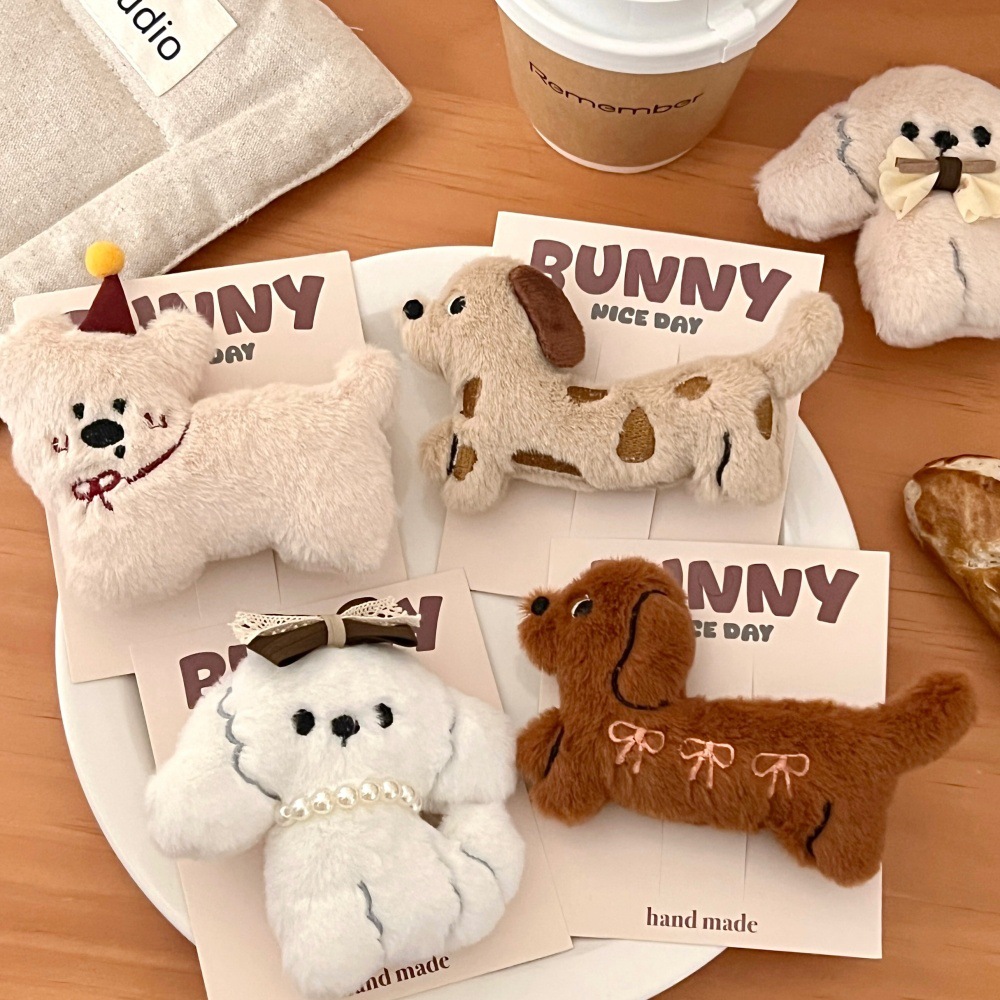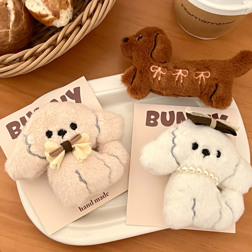 Caricatura muñeca de peluche salchicha perro muñeca abrazadera para el cabello de la niña de peluche al por mayor abrazadera para el cabello rotura al por mayor