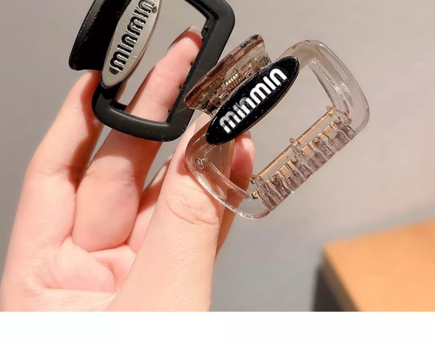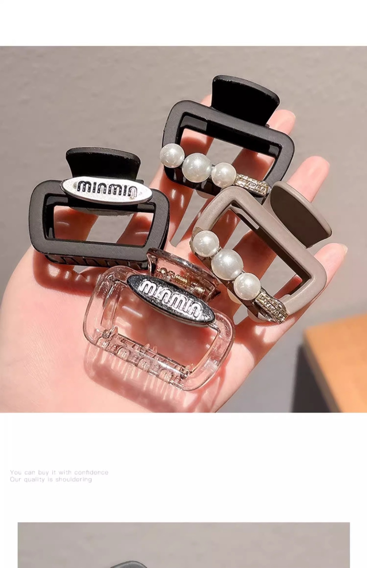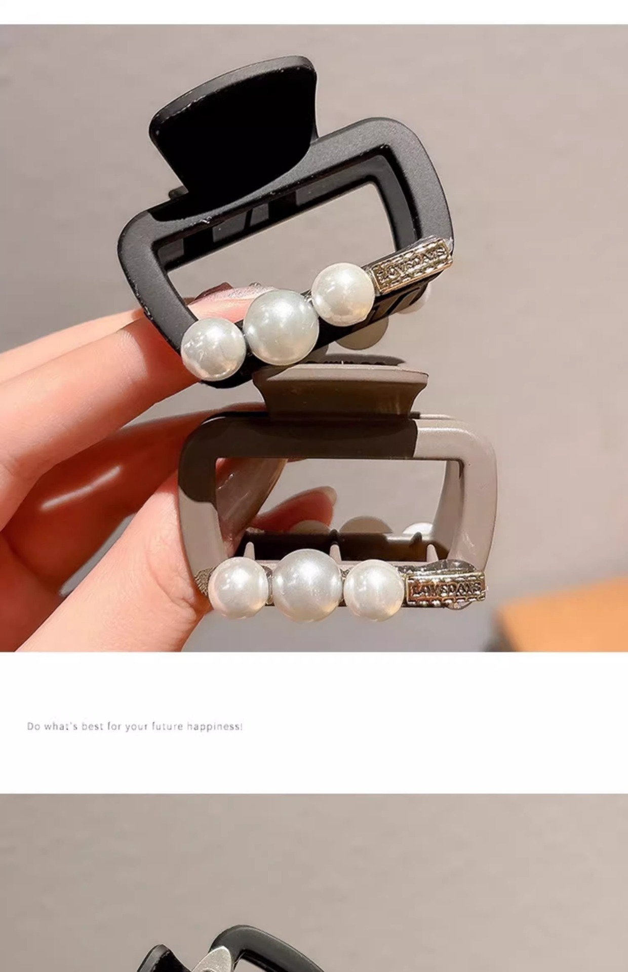 | Color | Clip de agarre cuadrado estándar de oro de perlas negras, clip de agarre cuadrado estándar de oro de perlas de color café, clip de agarre cuadrado de letras Min negras, clip de agarre cuadrado de letras Min transparentes, gris esmerilado, café esmerilado, amarillo claro esmerilado, verde esmerilado, rosa esmerilado, negro cuadrado, amarillo mostaza cuadrada, café oscuro cuadrado, morado cuadrado |