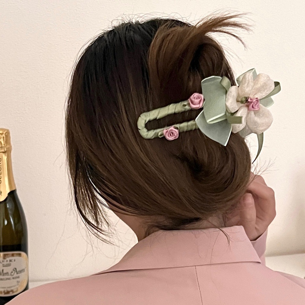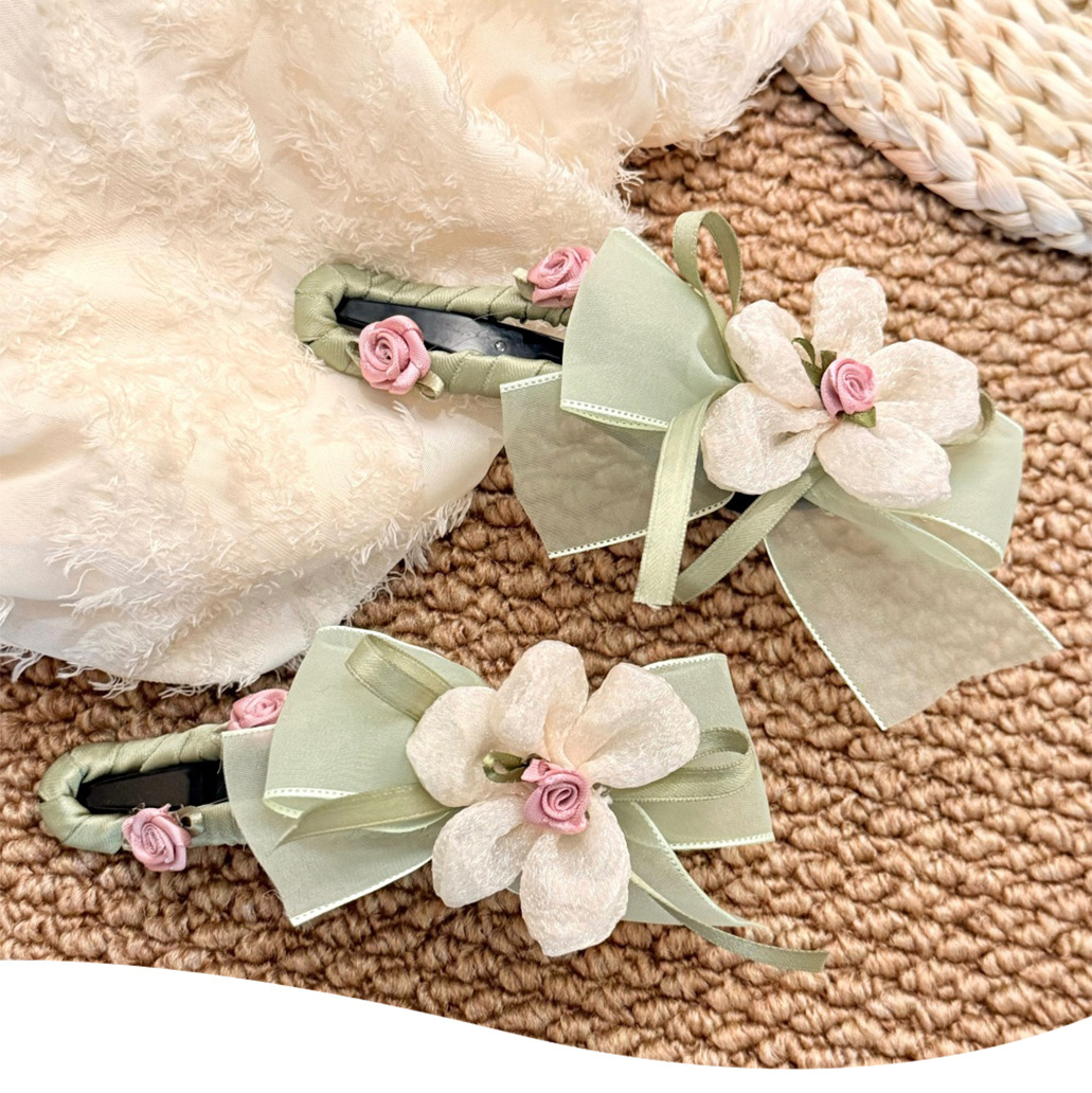 Nuevo super inmortal mallas flores clip de cabello adornamiento para el cabello de la cabeza de la niña dulce Sen sistema de clip de tiburón una palabra agarrar clip al por mayor