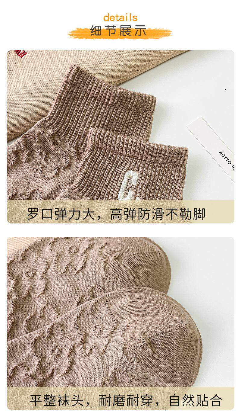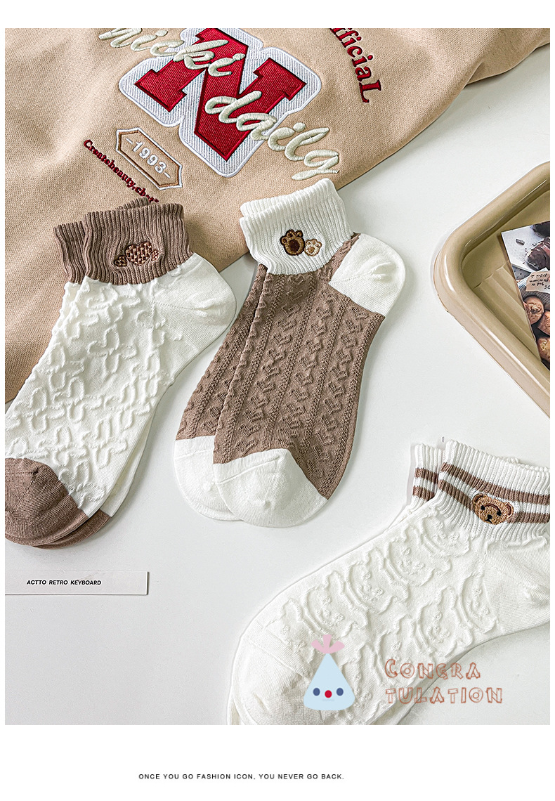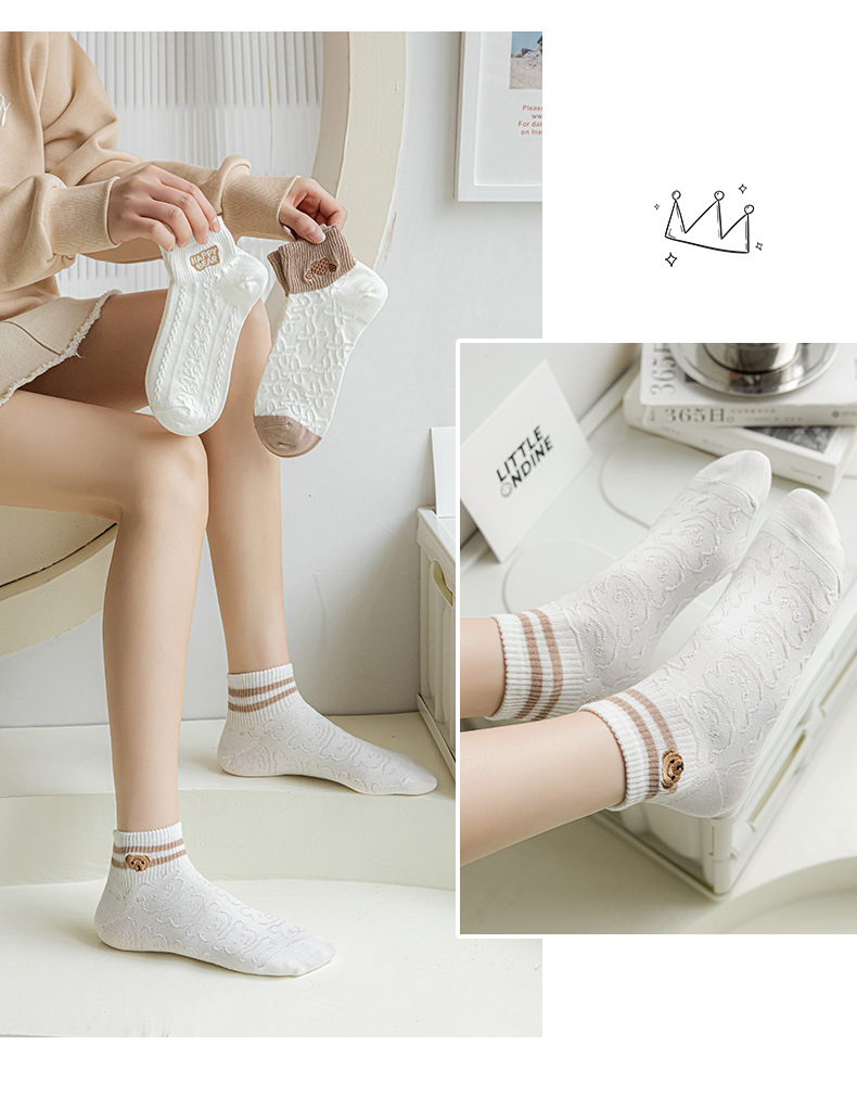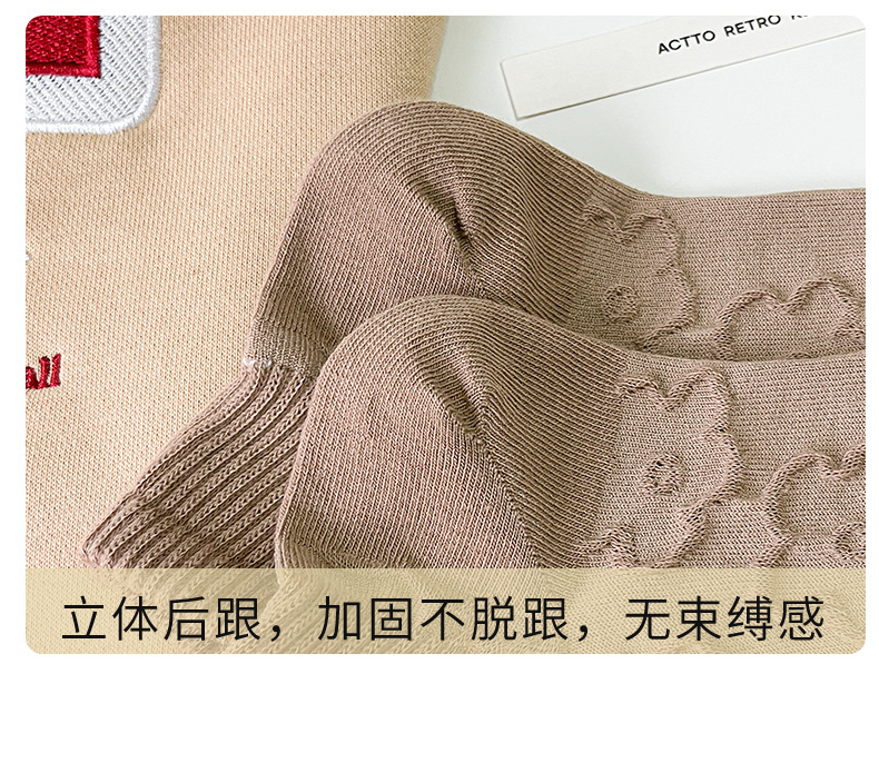 Calcetines mujer color sólido algodón primavera y verano calcetines de barco finos tubo corto café bordado animal pequeño patrón calcetines de mujer