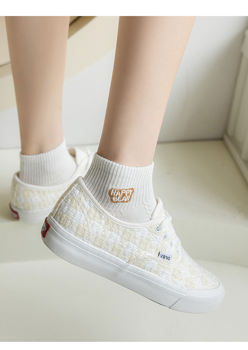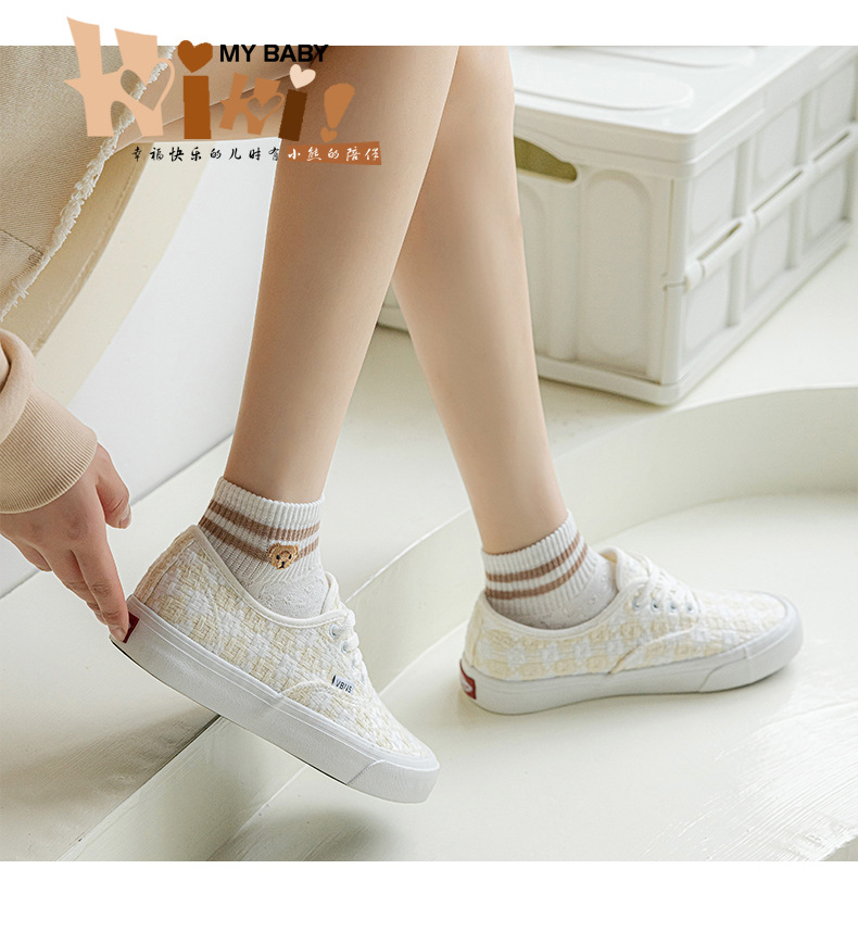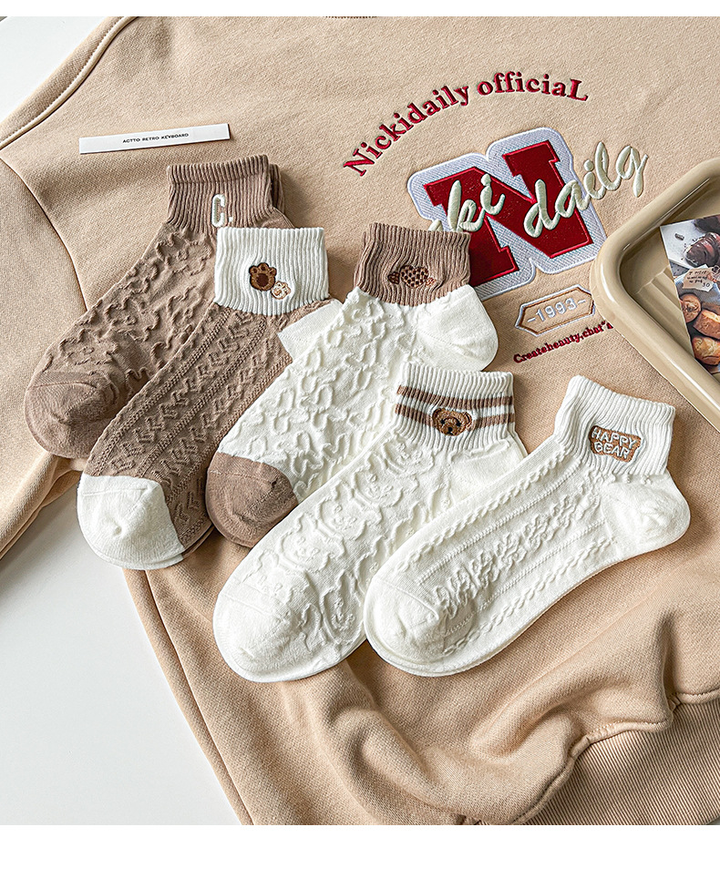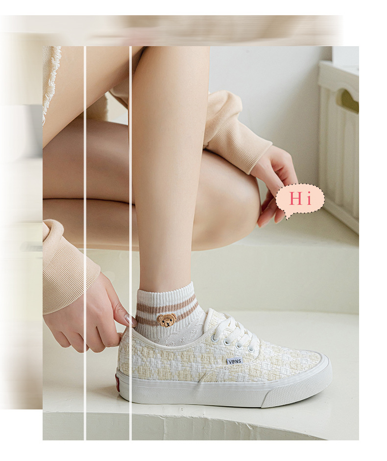 Calcetines mujer color sólido algodón primavera y verano calcetines de barco finos tubo corto café bordado animal pequeño patrón calcetines de mujer