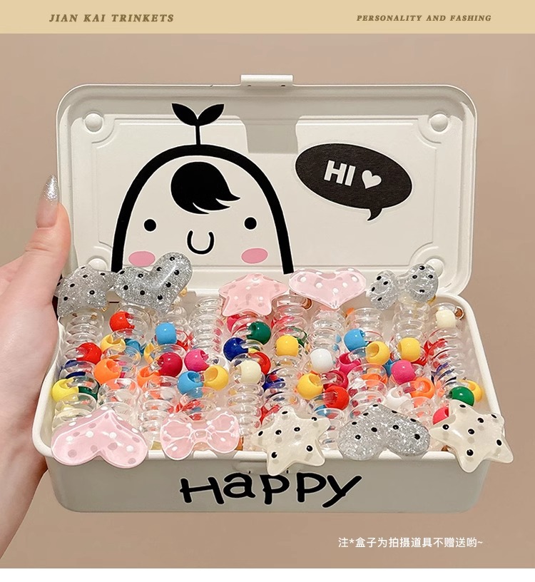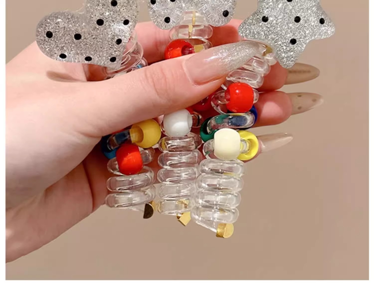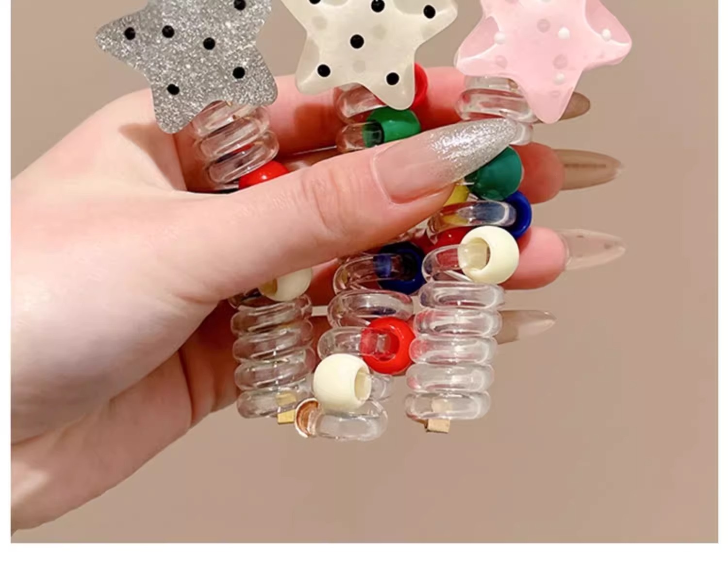 | Color | 3 estrellas beige 1, 7 estrellas rosas claras 1, 8 lazos rosas 1, 12 amores rosas 1, 15 estrellas grises plateadas 1, 18 cuentas blancas tejiendo anillos de pelo |