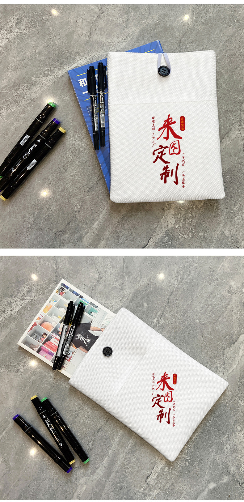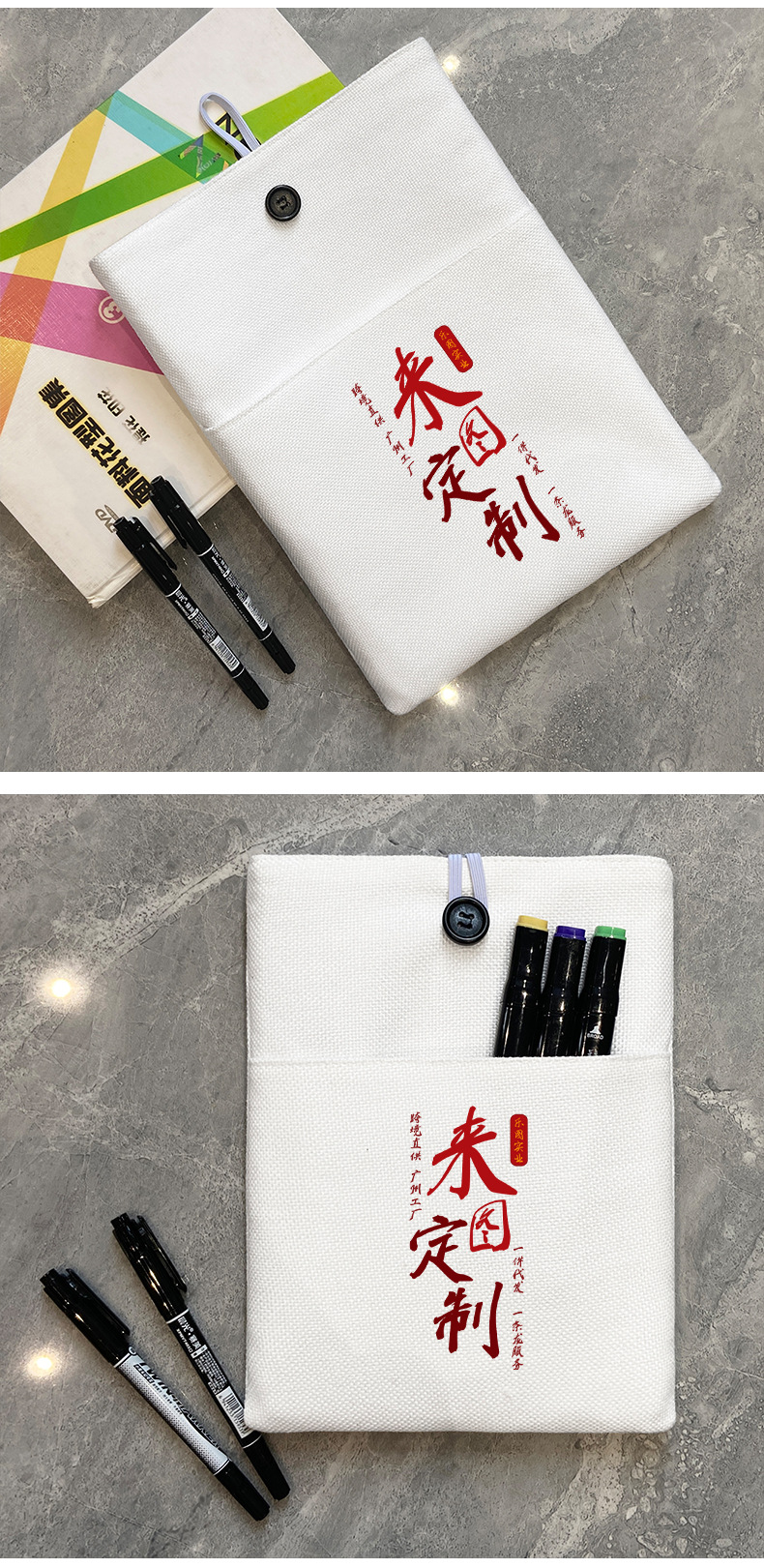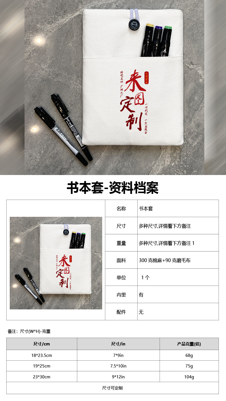 Bolsas de libros personalizadas de 300 gramos de algodón bolsa de lino bolsas de almacenamiento de libros de estudiantes anti-sucio libro conjunto xqds0442a
