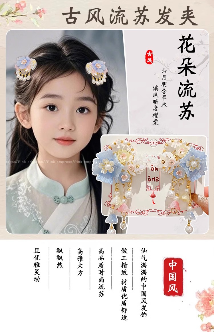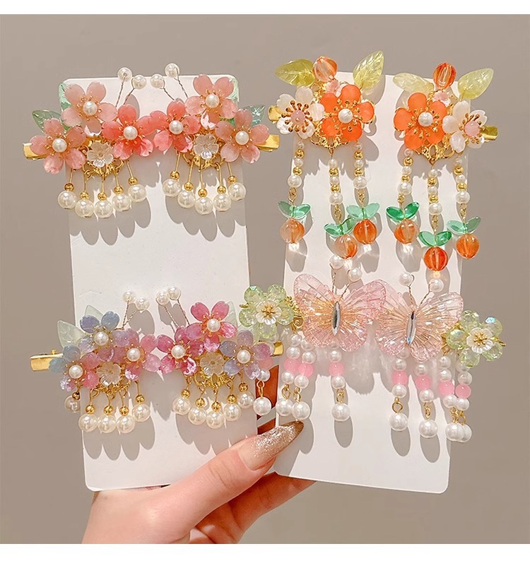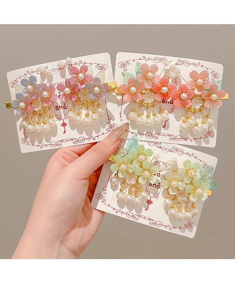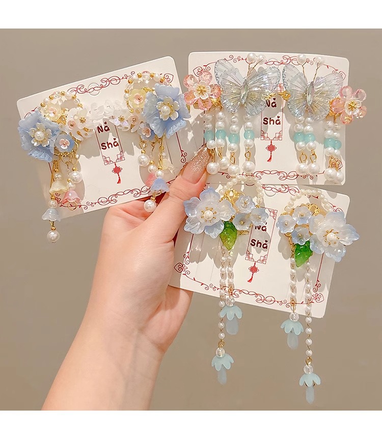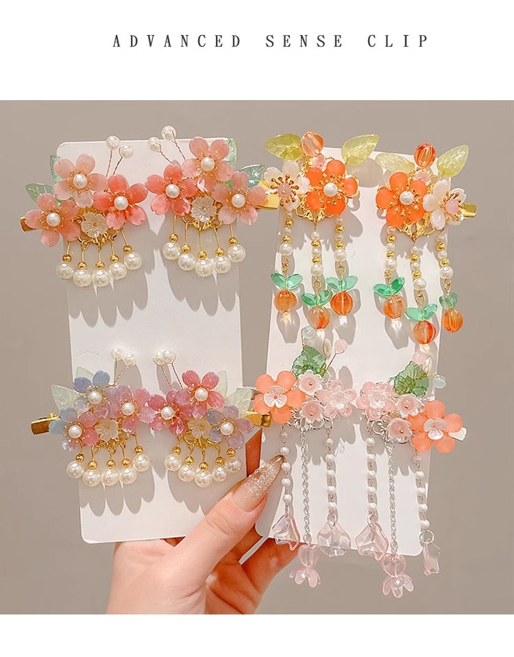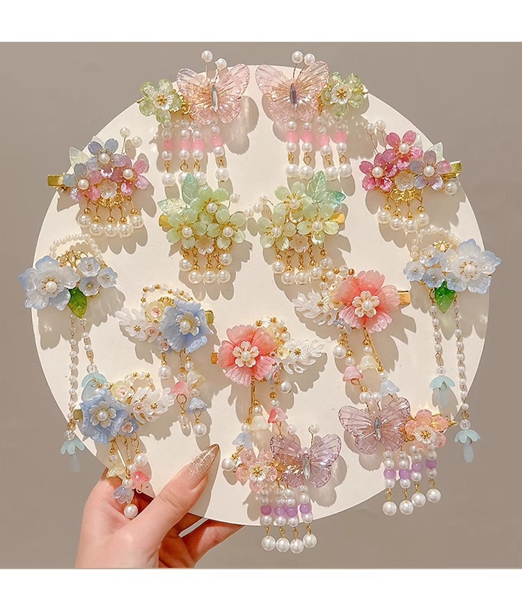 Niños flores de perlas para el cabello de mujeres estilo antiguo estilo Han toque de cabello de niña super inmortal estilo nacional tarjeta de cabello de niña pequeña para el cabello de clips