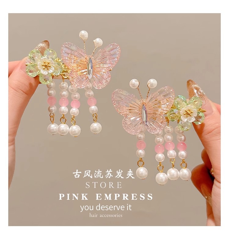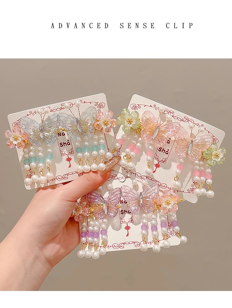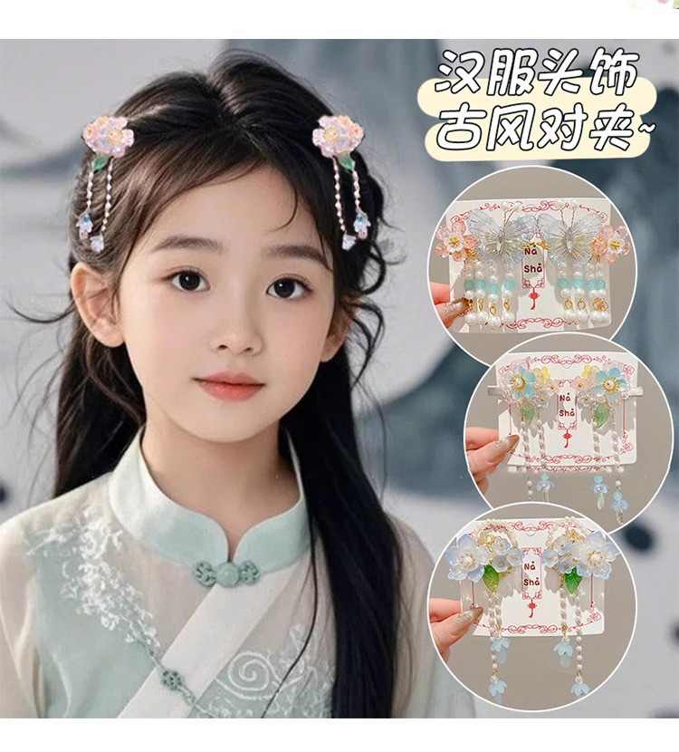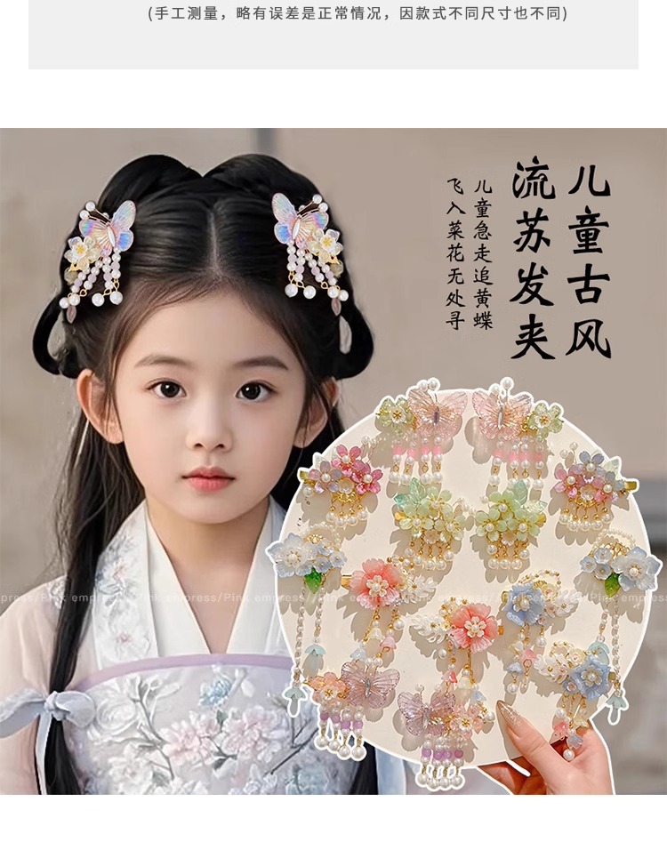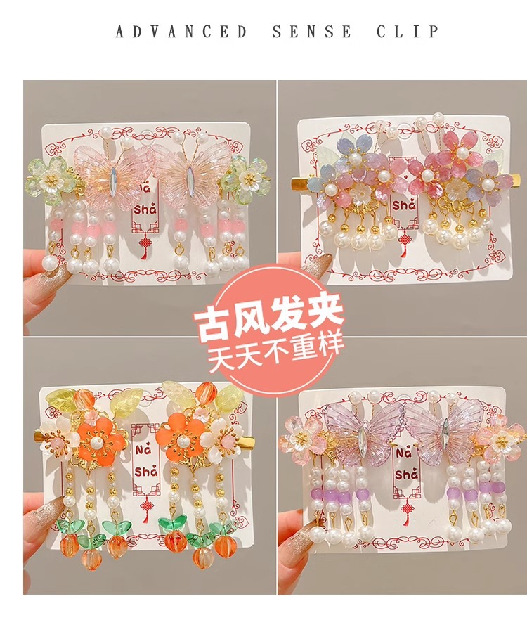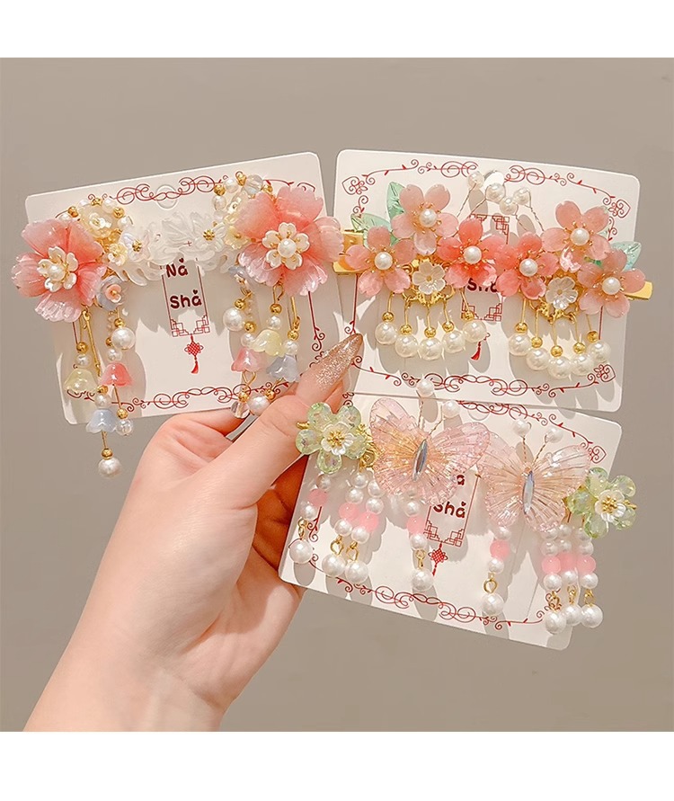 Niños flores de perlas para el cabello de mujeres estilo antiguo estilo Han toque de cabello de niña super inmortal estilo nacional tarjeta de cabello de niña pequeña para el cabello de clips