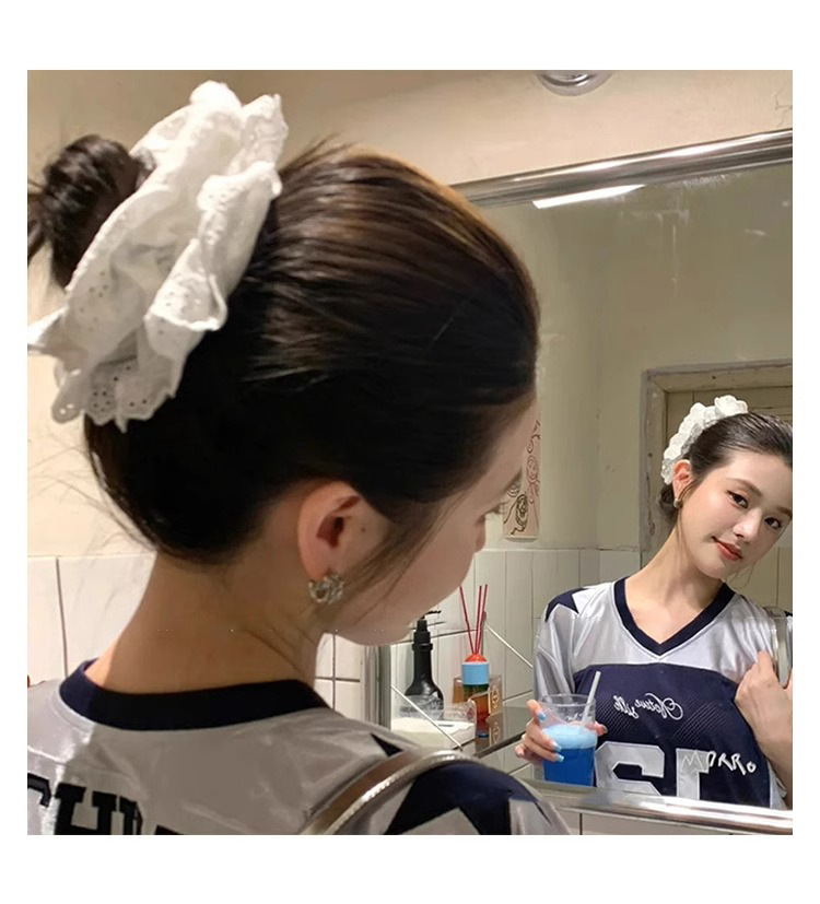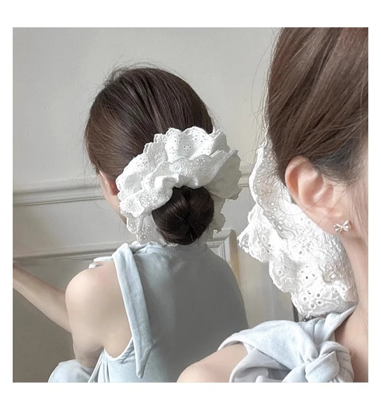Retro francés blanco encaje anillo de cabello de intestino para mujeres 2025 nuevo cabello de alto nivel de cabello de flores cuerda de cabello gorda tocado de intestino