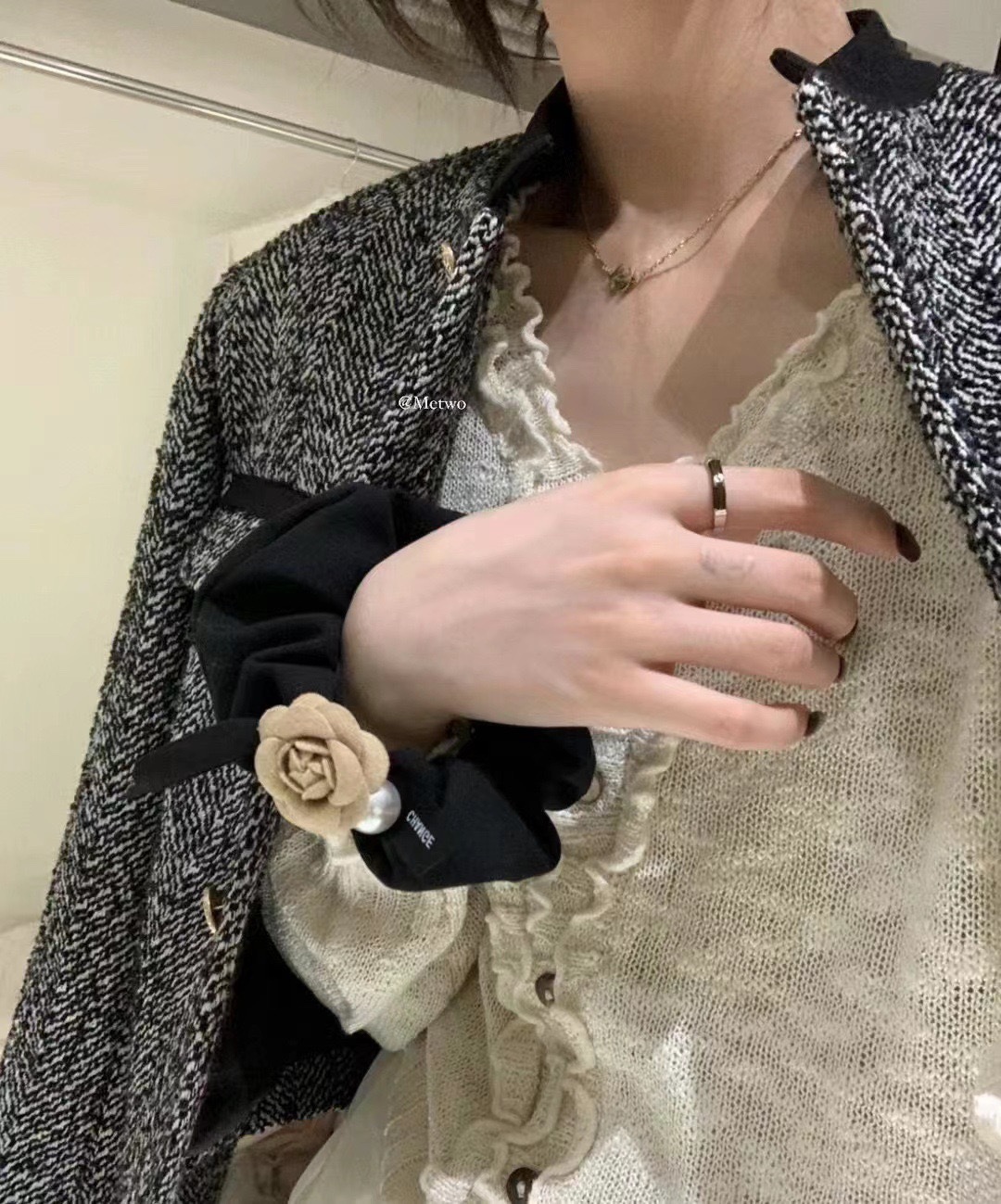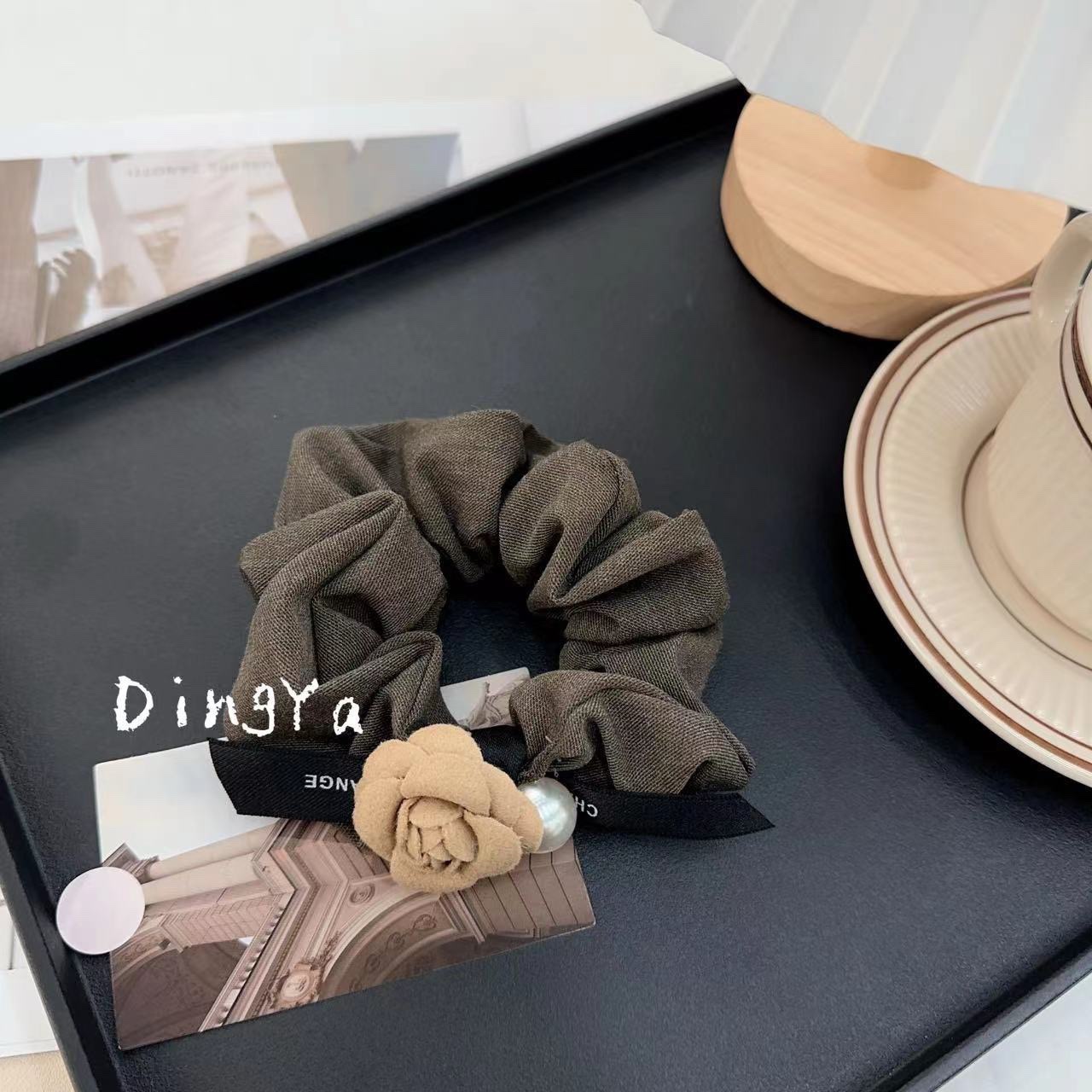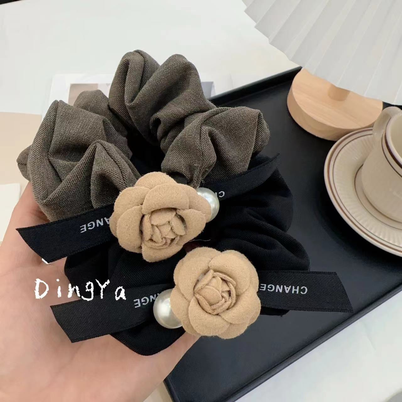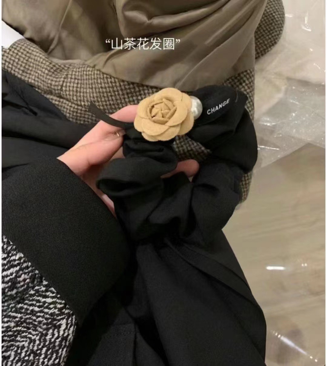 Pequeño libro rojo explosivo camellia anillo de pelo pequeño viento fragrante francés tela de traje suave cuerdas de cabeza de bola cuerda de cabeza