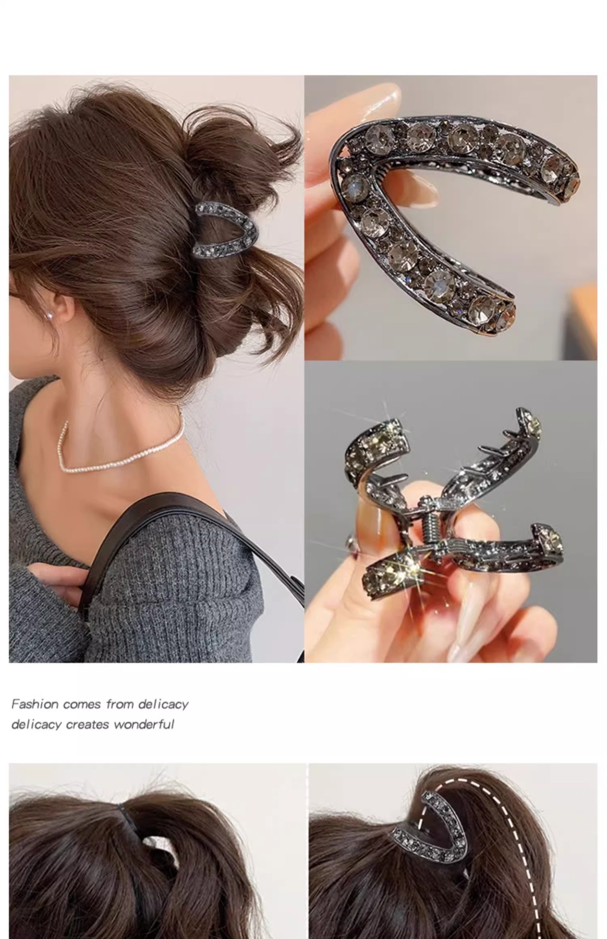Clip de agarre de cola de caballo alta fijación artefacto de diamante de agua pequeño cráneo trasero clip de pescado de cabello de cabello de cabello de cabello de mujer