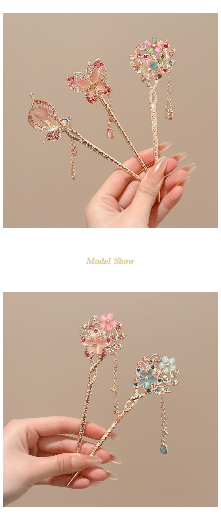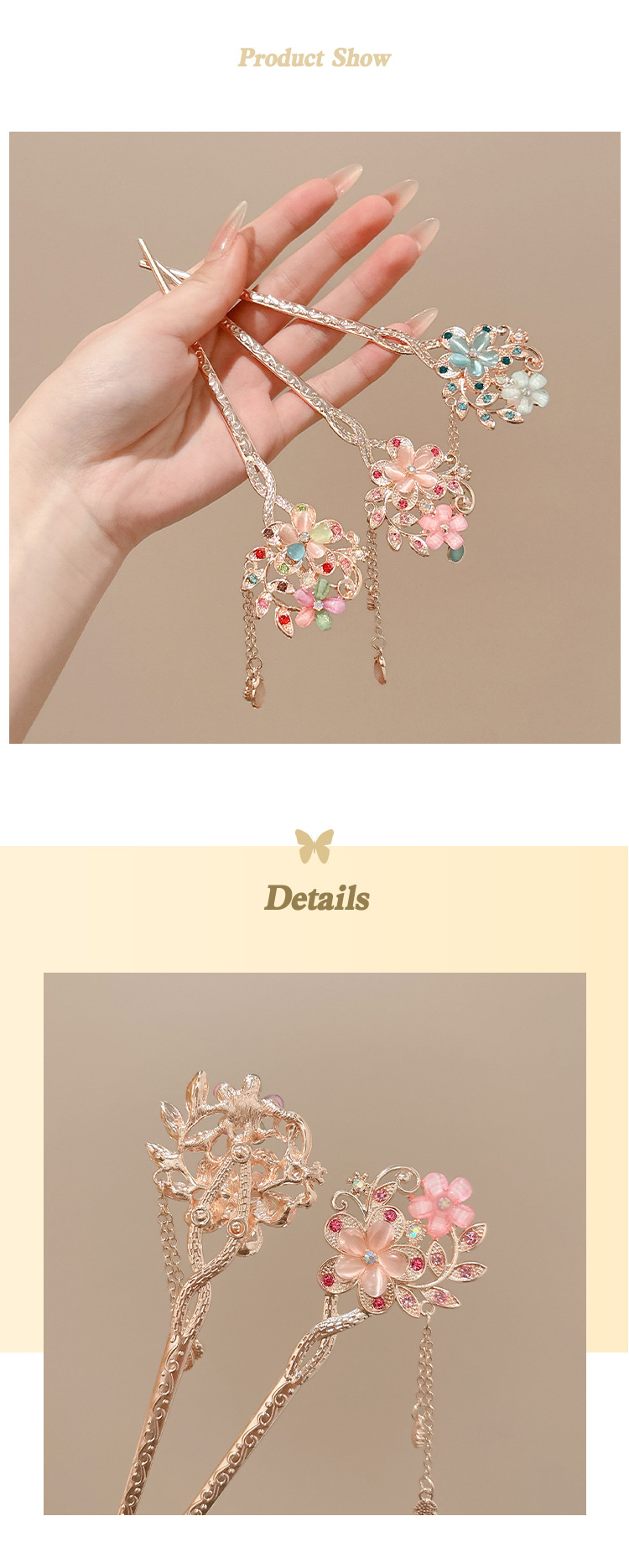 | Color | 1 cabello de flor rosa, 2 cabello de flor azul, 3 cabello de flor de color, 4 cabello de mariposa |