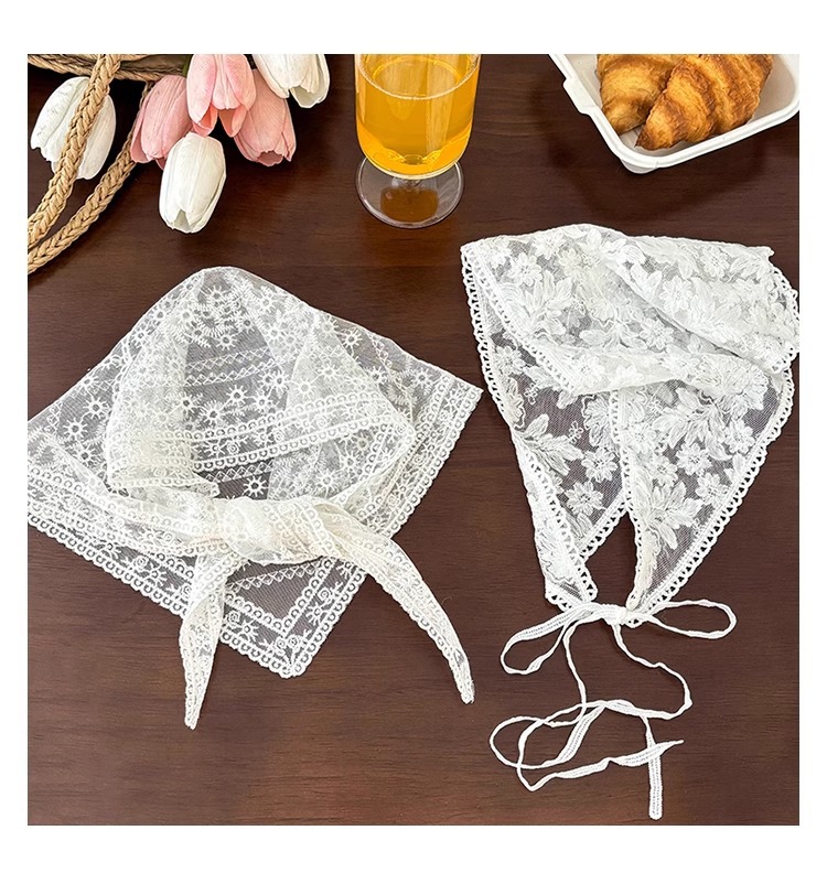 2025 nueva sensación de atmósfera bufandas de seda de flores rasgadas niñas atadas correa de cabello bufandas de encaje diseño sensación de foto bufandas de triángulo versátiles