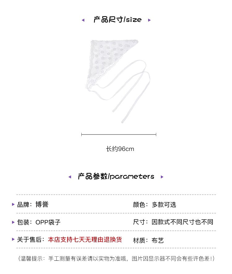| Color | La imagen principal es el mismo pañuelo de encaje, [zhou también es el mismo] pañuelo de encaje blanco, aro de encaje blanco, aro de encaje rosa, aro de encaje beige |
