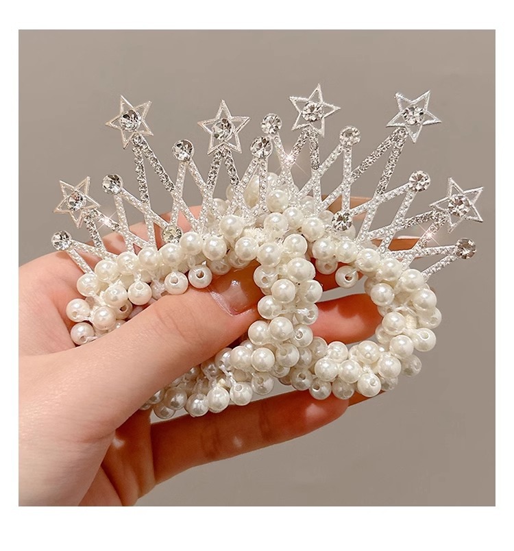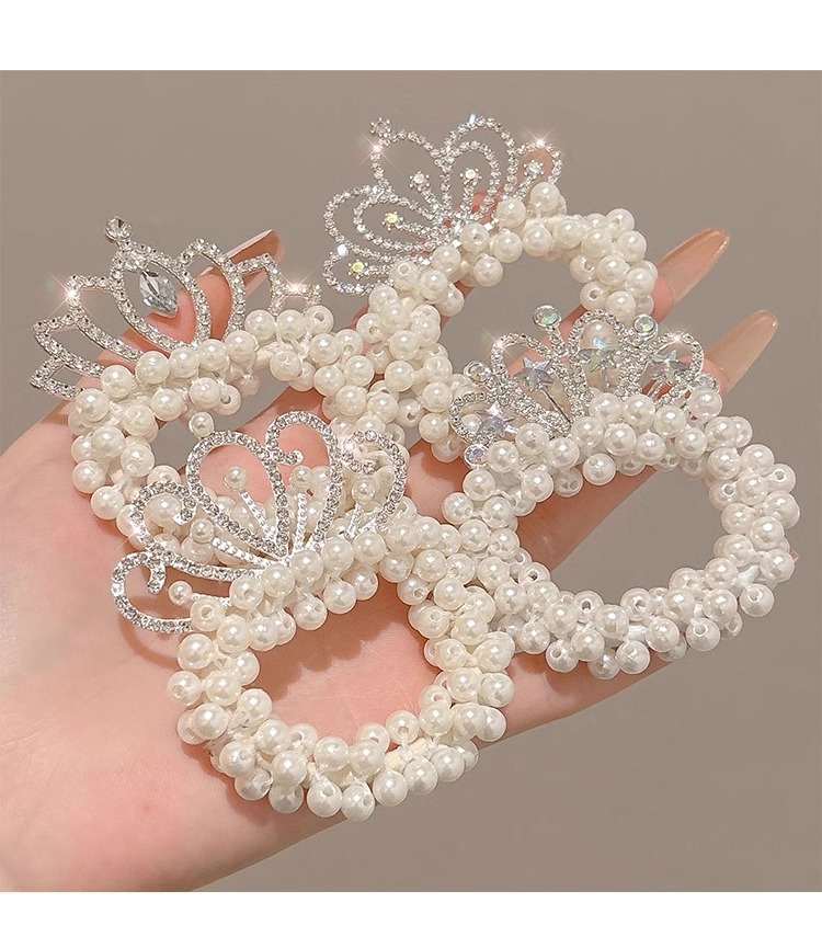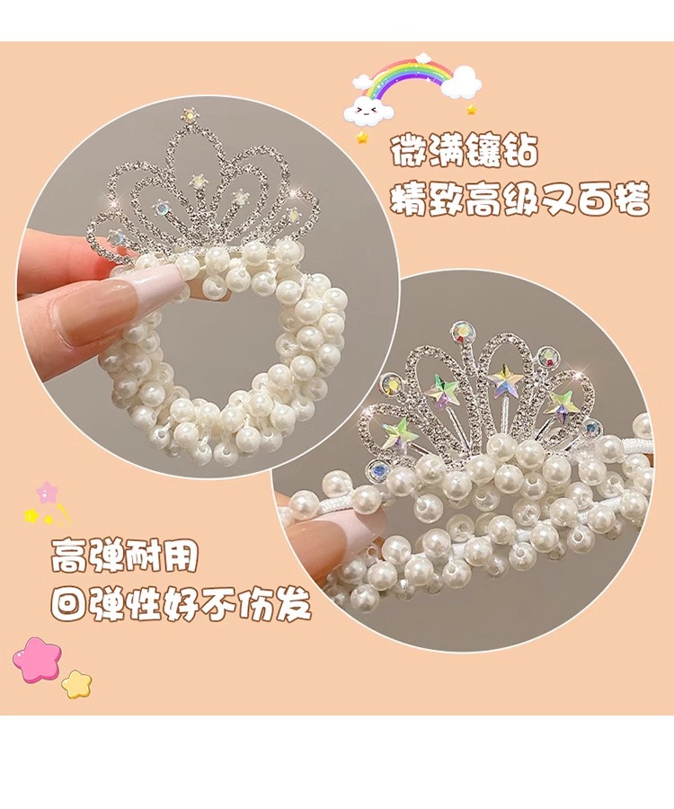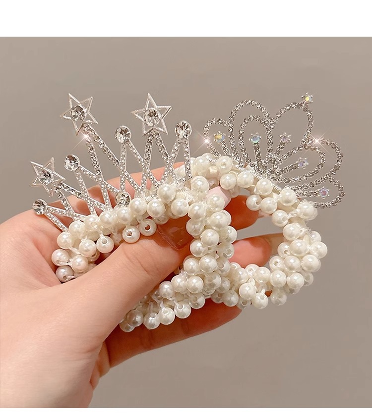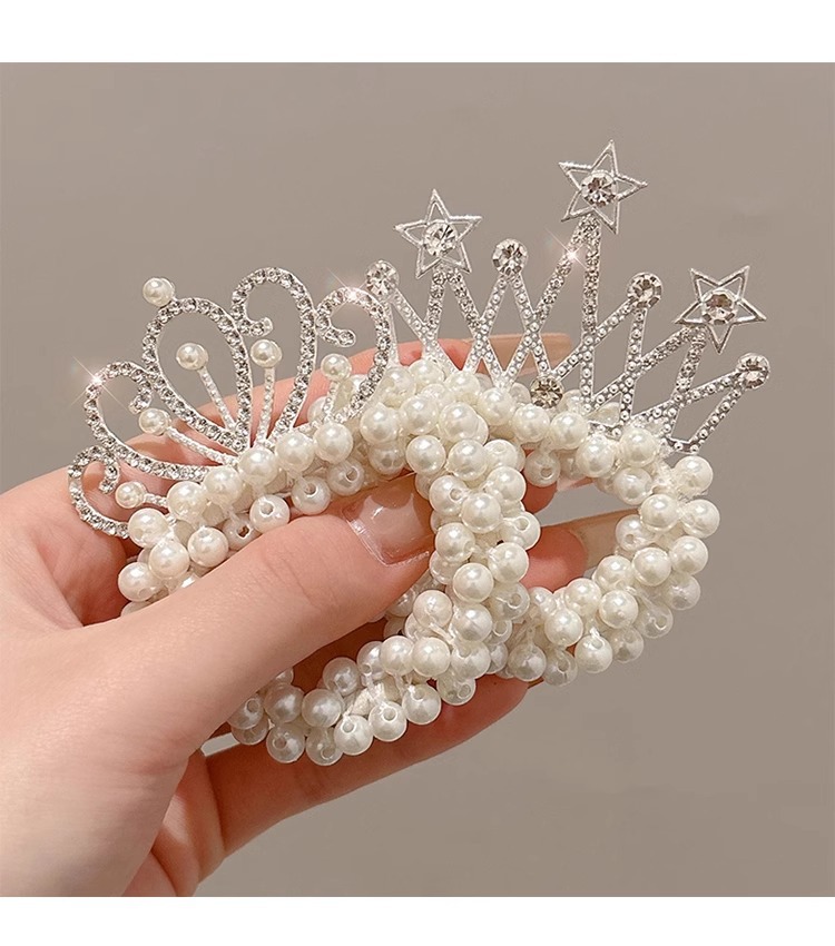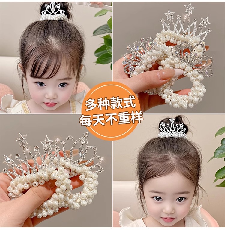 Cuerdas para el cabello de perlas para niños coronas para el cabello de bolas para el cabello de correa de correa para el cabello de princesa encantadora flor para el cabello