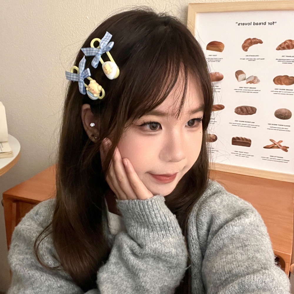 Nuevo adorable amarillo leche oso arco clip de cabello conjunto de niñas multifacé dulce cabello fruncado clip de borde al por mayor