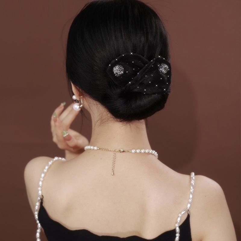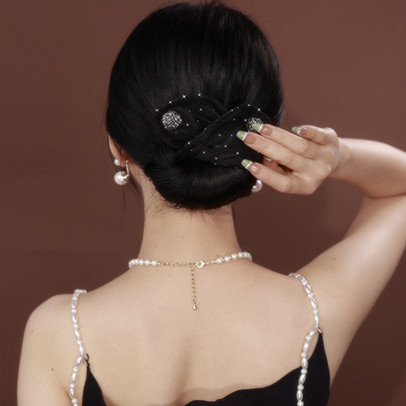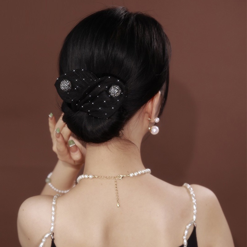 Perezosa máquina de cabello de malla de acoplamiento de arco bola tocado mágico clip de torsión giratorio correa de cabello de mujer detrás de la cabeza de cabello
