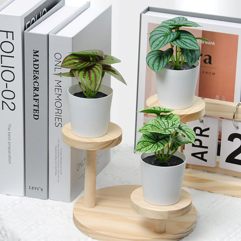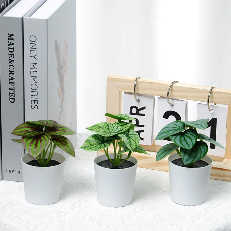 Pequeñas plantas verdes en maceta mini decoración de pared flores falsas hojas escritorio interior librería decoración de plantas verdes
