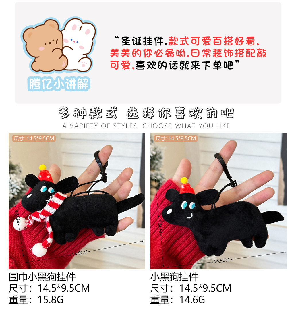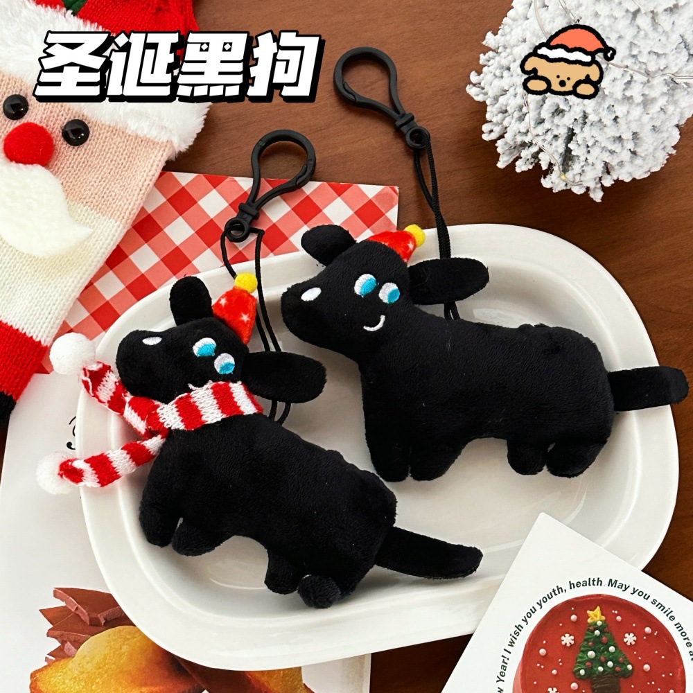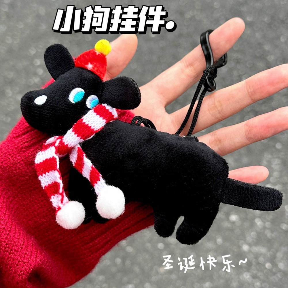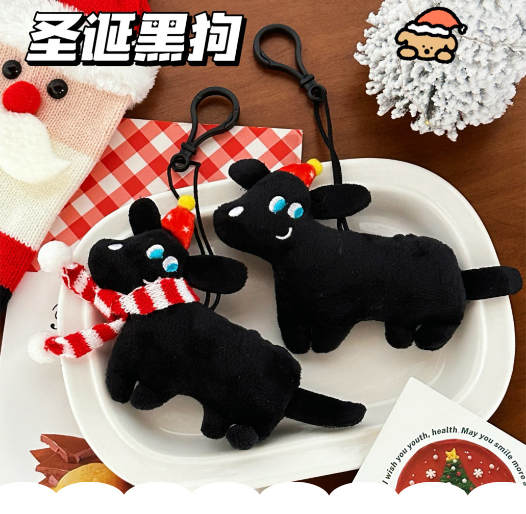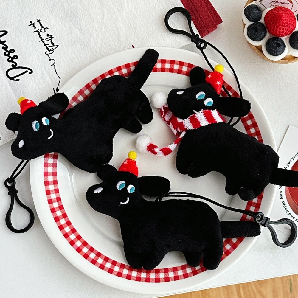 Nuevo extraño perro negro adorable creativo feo peluche llavero muñeca estudiante pareja mochila colgante