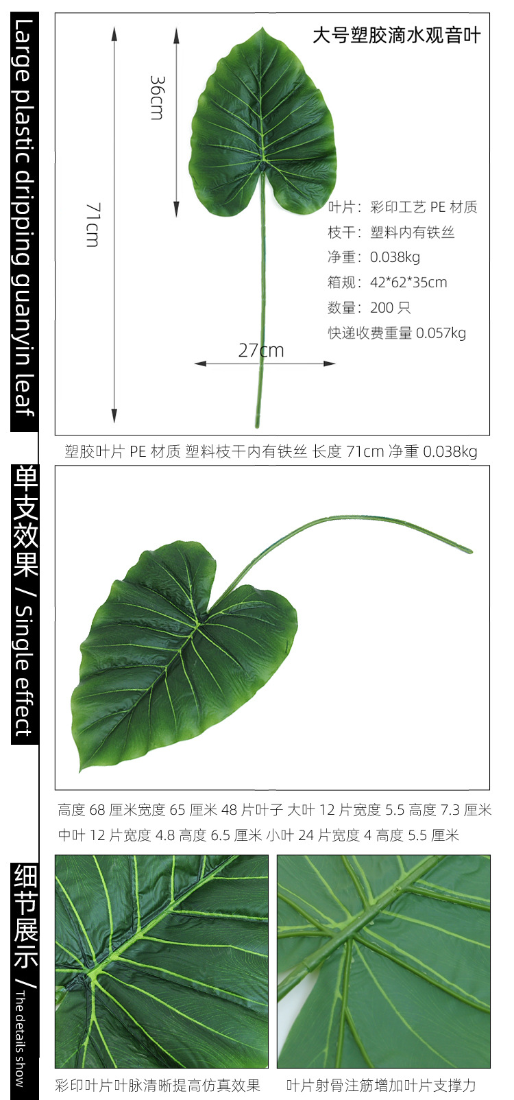 | Colores | Pequeña hoja de tortuga única,Hojas de tortuga individuales grandes,Pequeña hoja de Guanyin que gotea,Hoja de Guanyin de un solo goteo grande |