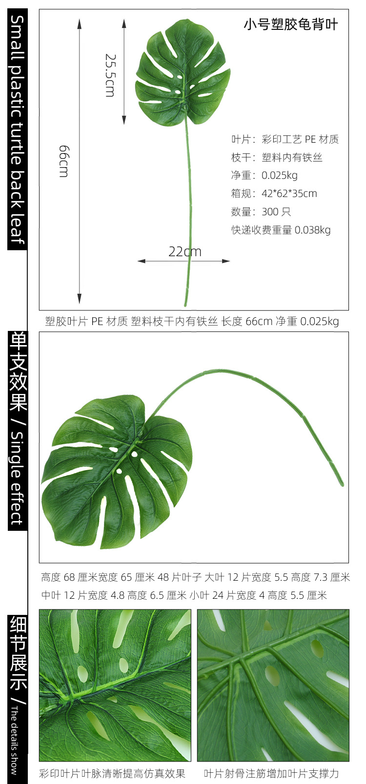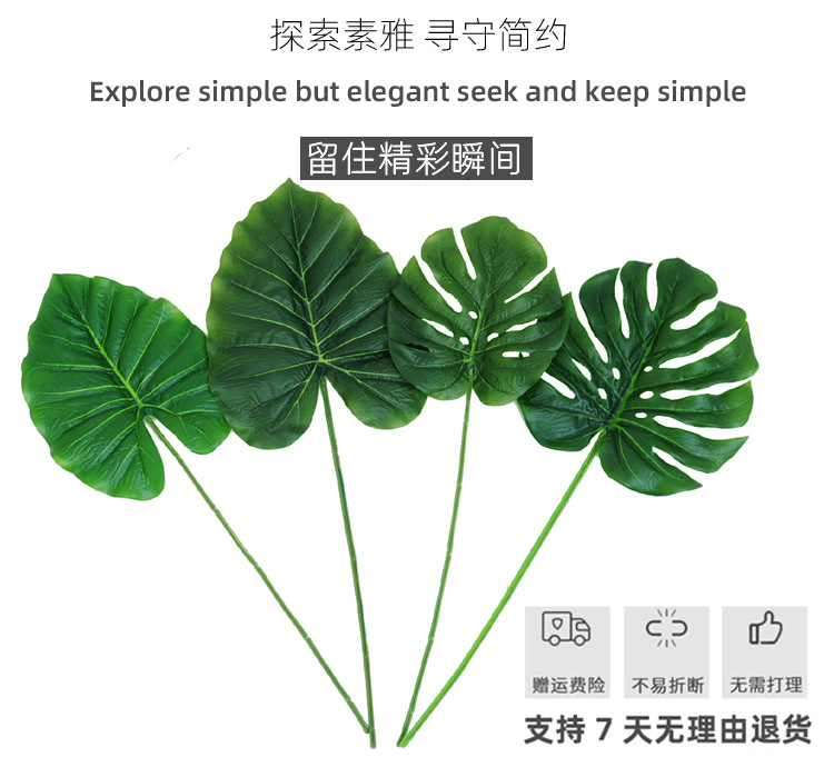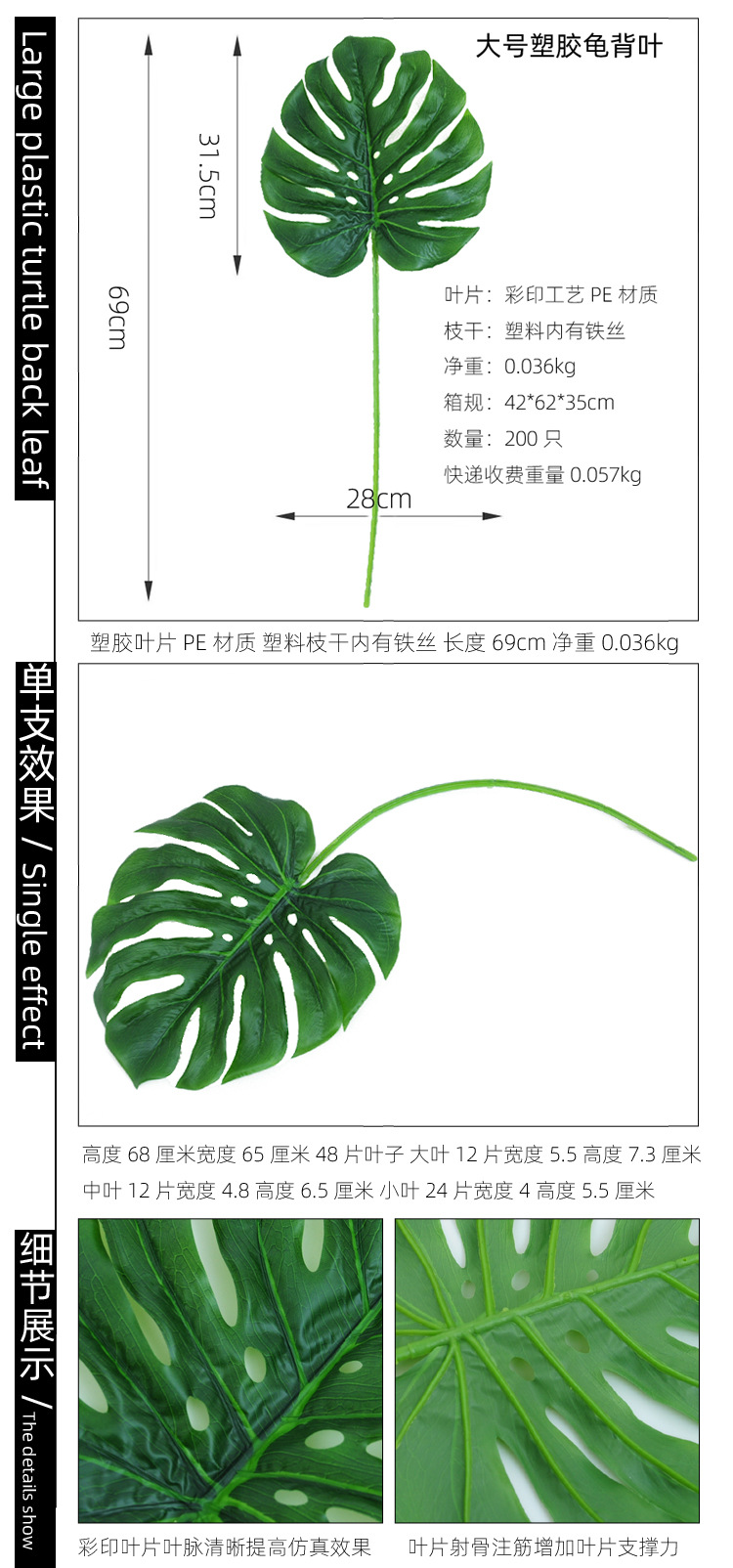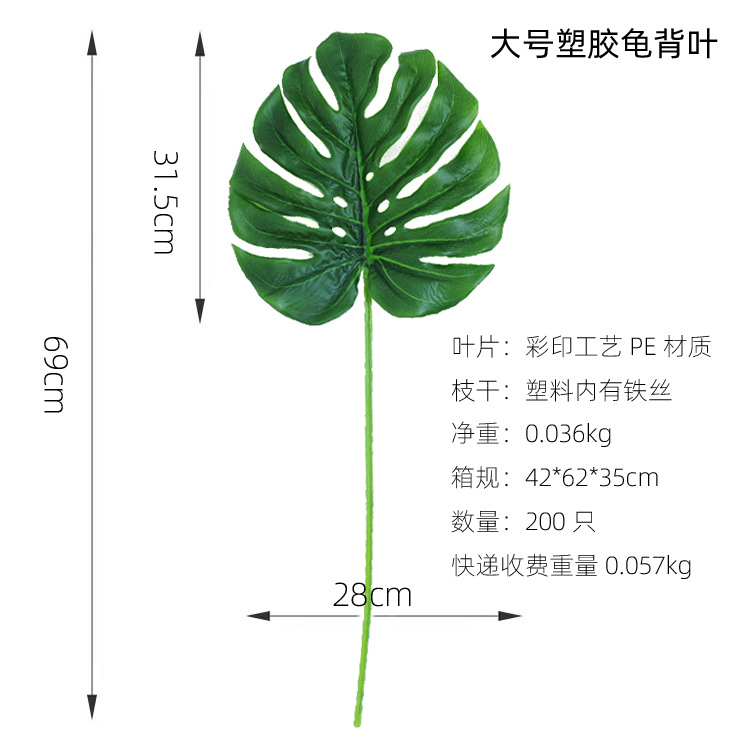 Suministro transfronterizo simulación de hoja de espalda de la tortuga goteo Guanyin decoración de la playa fiesta boda mesa de comedor accesorios de arreglo floral monstera