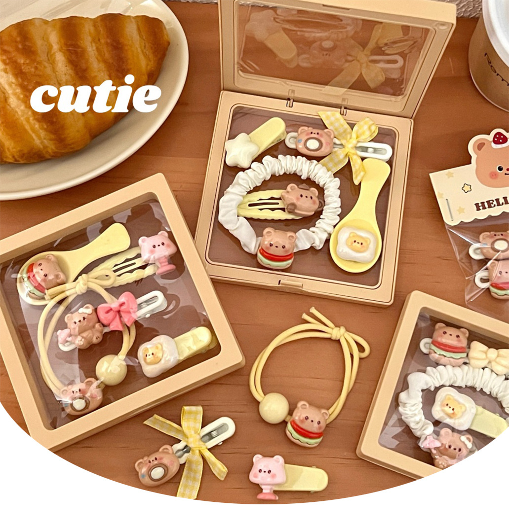 Nueva serie de adorables joyas para el cabello combinación de chicas dulces cabello fruncado clip de cabello elástico anillo de cabello al por mayor