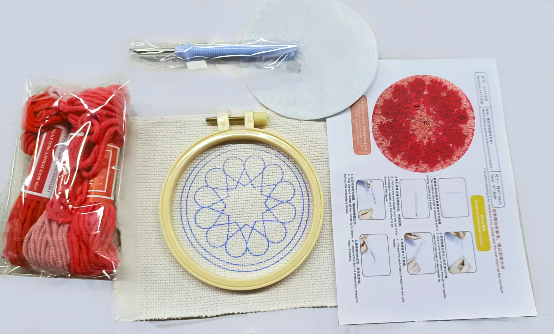 Con una tensión de bordado de bambú de imitación de 12,5 cm + bolígrafo ordinario