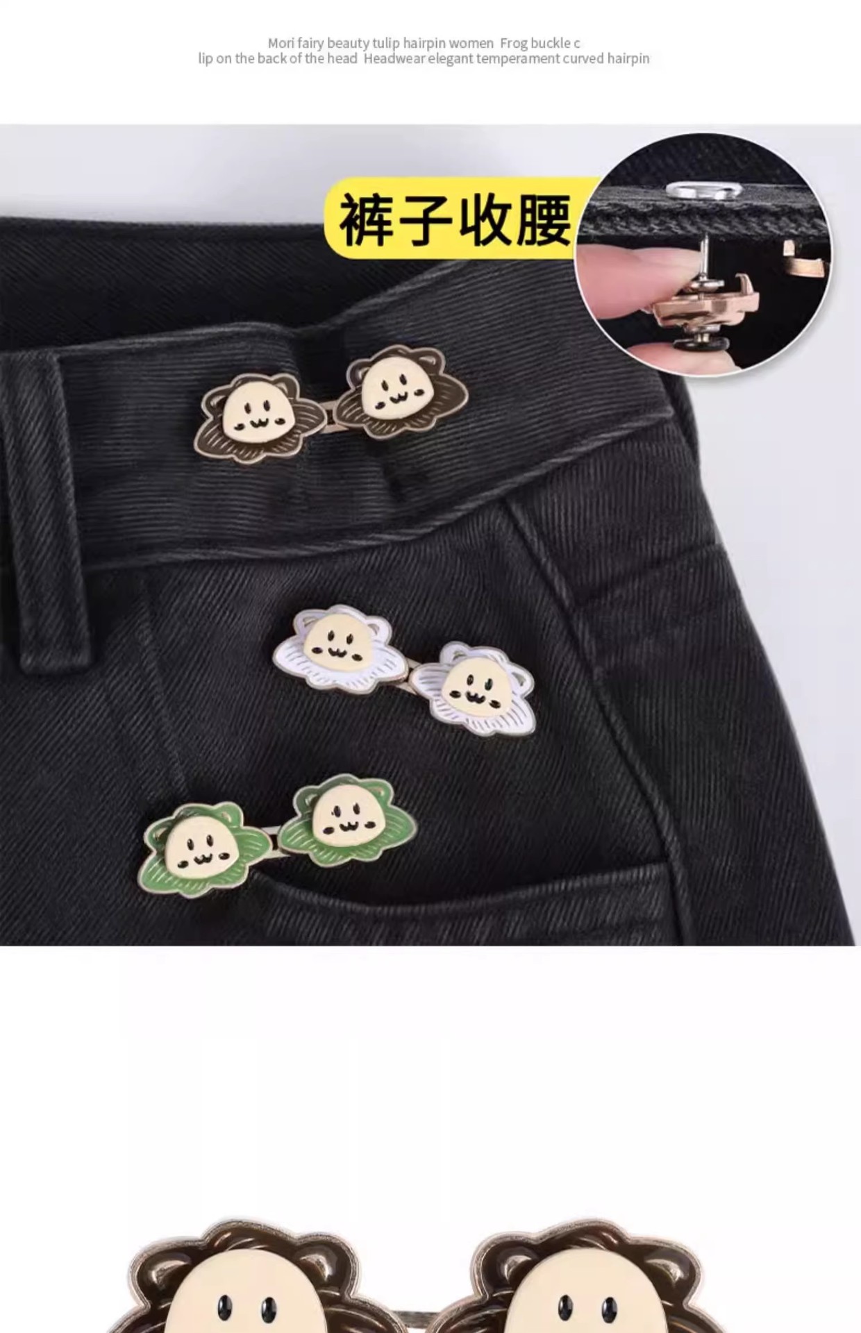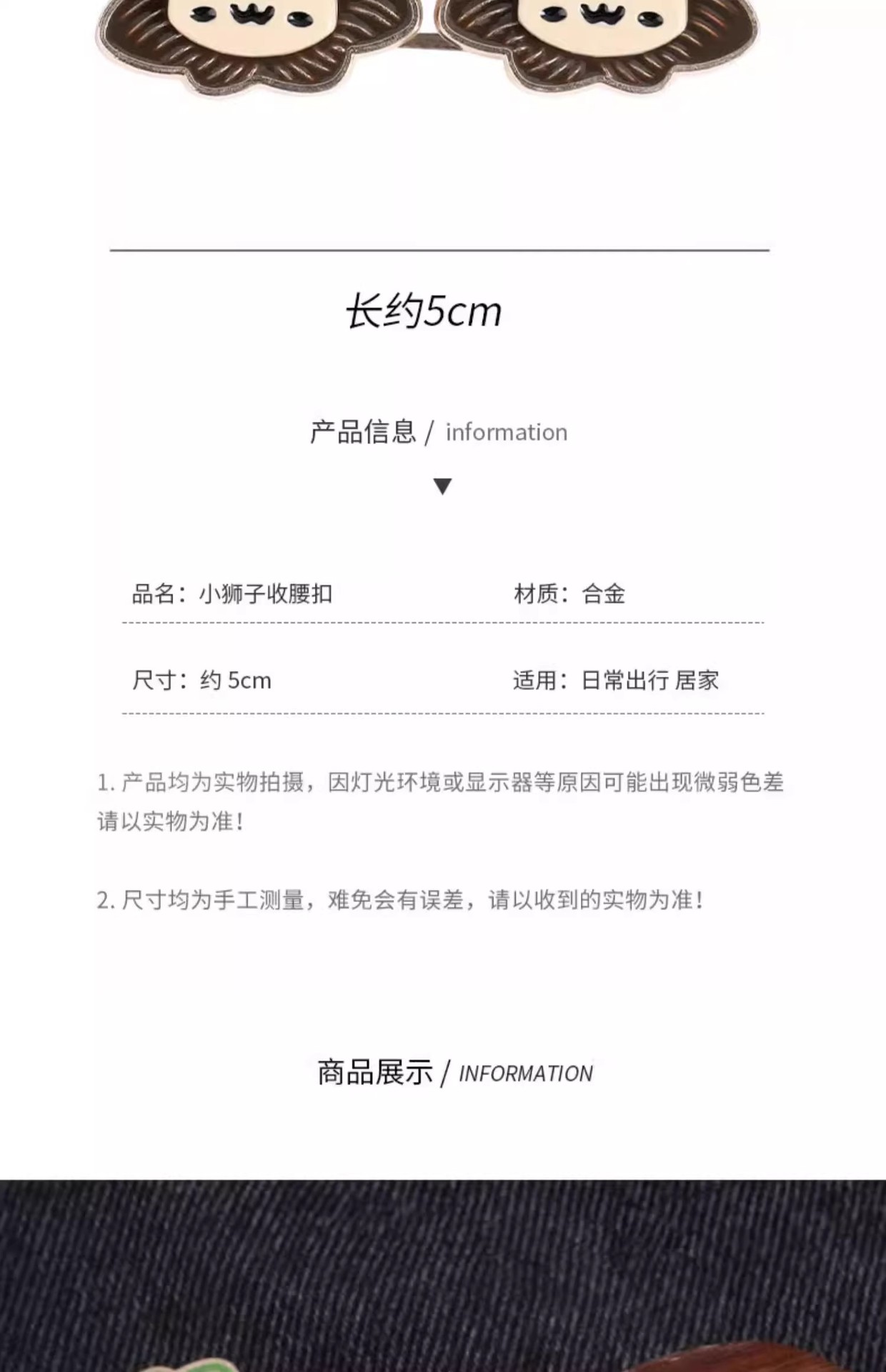 Pequeño león sin carne, cintura de cintura, cintura de cintura, botón de artefacto fijo, pin de botón de ajuste sin costura